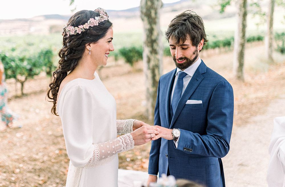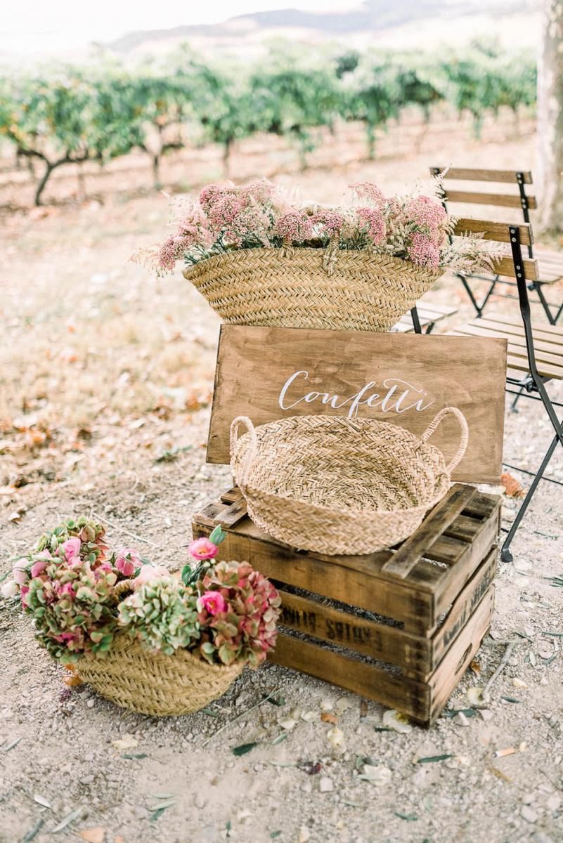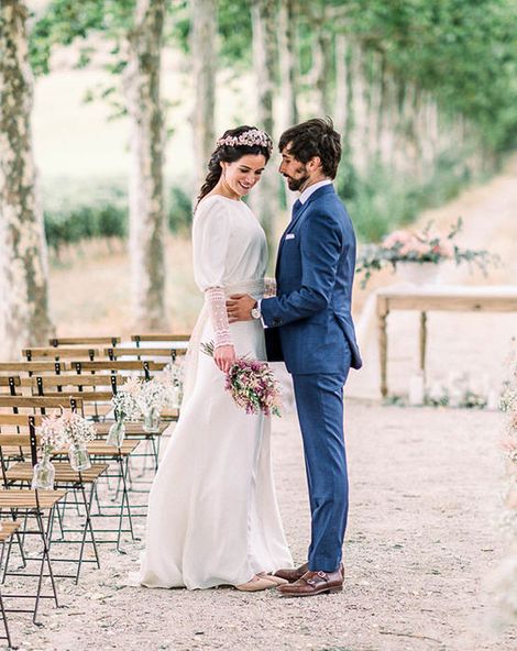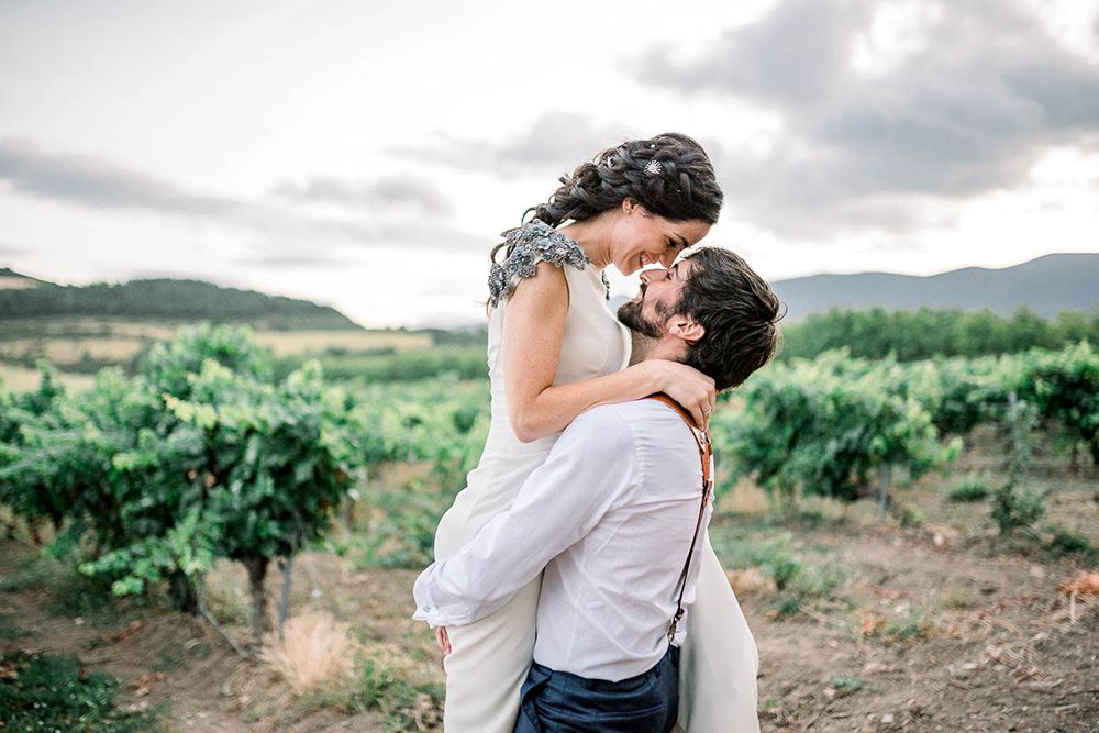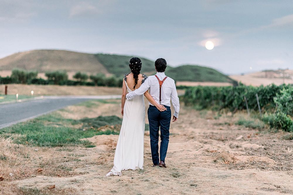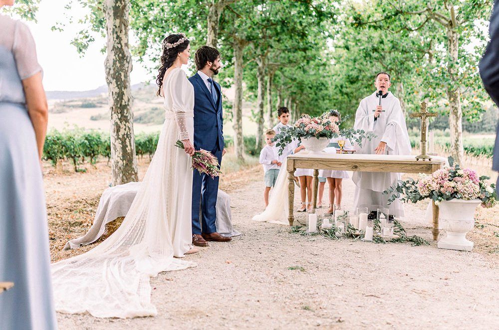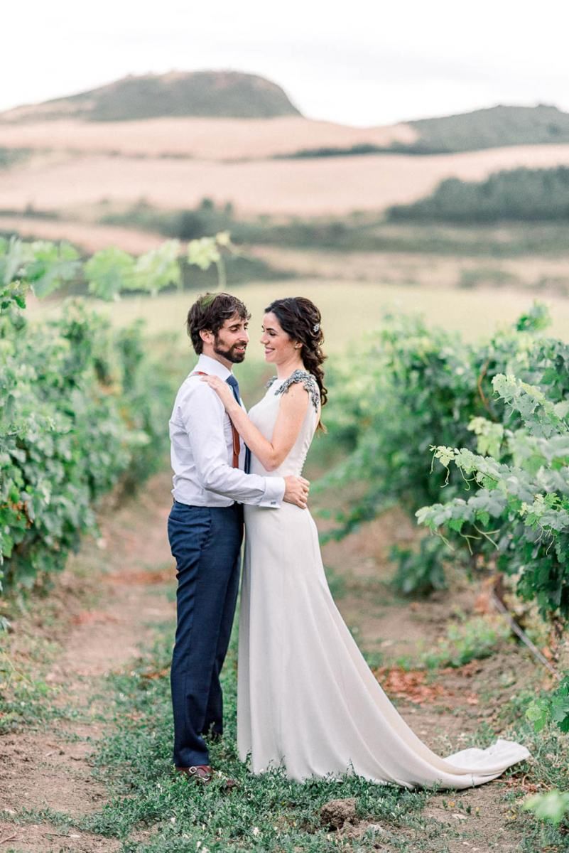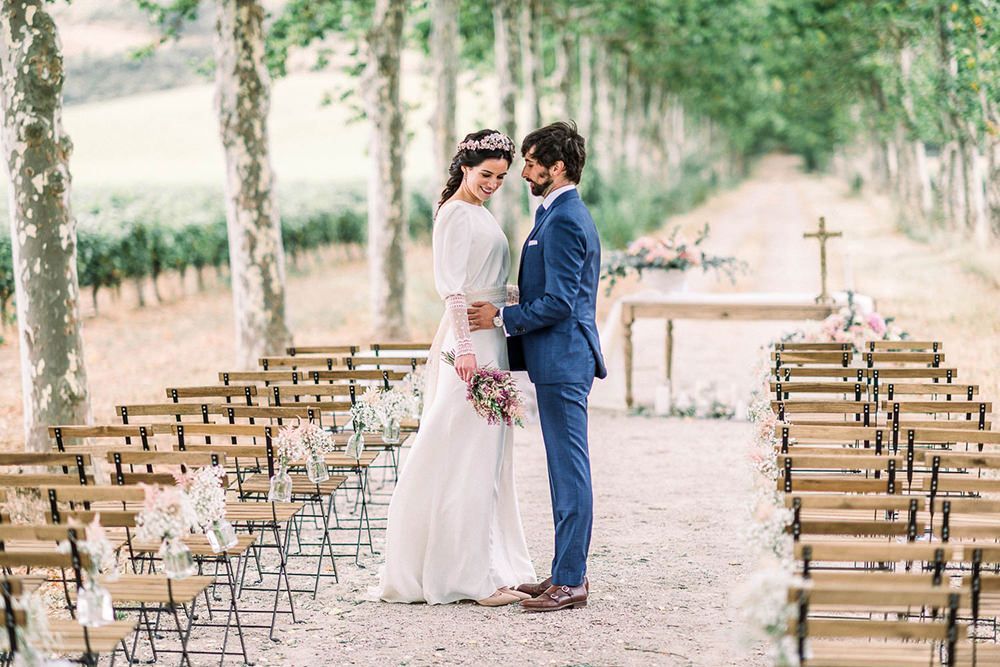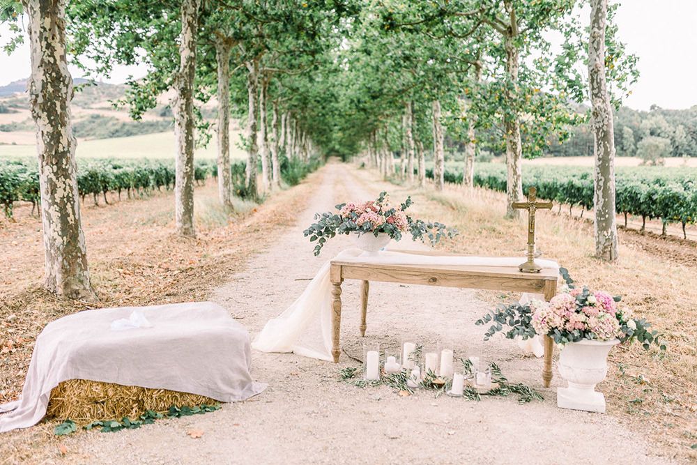 We describe our day as unforgettable, emotional and fun. It was an outdoor celebration, on a road surrounded by trees and vineyards. We wanted a family atmosphere, with romantic decoration in white, green and pink colours. Subtle details so that the views and beautiful surroundings did not lose prominence.