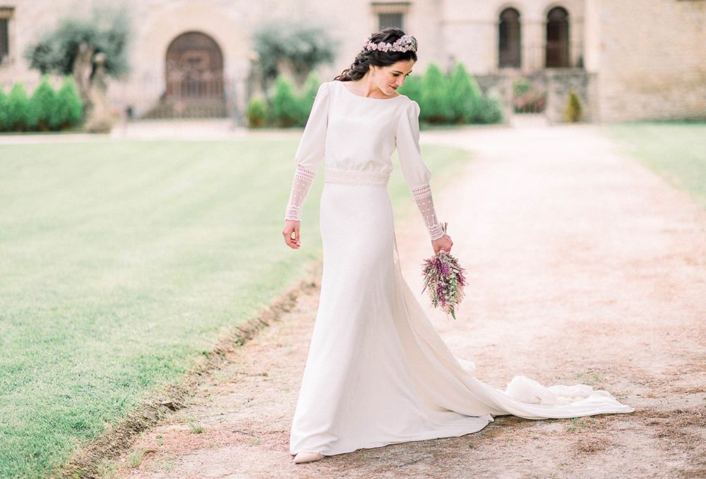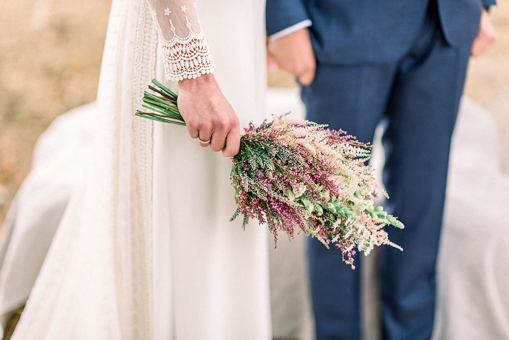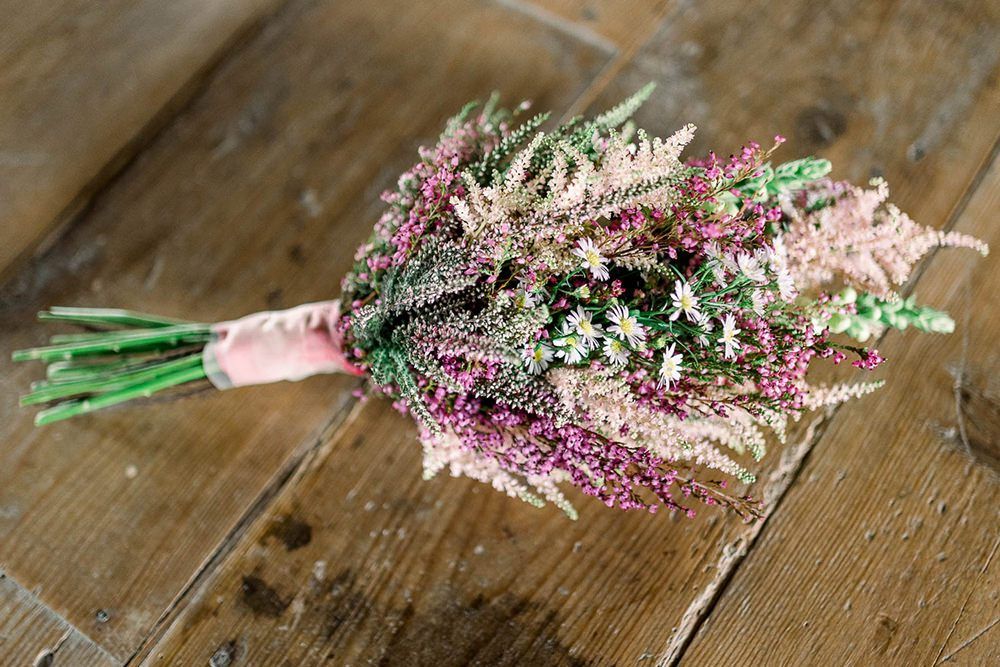 Astilbe Wedding Bouquet & Victoria Imaz Minimalist Wedding Dress