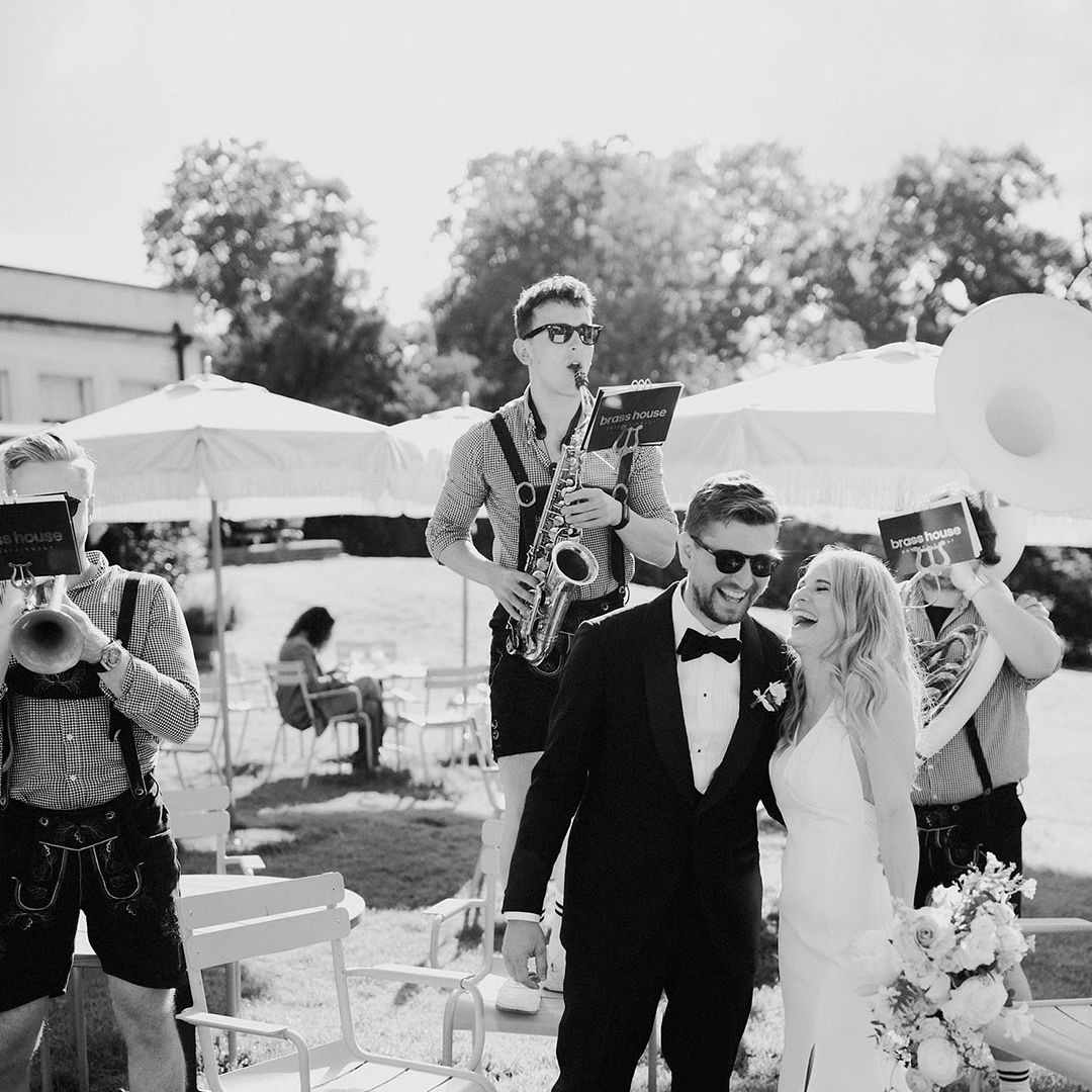 Ellie: For me, walking down the aisle and finally getting married in front of all our friends and family after waiting so long was one of my favourite moments. The little moments we had just the two of us during the day were also really special. Everyone dancing to the oom-pah band during the drinks reception and getting up to dance at the bar in the evening were also highlights.