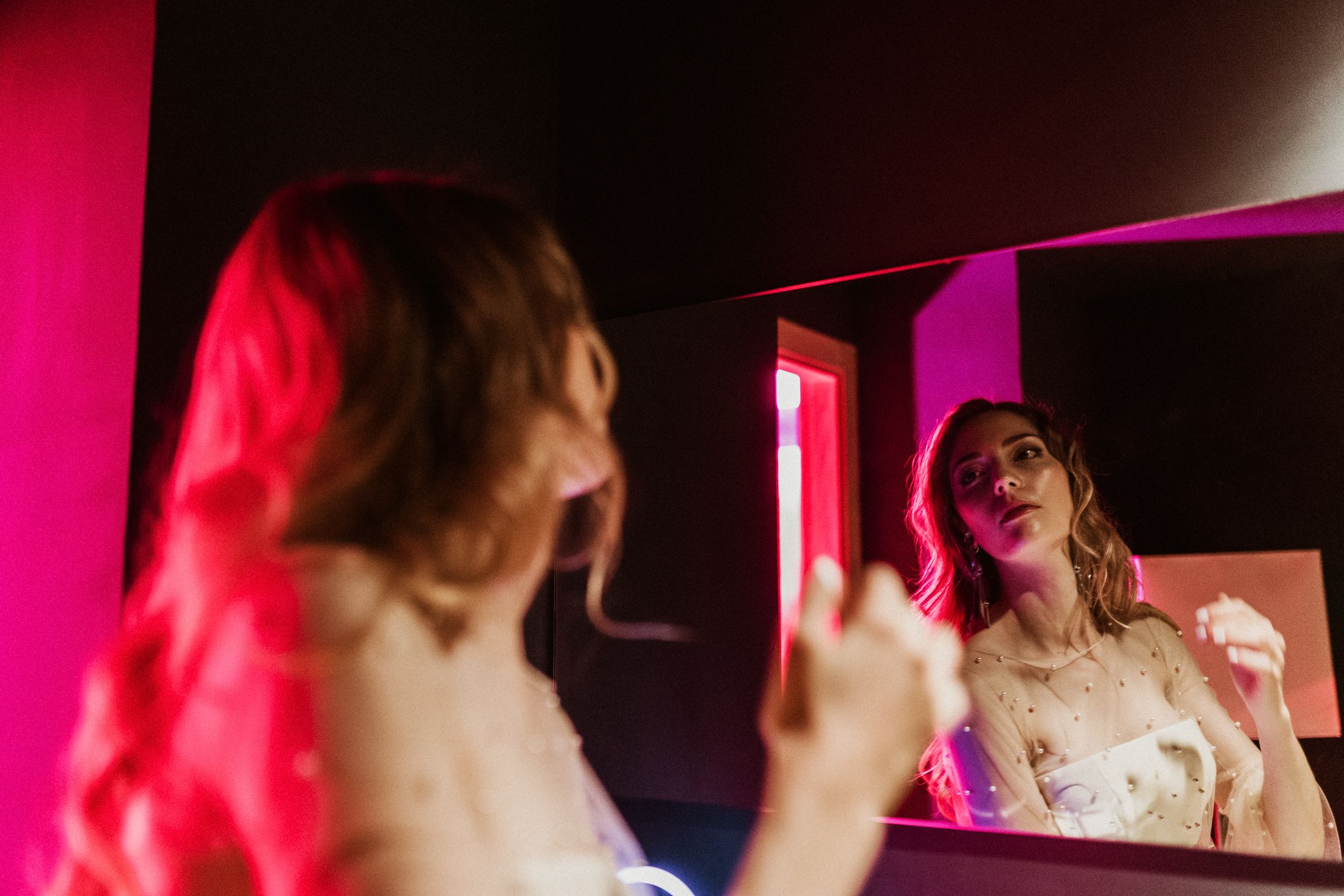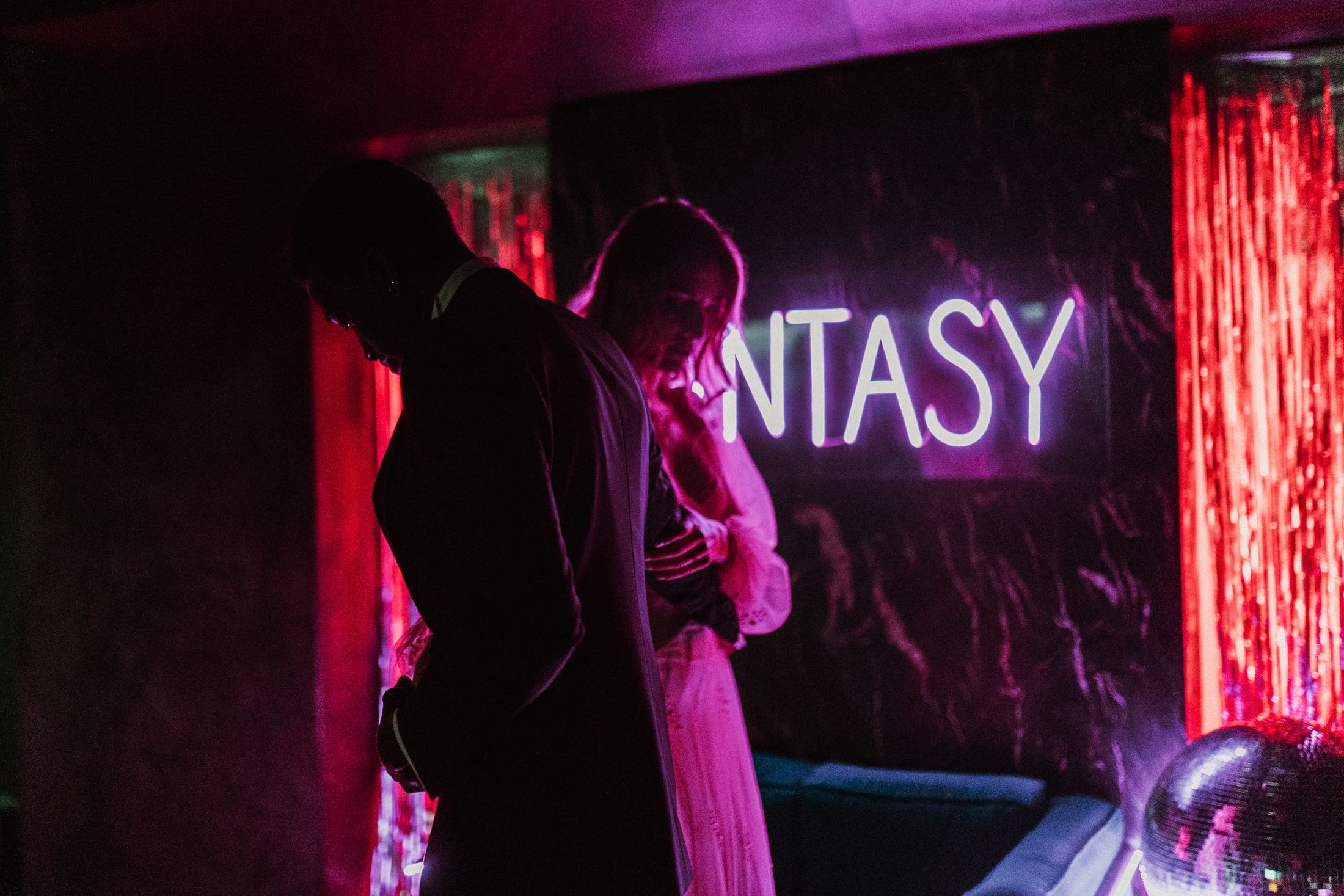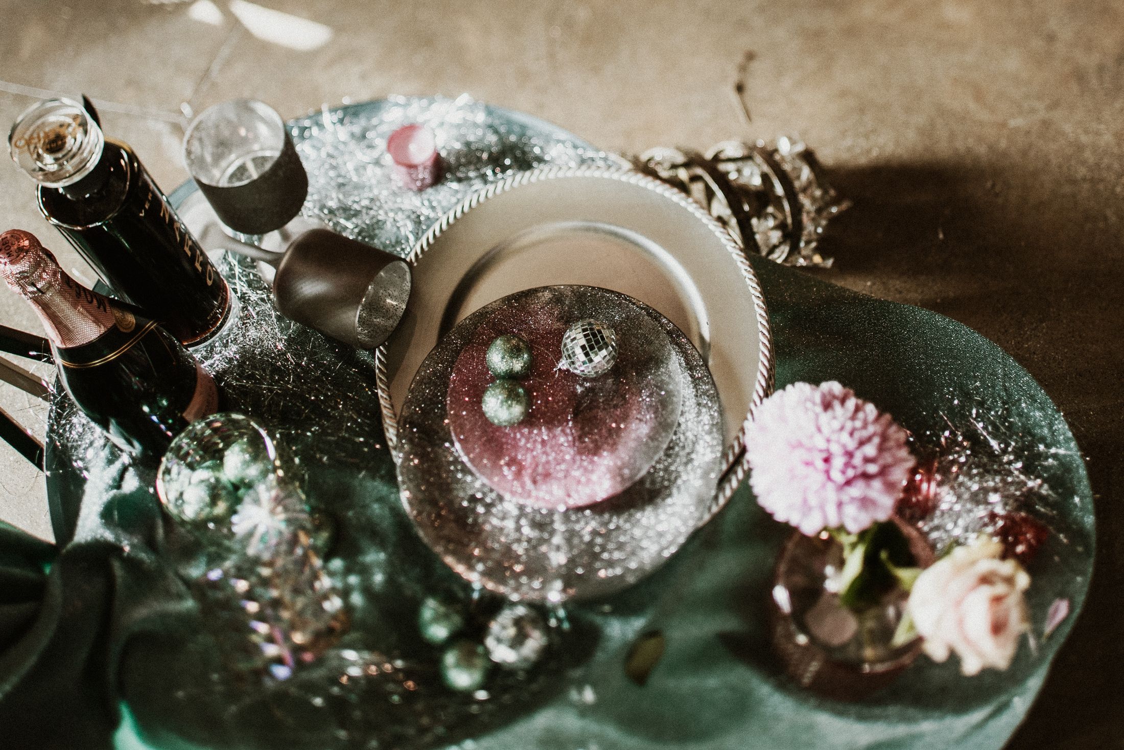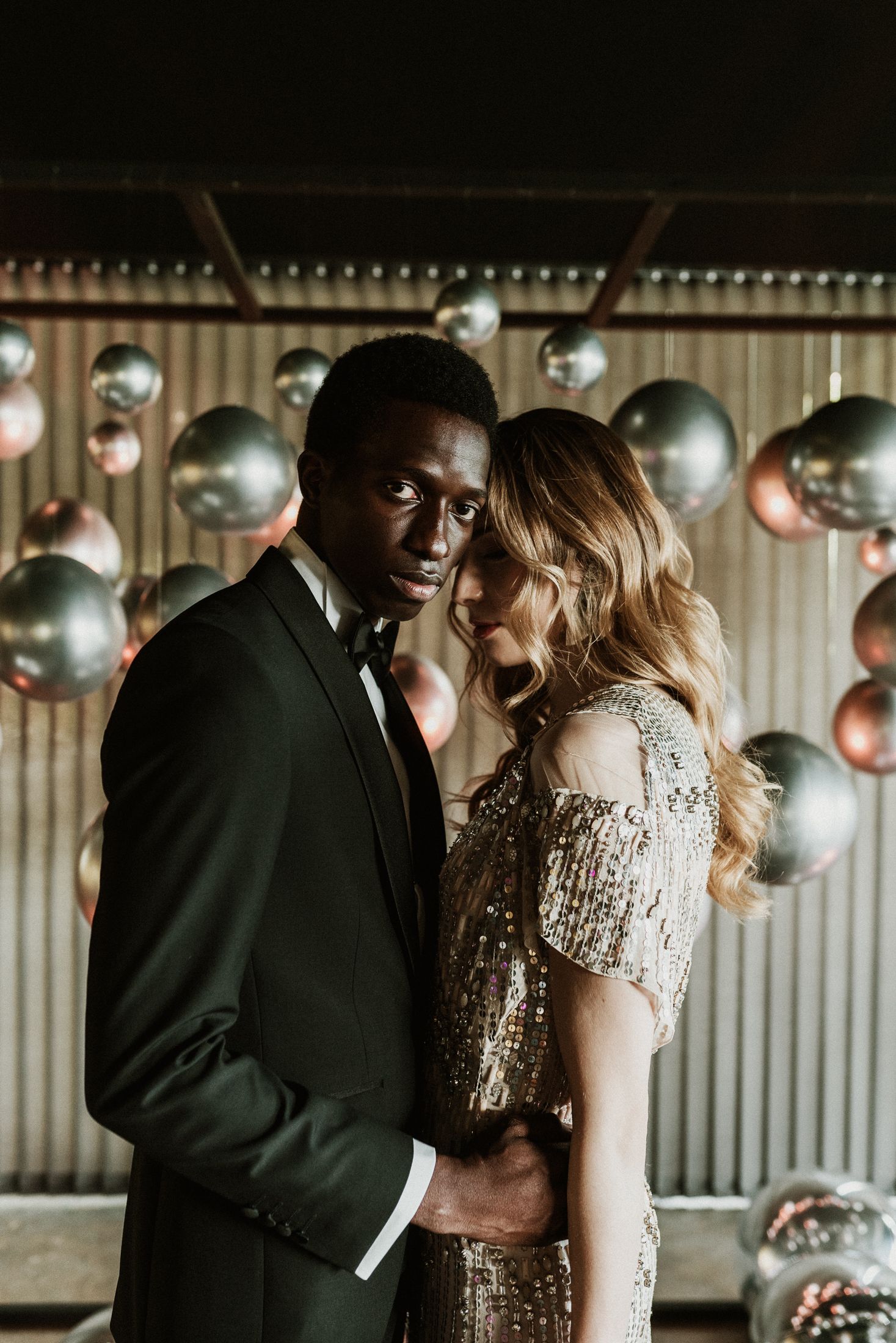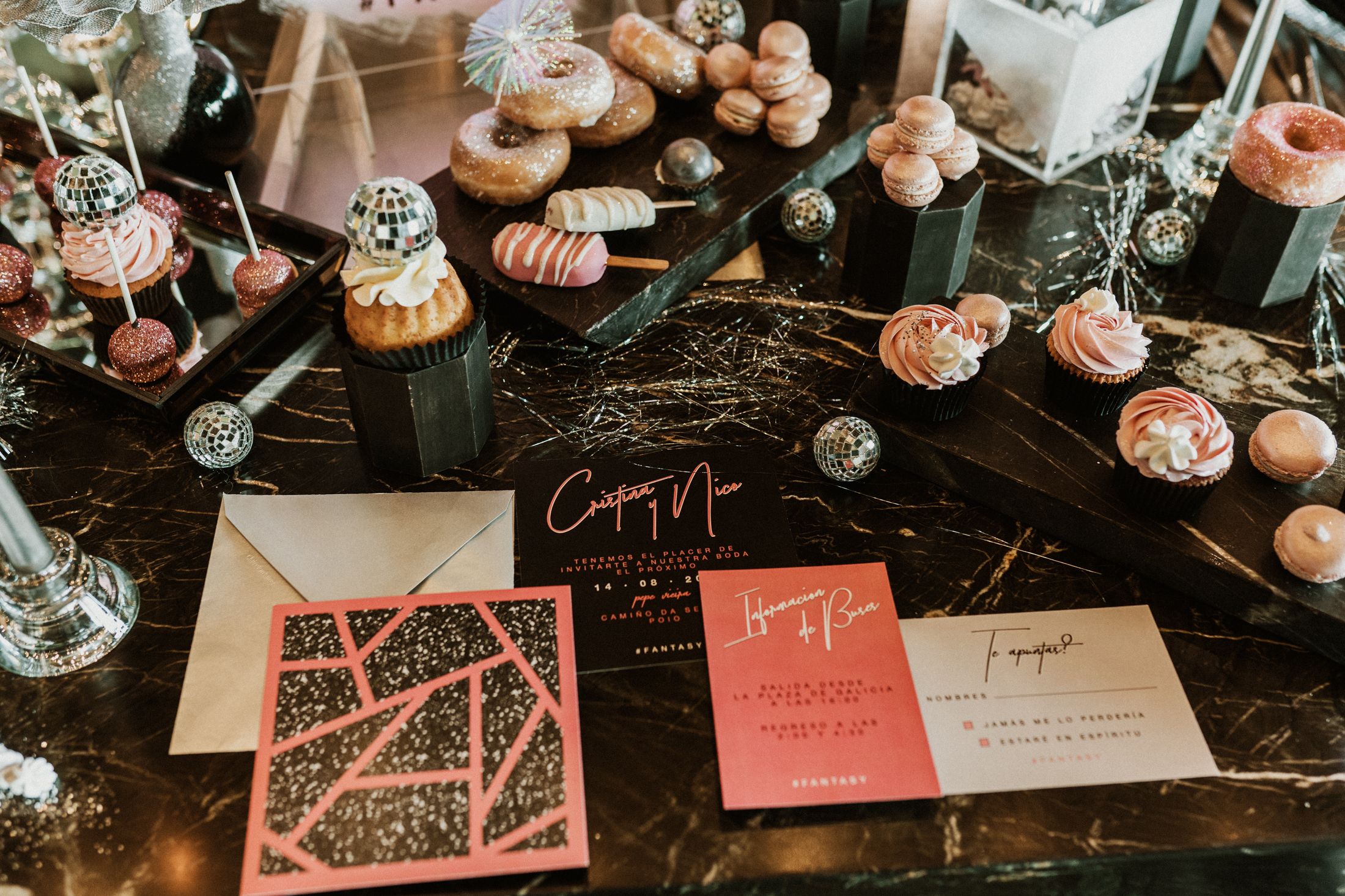 Fantasy wedding shoot inspired by the lights of disco balls, the glitter, the colour pink and the frenetic rhythm of the parties. It is a session with strength, character, full of optical illusions and sensations, transmits joy, elegance and is a tribute to many times and transcendental and relevant aesthetics such as art deco, the time of agitation social and the excesses along with the crazy 70's in which Saturday Night Fever made us dance non-stop. Something new, extraordinary, beautiful, simple, but with the ability to envelop you in a real fantasy.