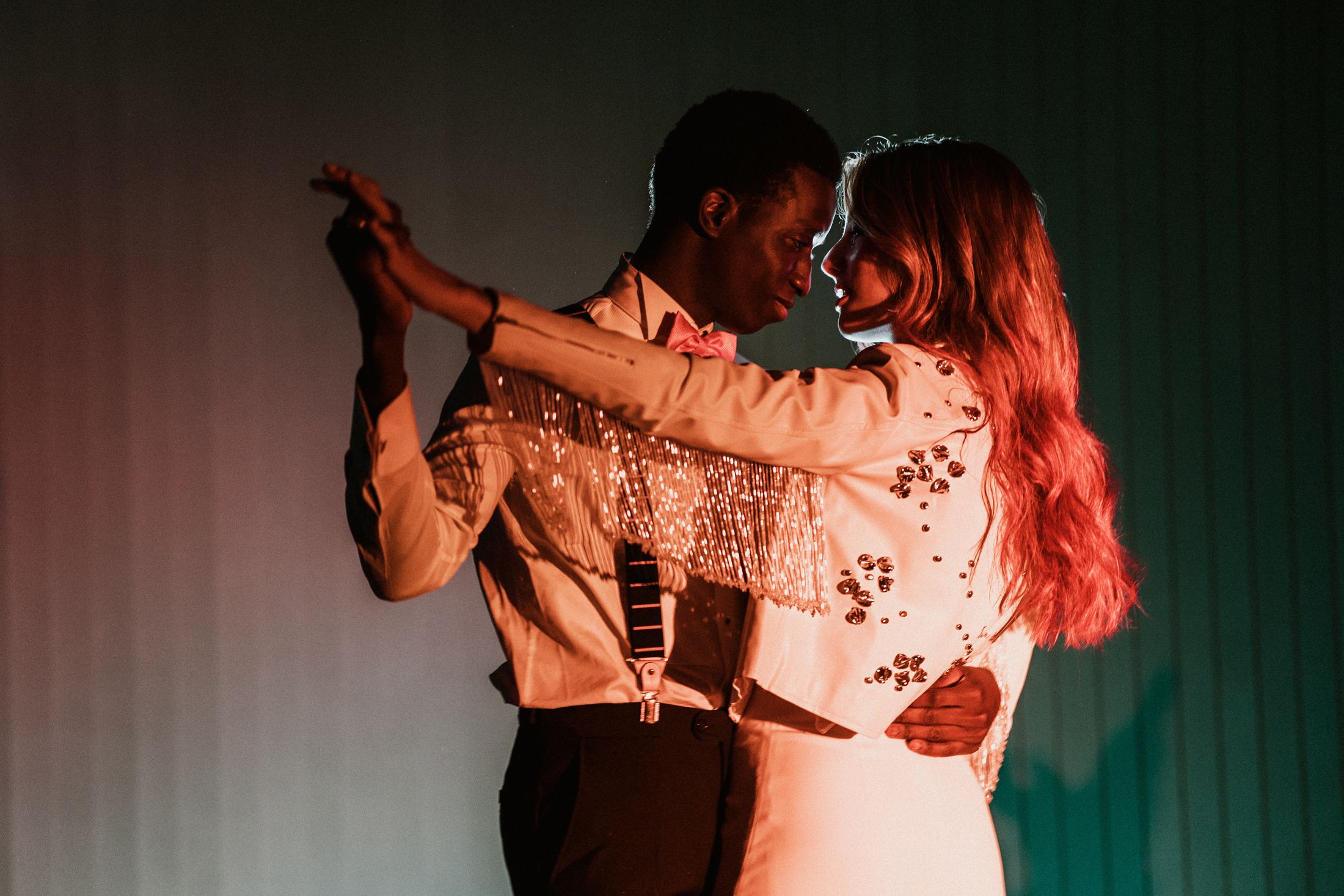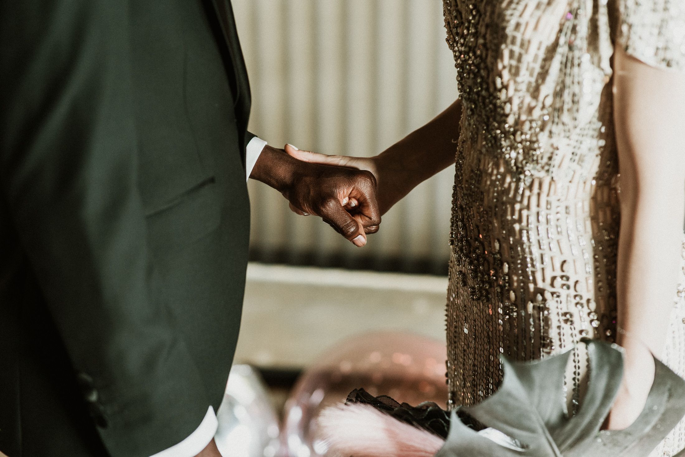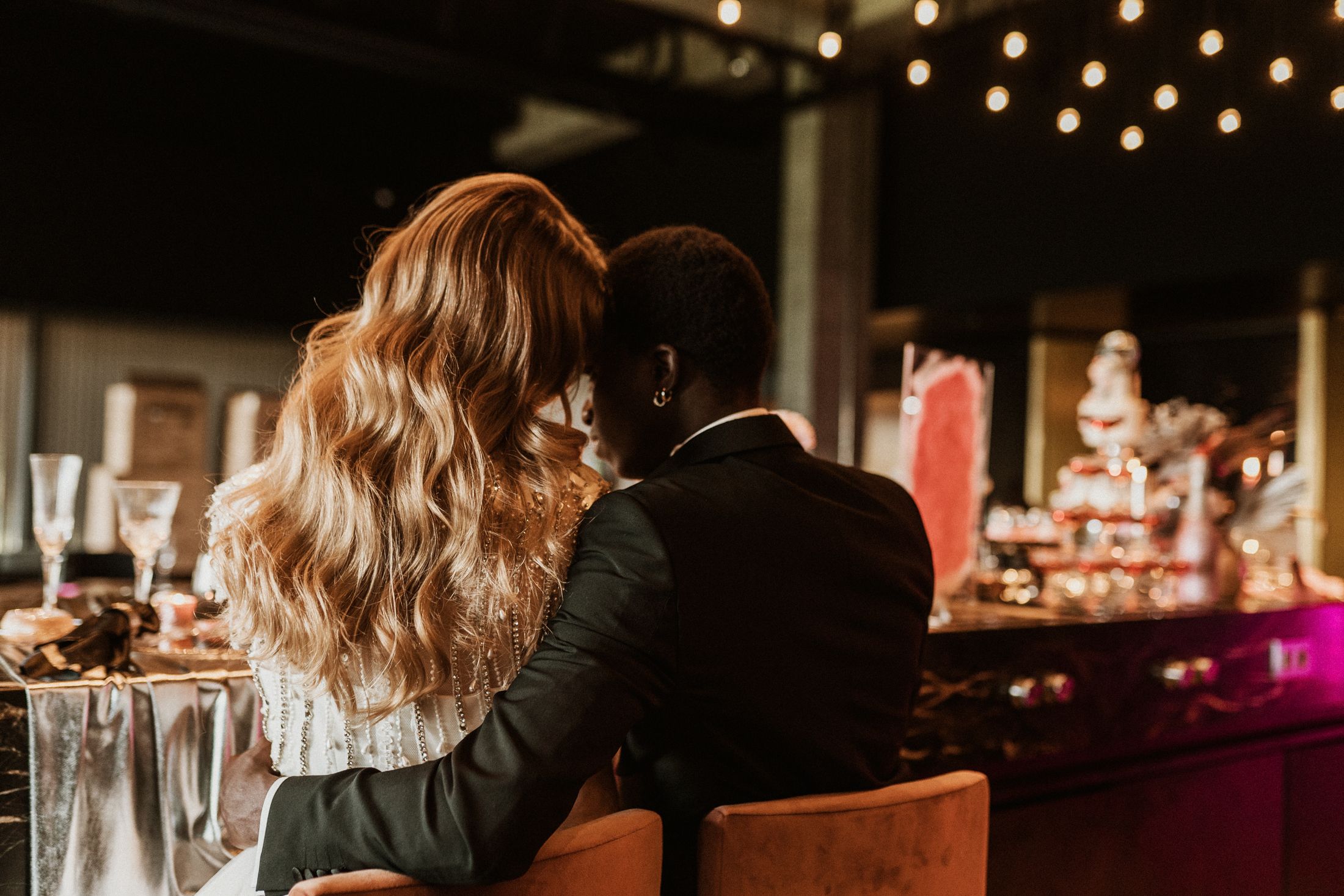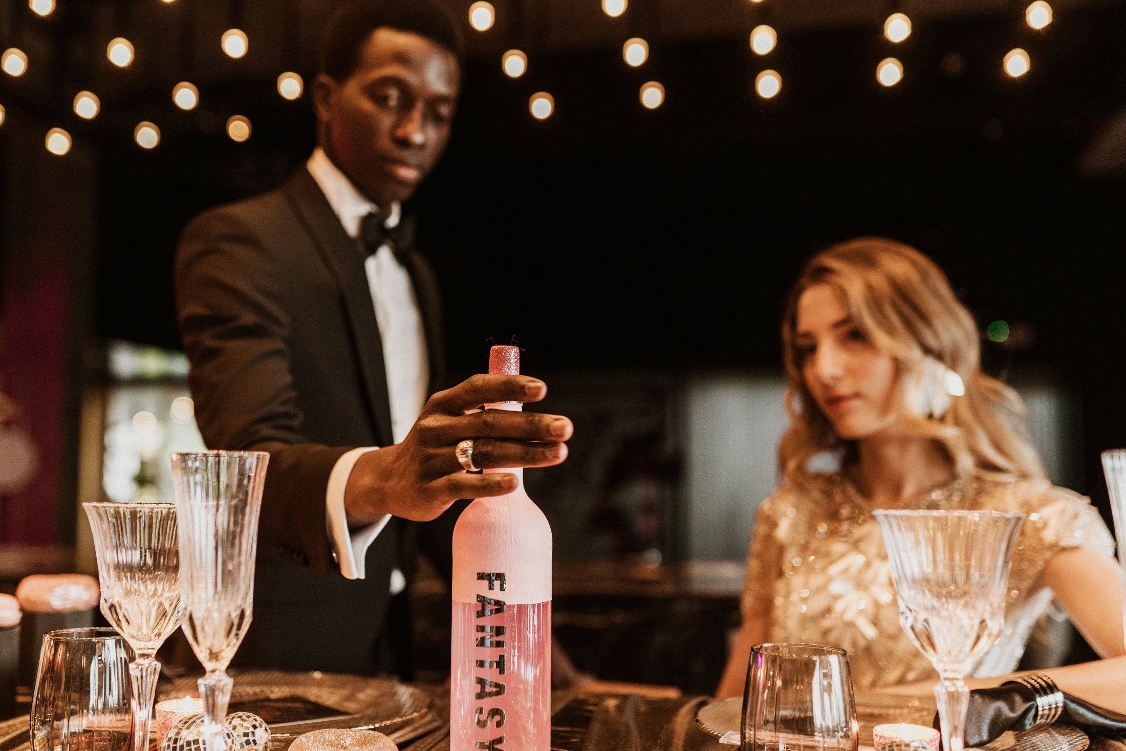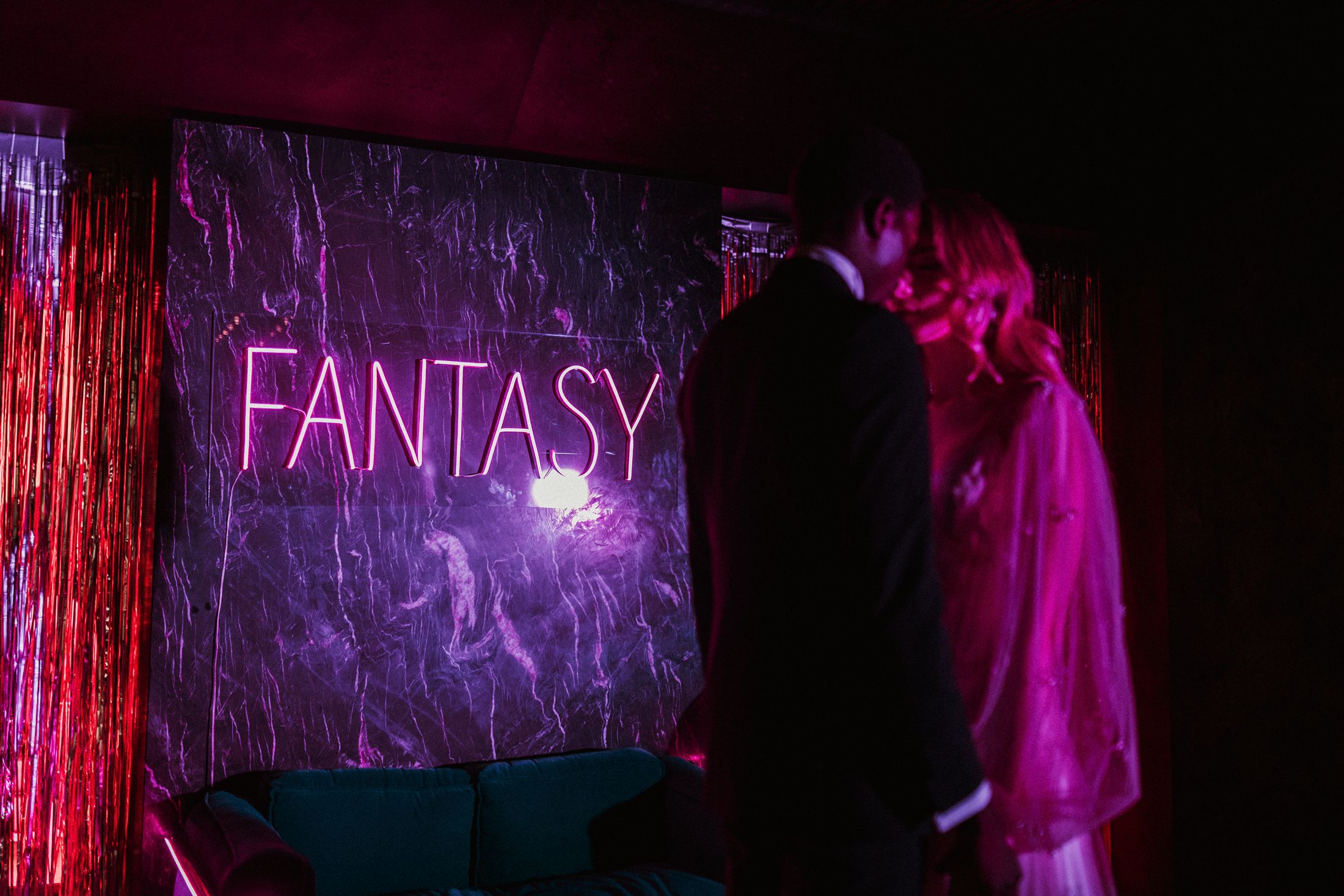 Fantasy wedding shoot inspired by the lights of disco balls, the glitter, the colour pink and the frenetic rhythm of the parties. It is a session with strength, character, full of optical illusions and sensations, transmits joy, elegance and is a tribute to many times and transcendental and relevant aesthetics such as art deco, the time of agitation social and the excesses along with the crazy 70's in which Saturday Night Fever made us dance non-stop. Something new, extraordinary, beautiful, simple, but with the ability to envelop you in a real fantasy.