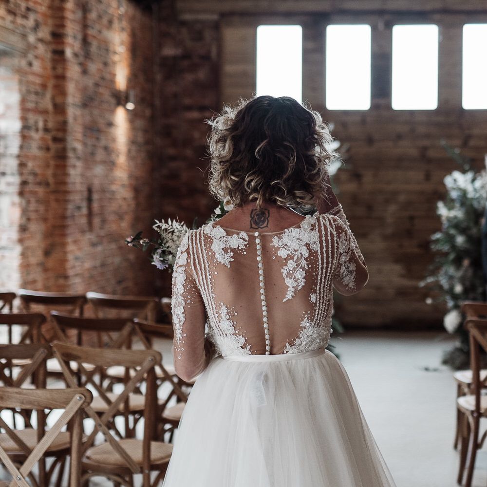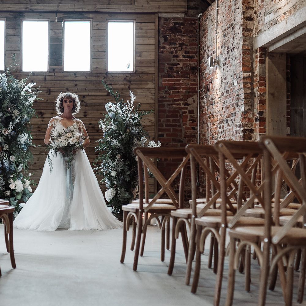 The concept of this shoot was to concentrate on the pure romance of a wedding, using the intimacy of the space and working with the aesthetic of an exposed brick barn.