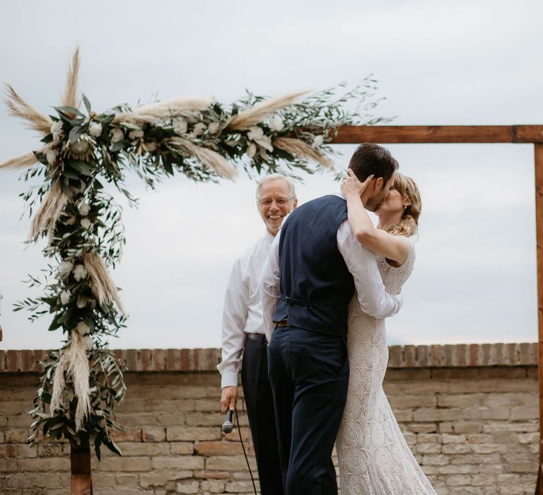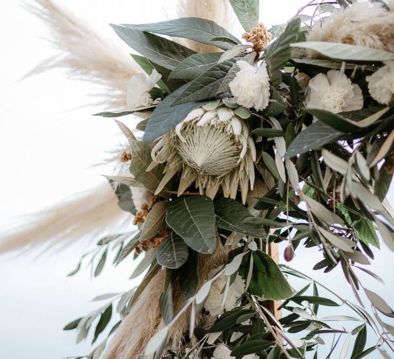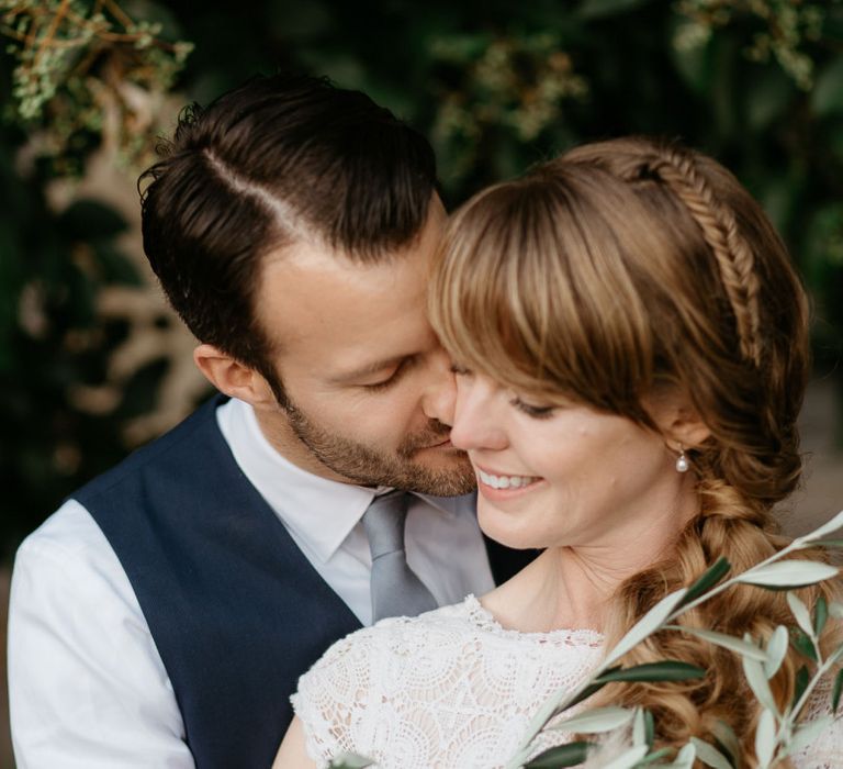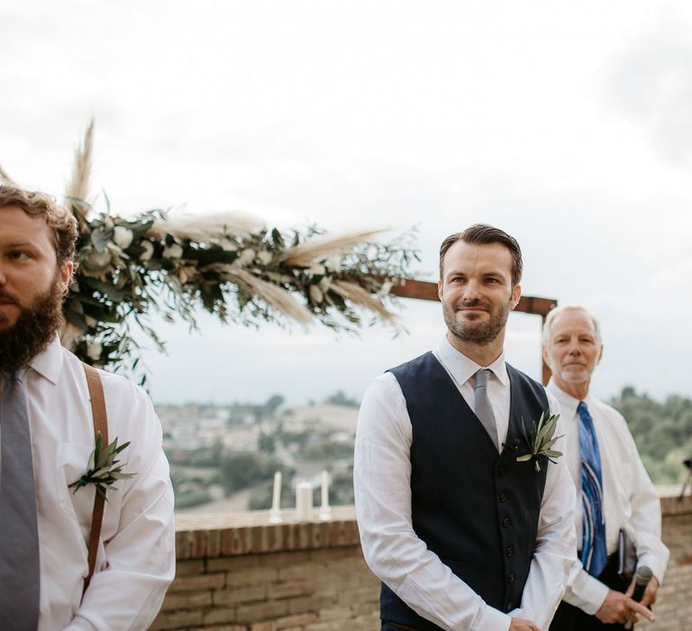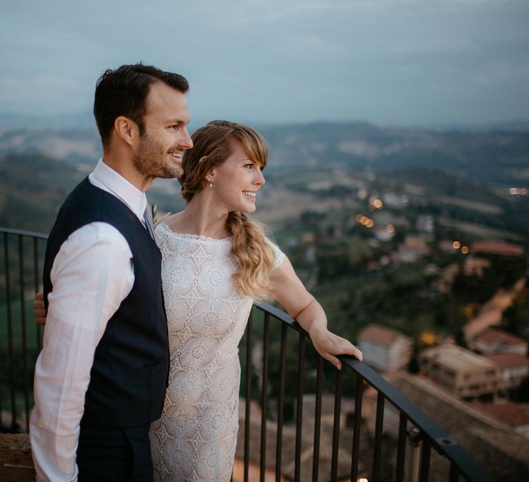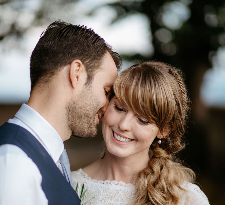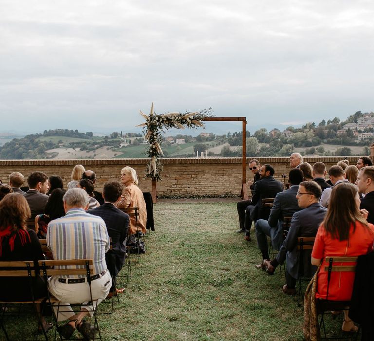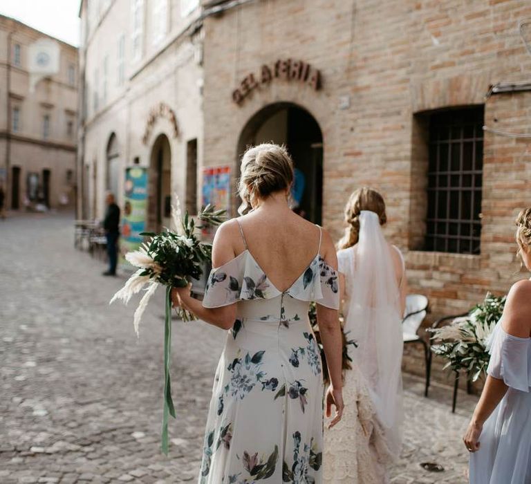 When your are planning from afar, there is only so much you can control, and from our very first chat with Elisa I knew I could trust her completely to execute the vibe and vision I had for the day. I didn't want to have to be bogged down in approving every detail but I knew I wanted to keep things Italian inspired and rustic with natural and wood elements so I sent her and our florist, I Fiori di Ale, some photos of olive branches, candles, and cork and let them take it from there. It was actually really fun to be surprised the day of with their execution and they went above and beyond what I could have imagined. The town was already picturesque enough, and the decor they created just added to the ambiance. Everything from the ceremony arch to my gorgeous bouquet and the table setting which included details like doilies inspired by my lace dress was perfectly simple yet stunning.