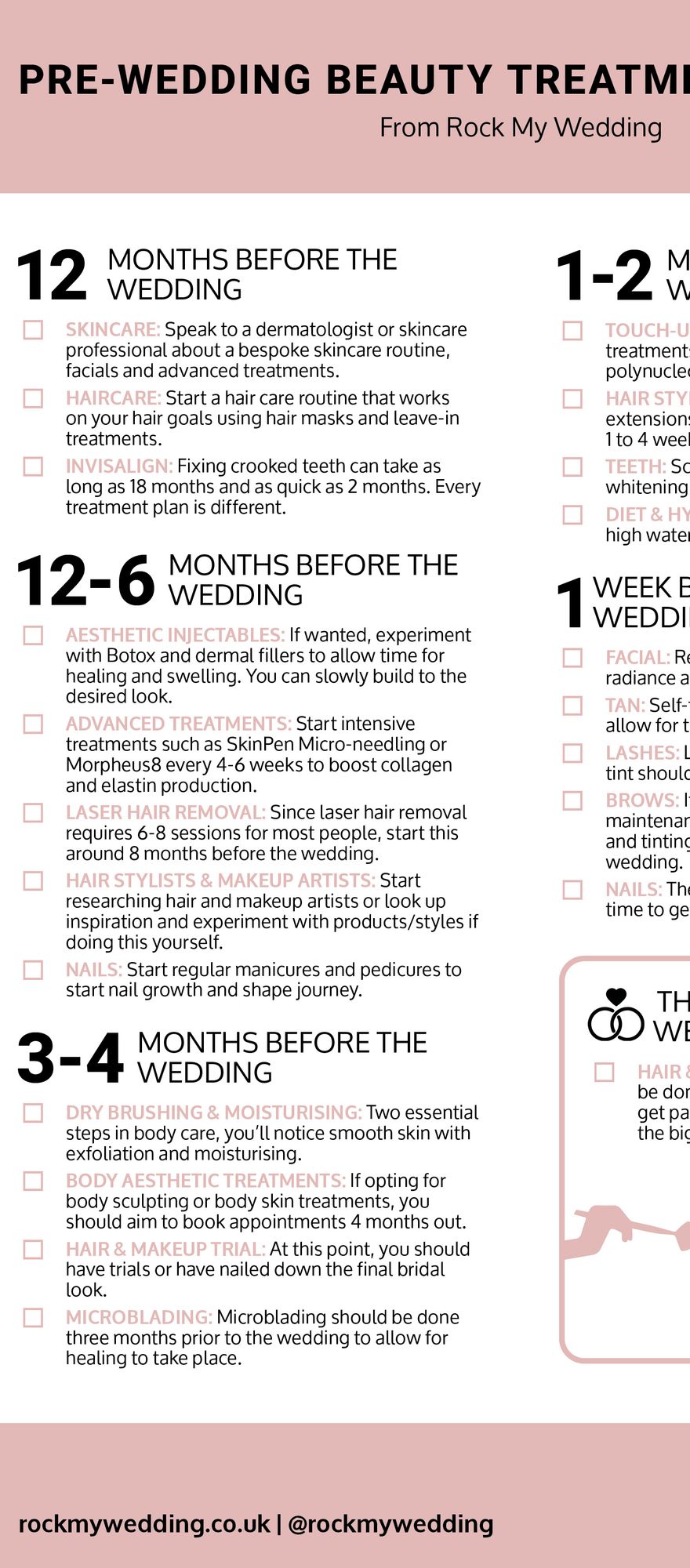 Take a look at our pre-wedding beauty timeline to keep you organised and feeling your best before the big day!