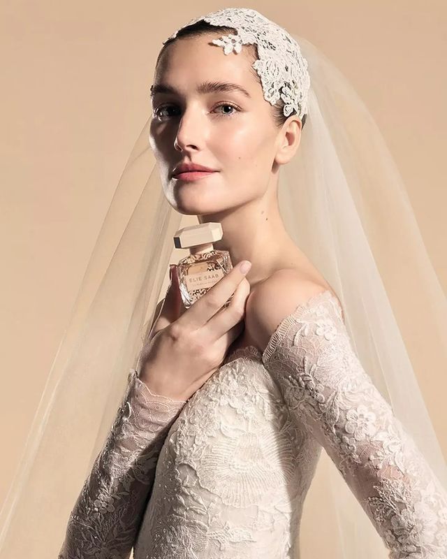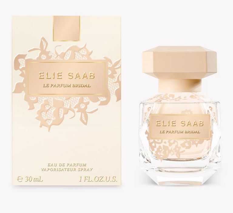 Elie Saab Le Parfum Bridal fragrance in an elegant nude and lace-detailed bottle, wedding perfume inspired by bridal couture