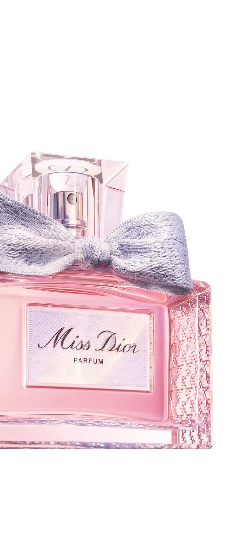 Miss Dior Parfum in a pink glass bottle with silver bow – a romantic floral perfume for brides