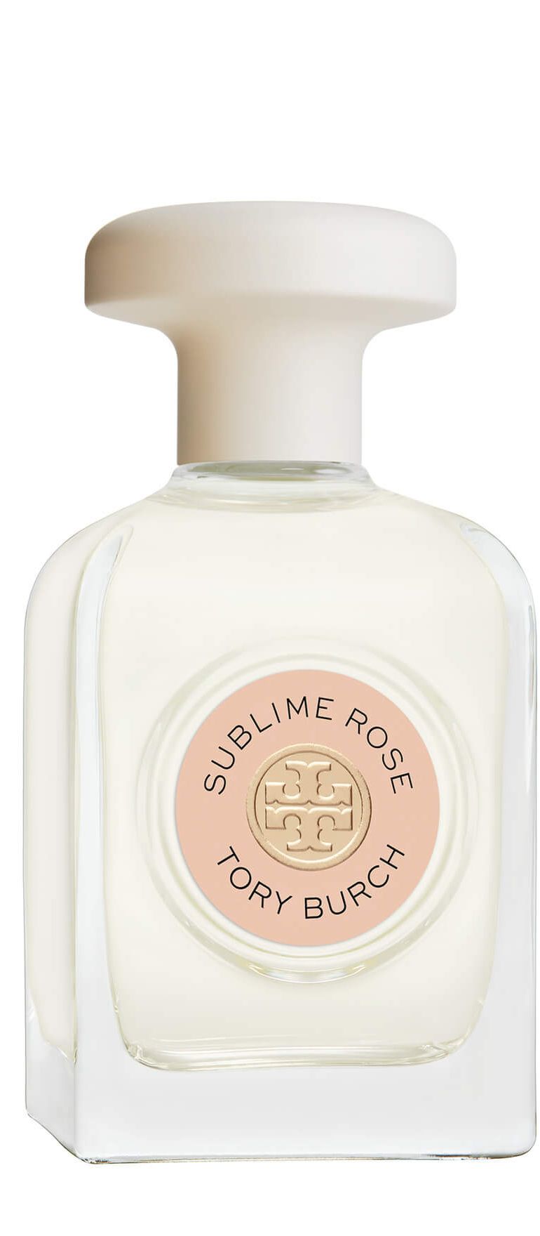 Tory Burch Sublime Rose Eau De Parfum – blush pink bottle containing a modern rose wedding fragrance with blackcurrant, freesia, and patchouli notes