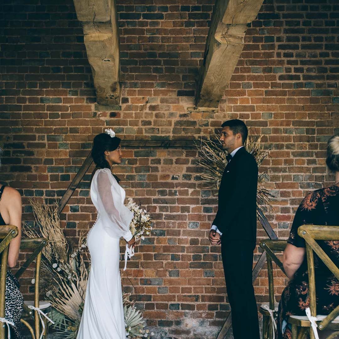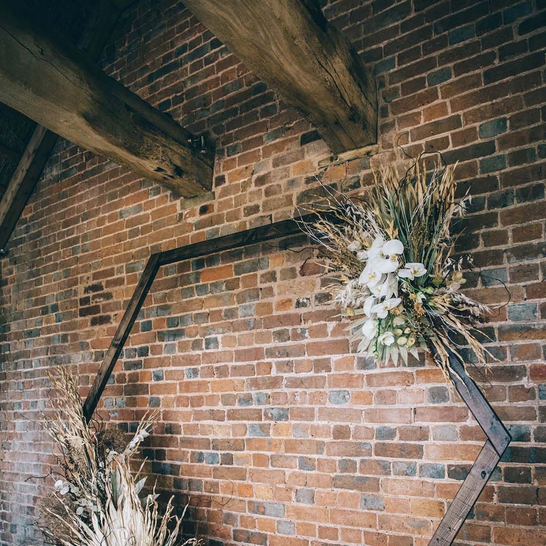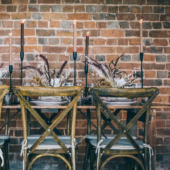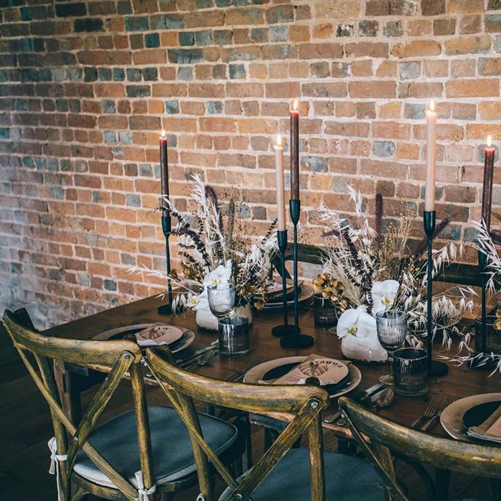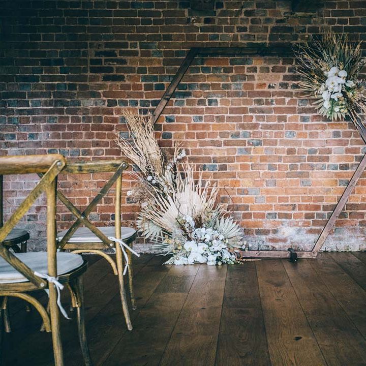 Our vision was to create luxe boho black tie modern styling in a rustic Devon barn and vineyard setting.