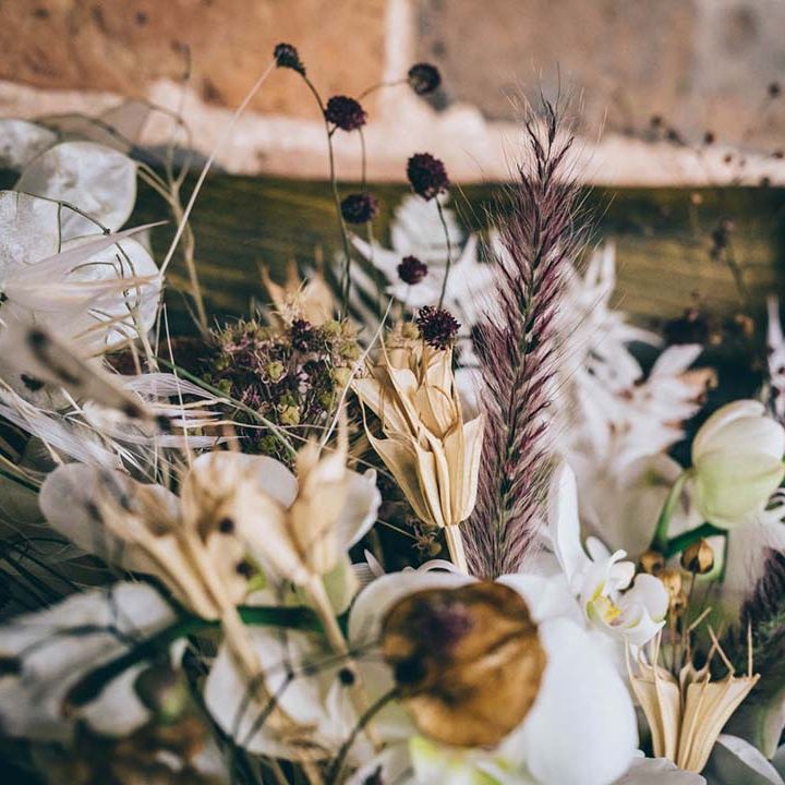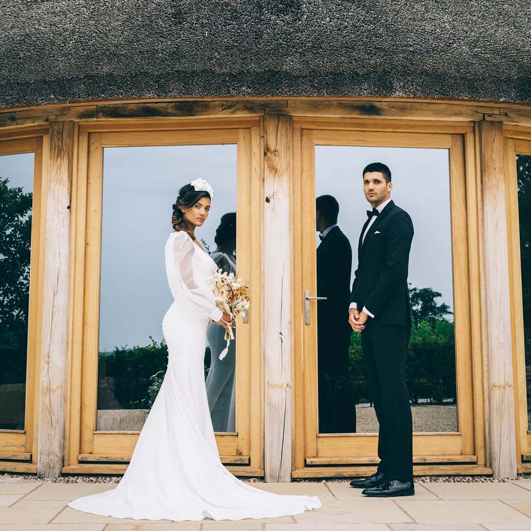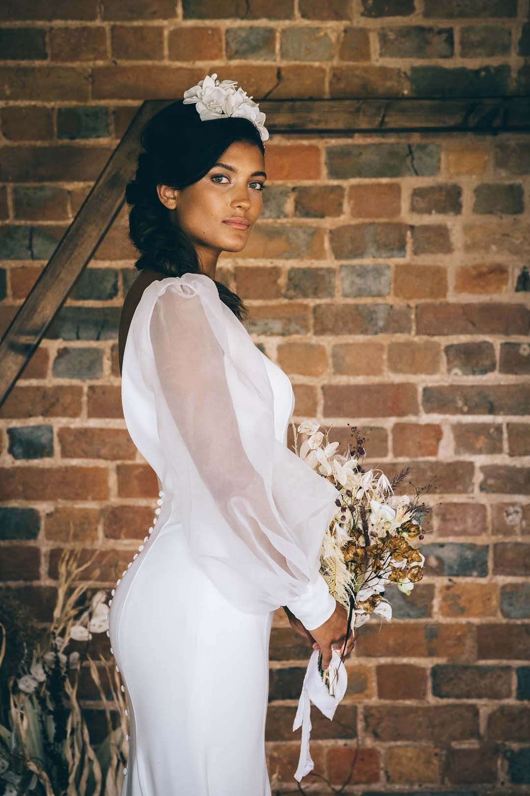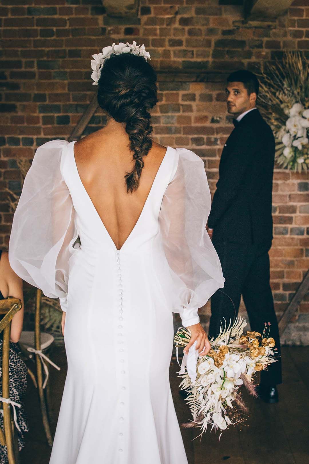 Our vision was to create luxe boho black tie modern styling in a rustic Devon barn and vineyard setting.