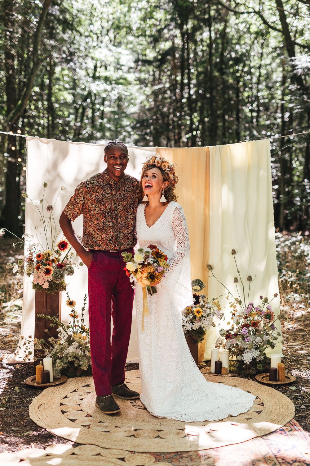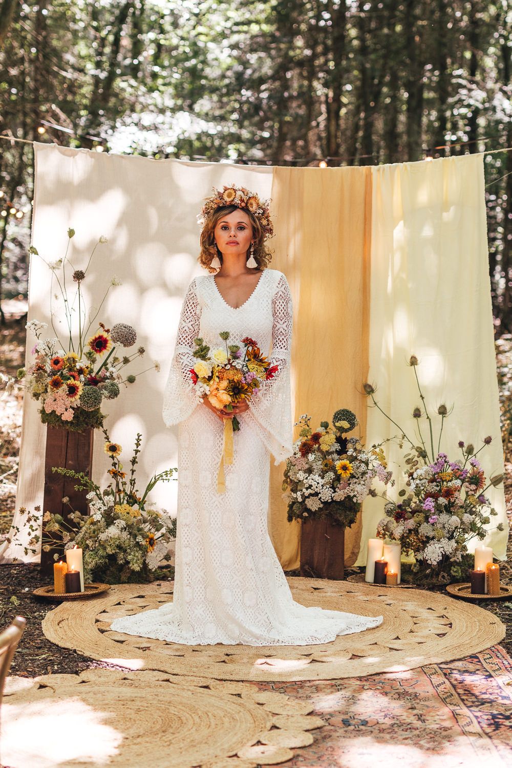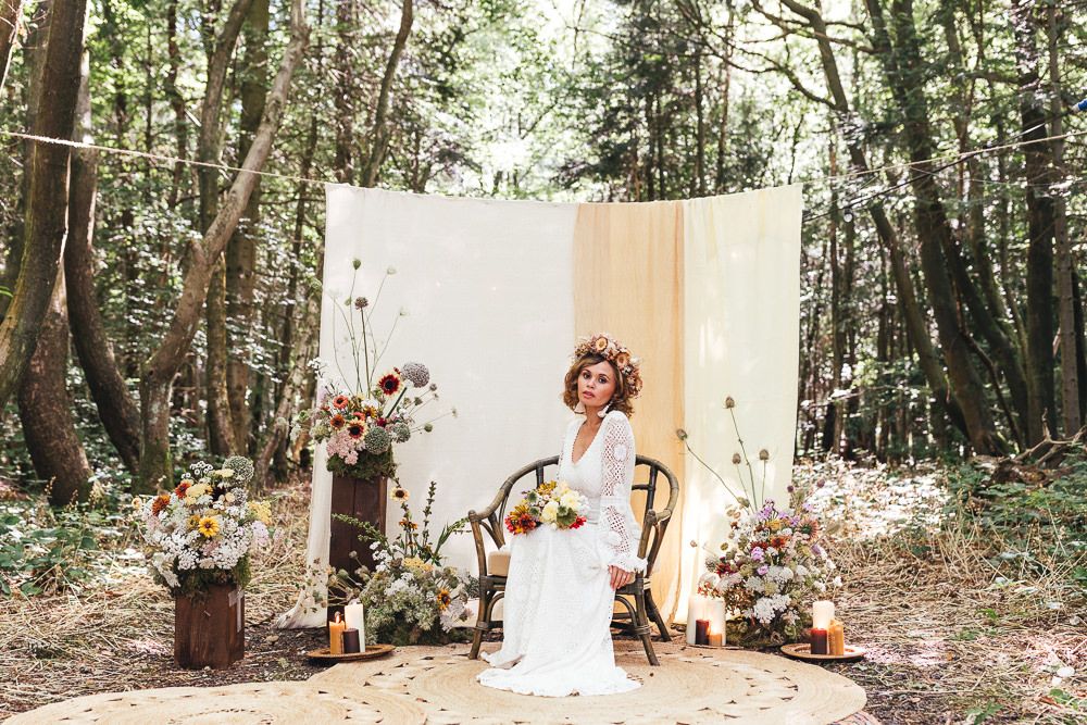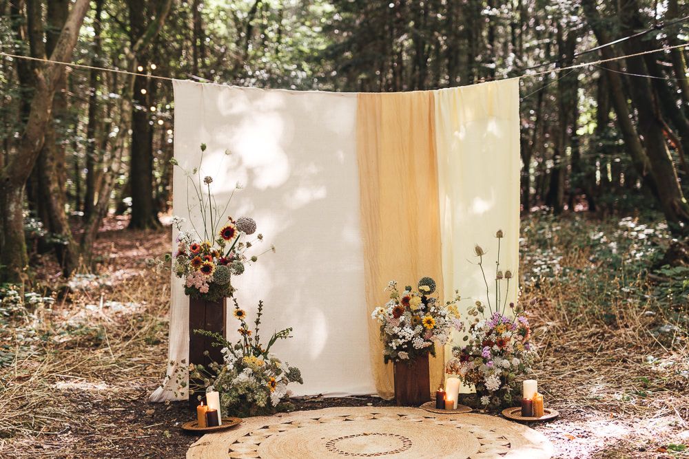 Kirsty Mackenzie (recommended supplier) and I were keen that our interpretation of ‘Boho wedding decor’ was stand out. ‘Boho’ often means pampas grass and macrame (and while we’re a big fan of both!) we were keen to show couples you can achieve all the boho vibes without these elements.
