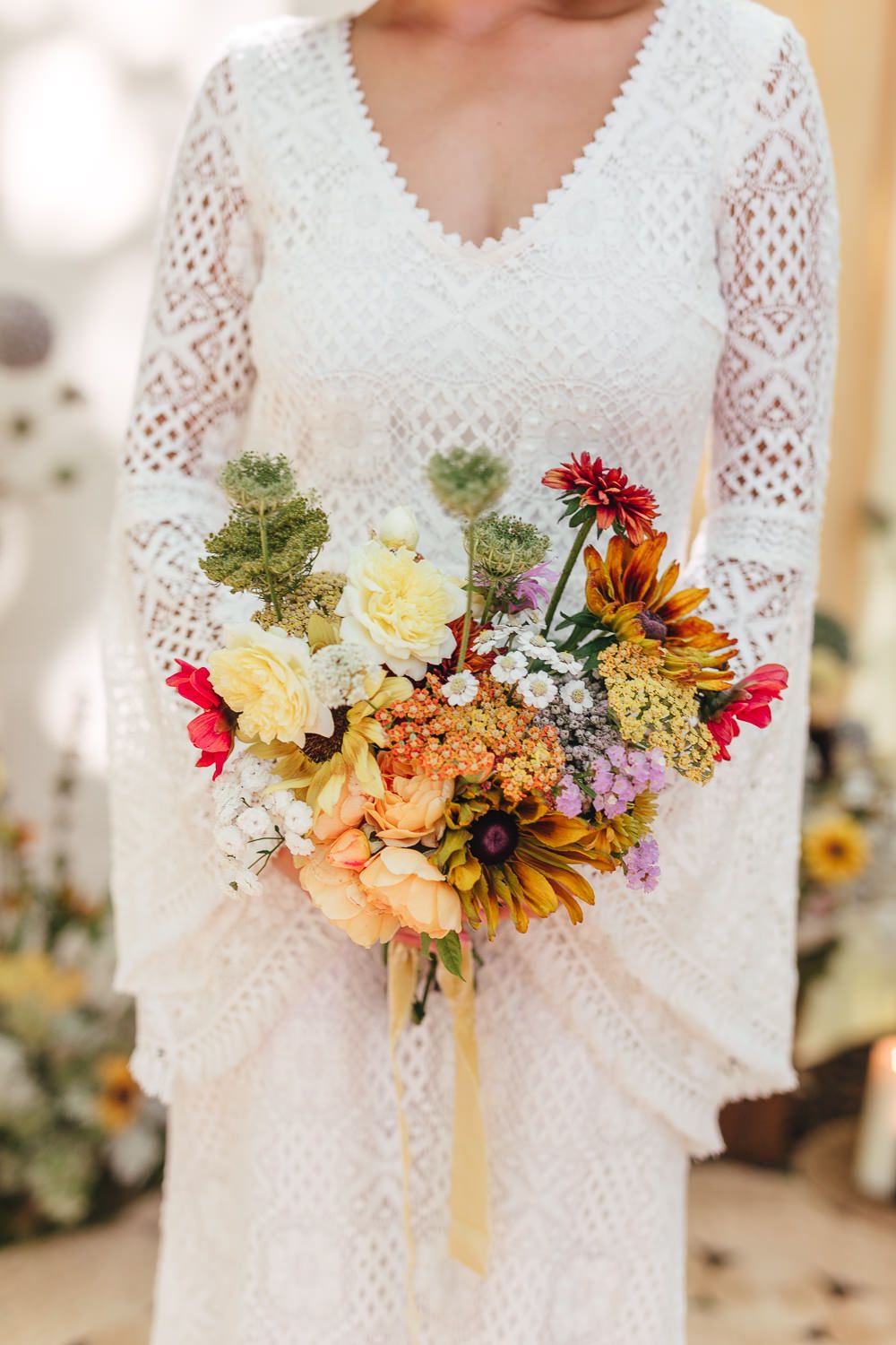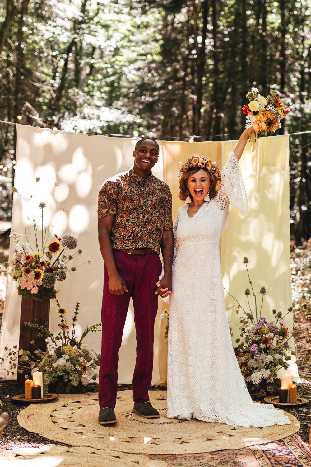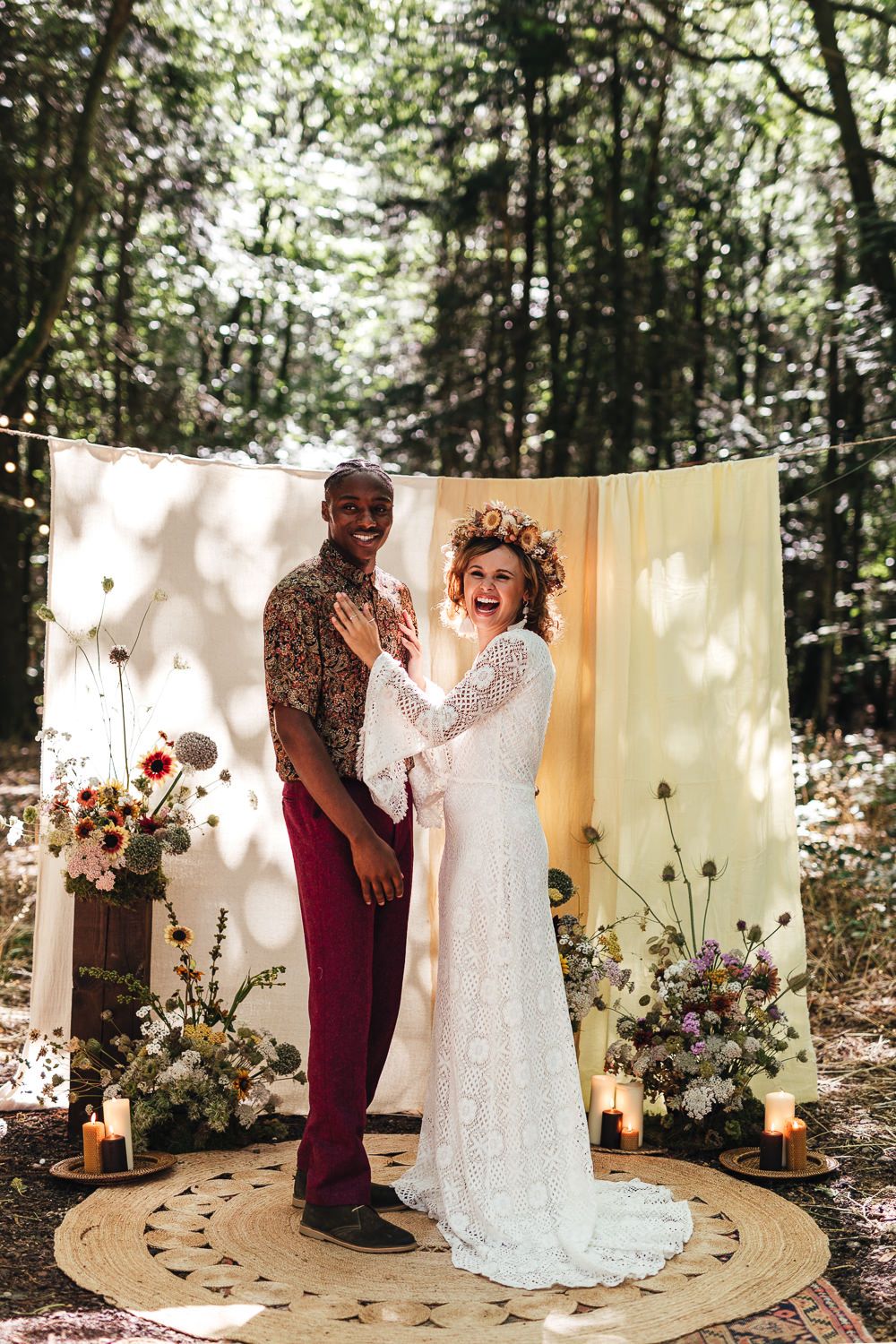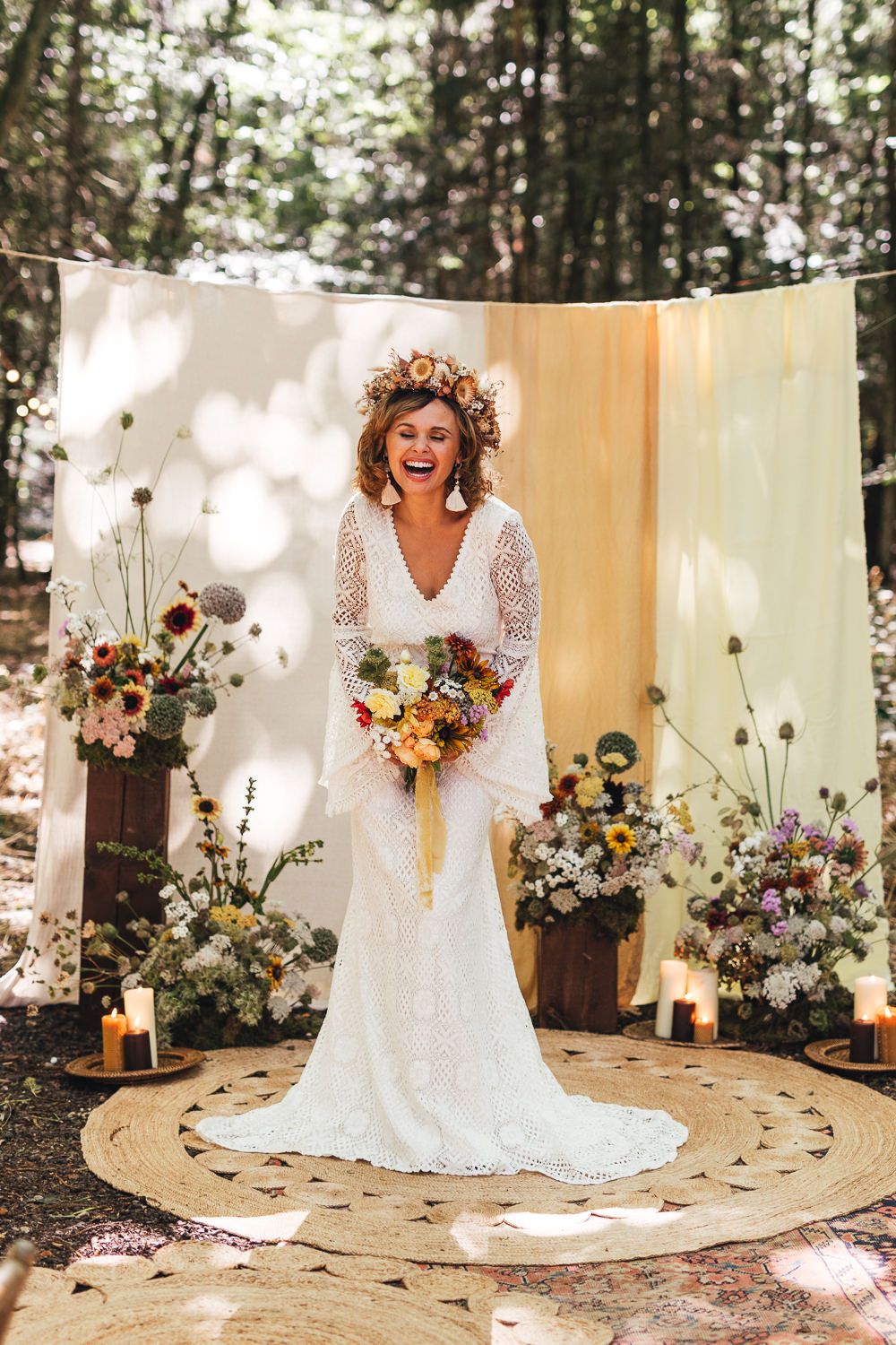 Kirsty Mackenzie (recommended supplier) and I were keen that our interpretation of ‘Boho wedding decor’ was stand out. ‘Boho’ often means pampas grass and macrame (and while we’re a big fan of both!) we were keen to show couples you can achieve all the boho vibes without these elements.
