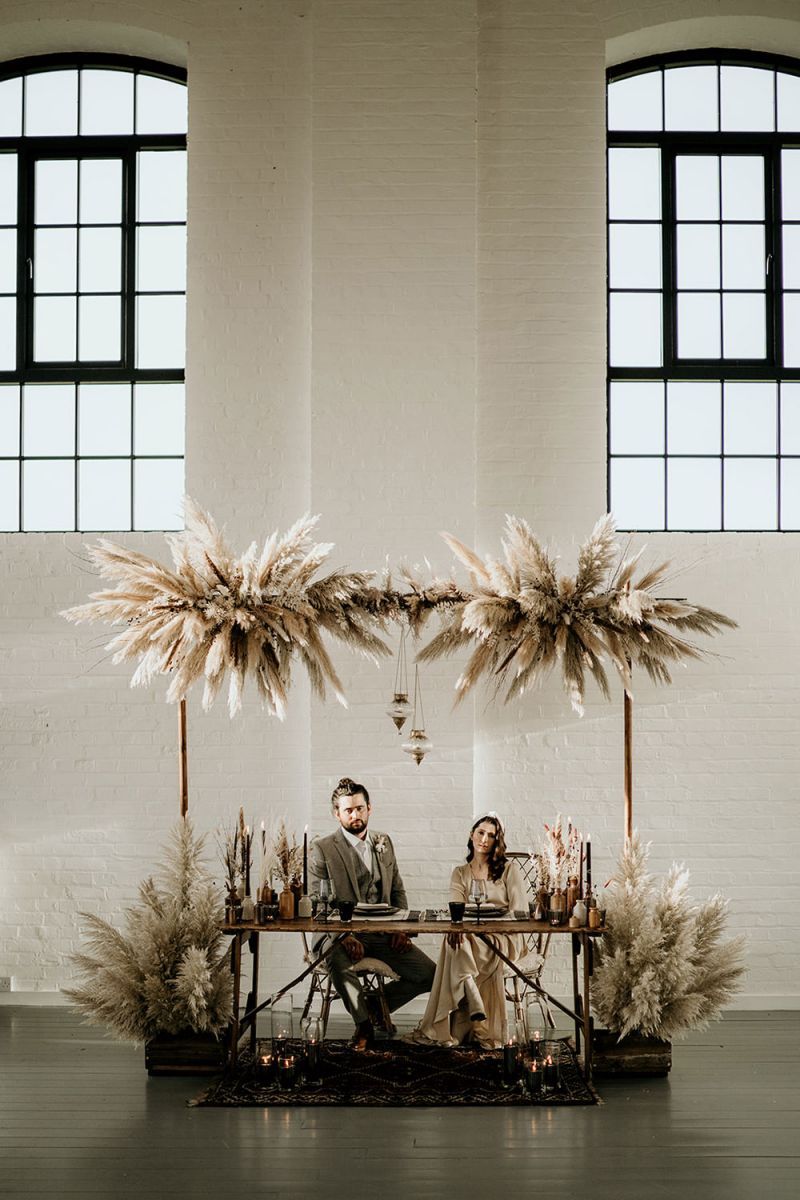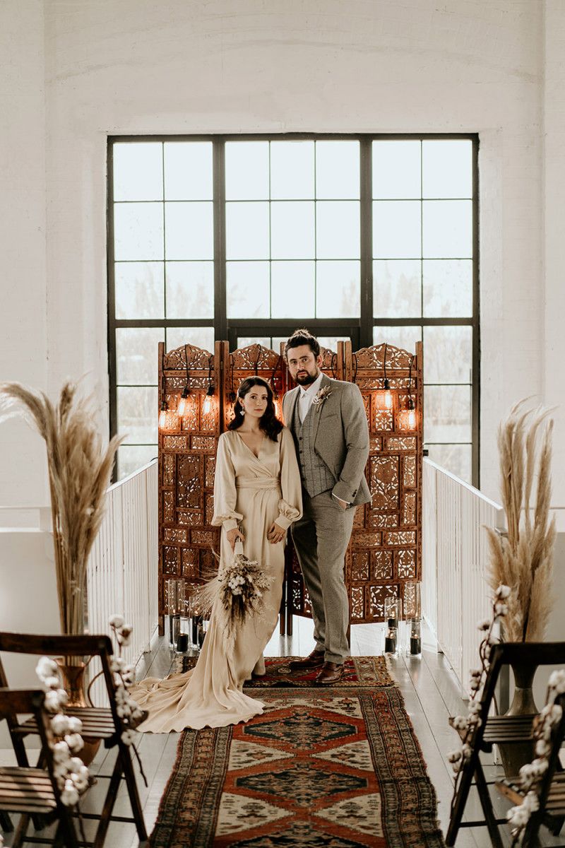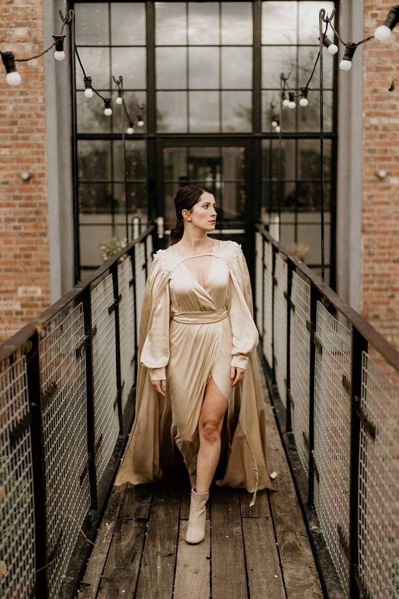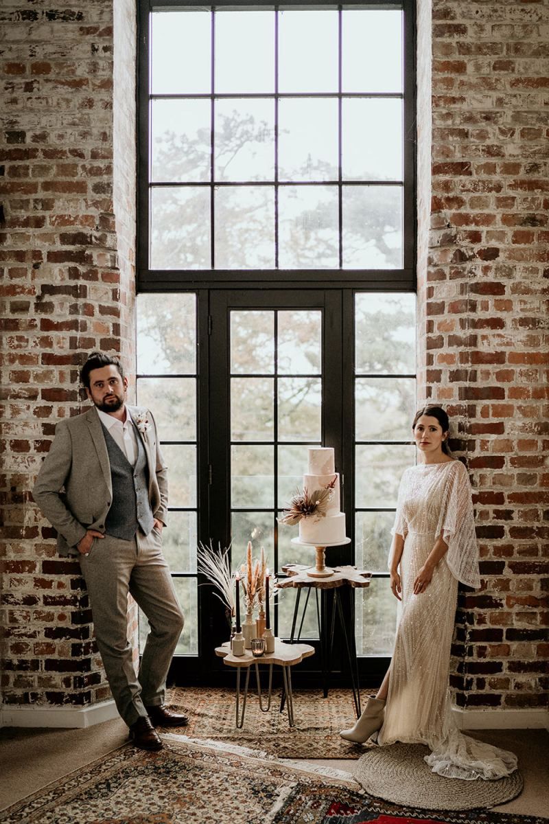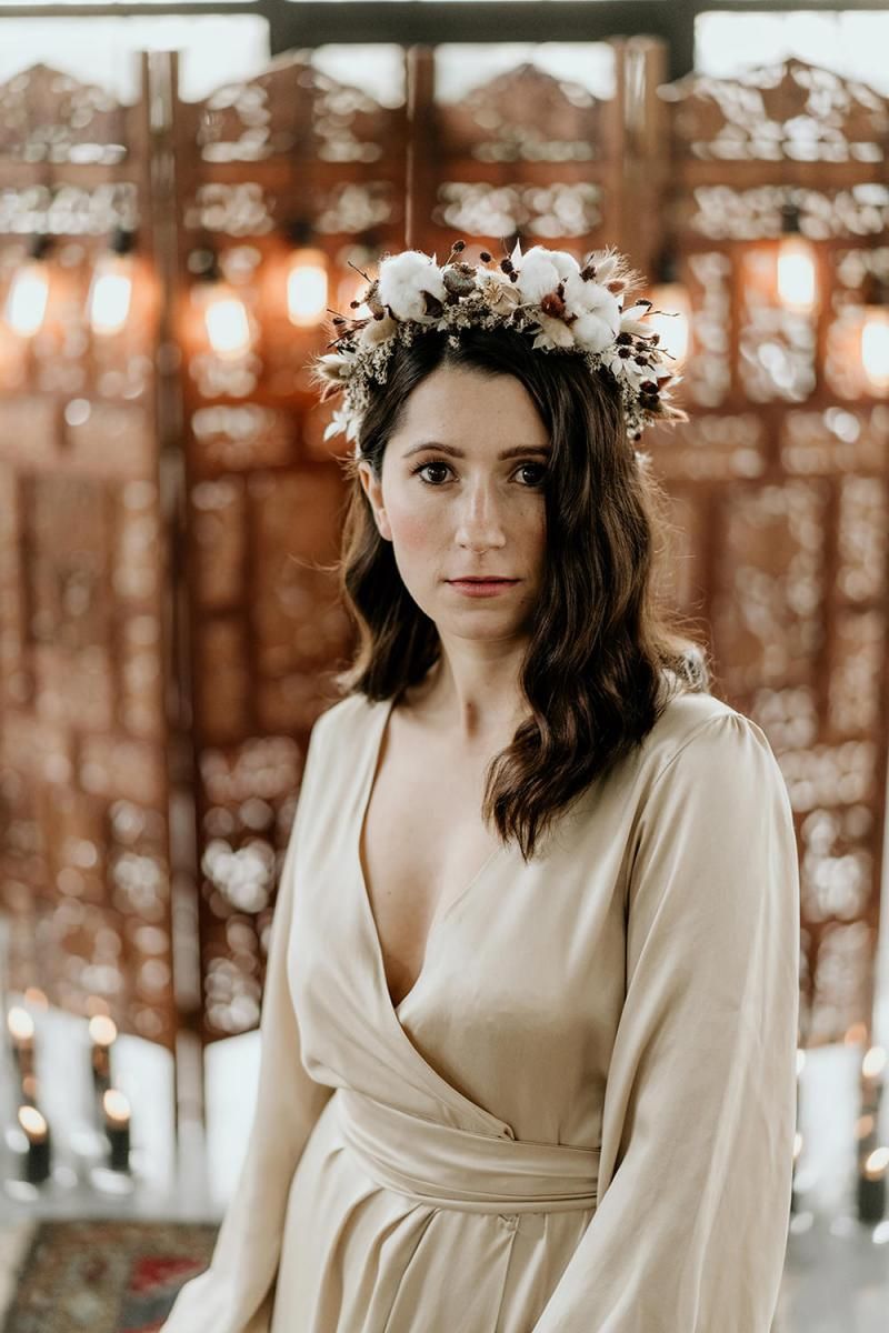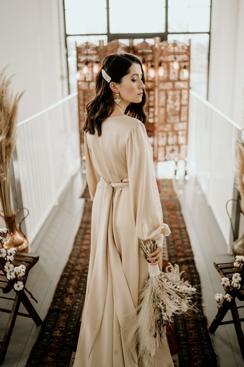 Neutral tones, natural fabrics and luxury touches for a stylish industrial shoot with bohemian references.