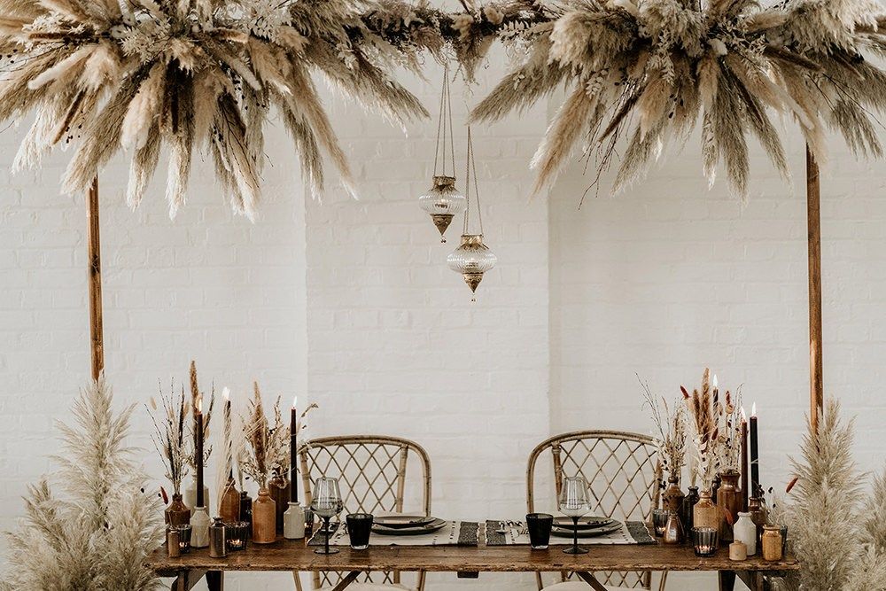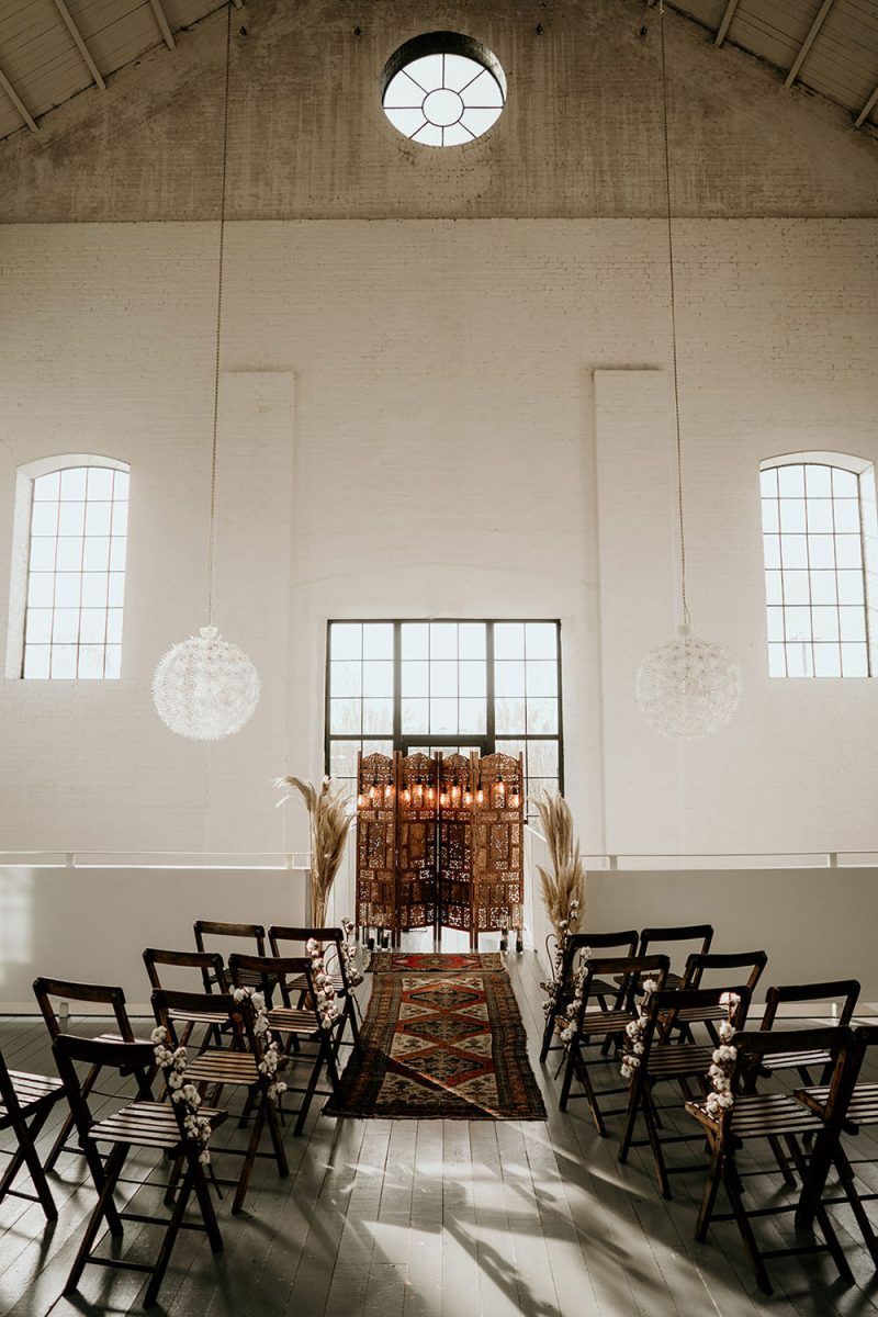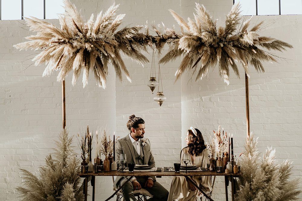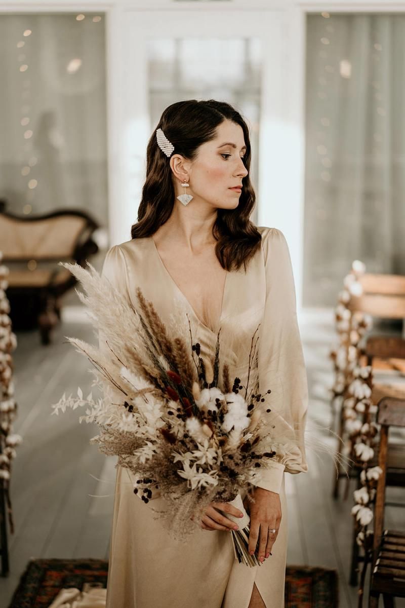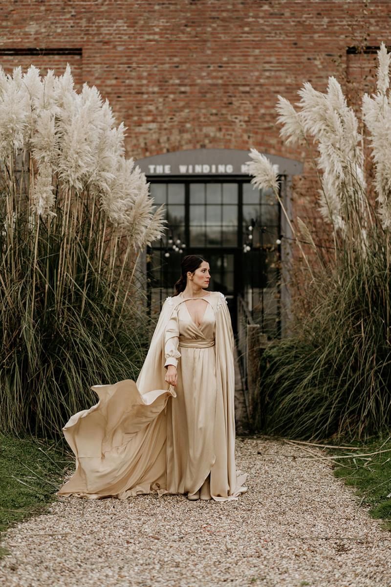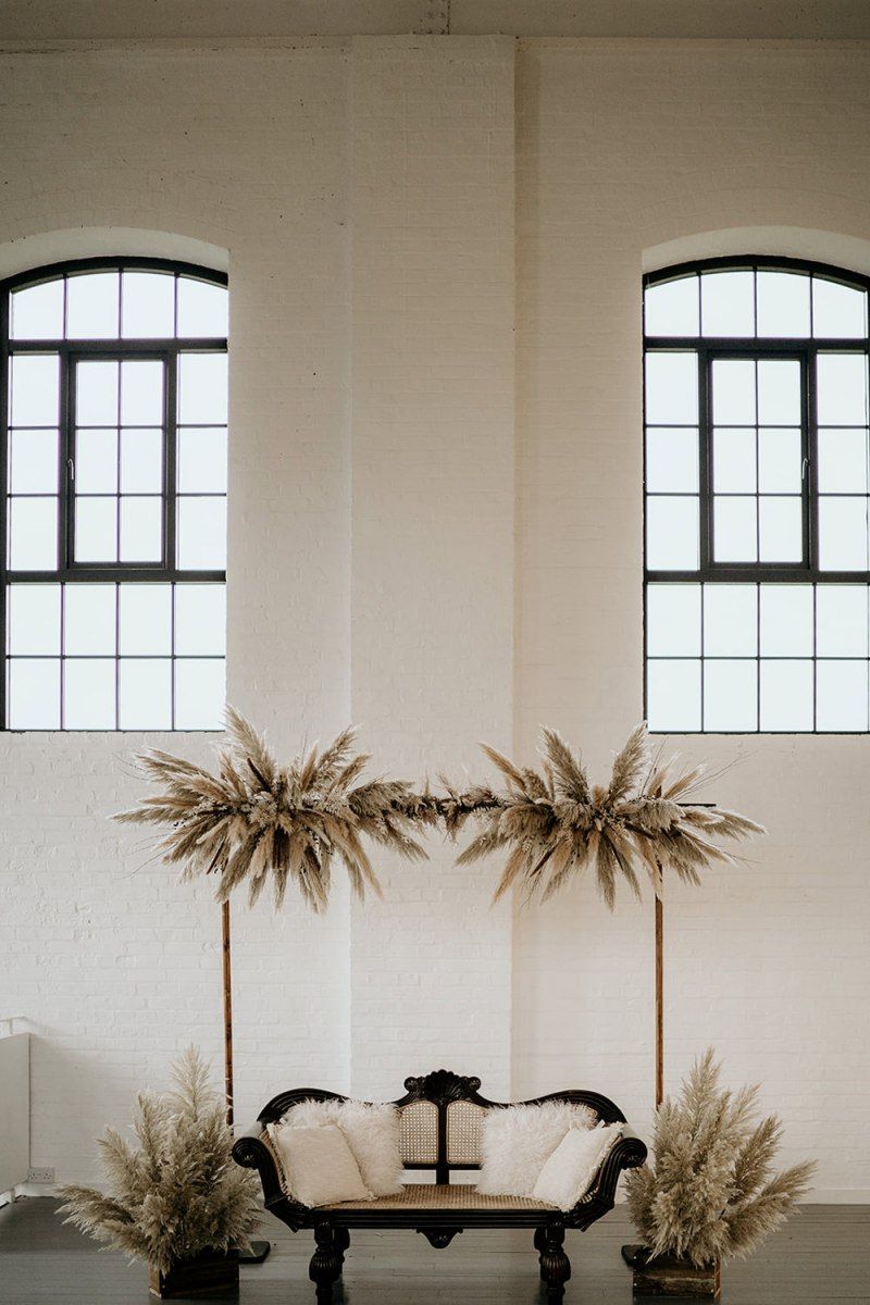 Neutral tones, natural fabrics and luxury touches for a stylish industrial shoot with bohemian references.