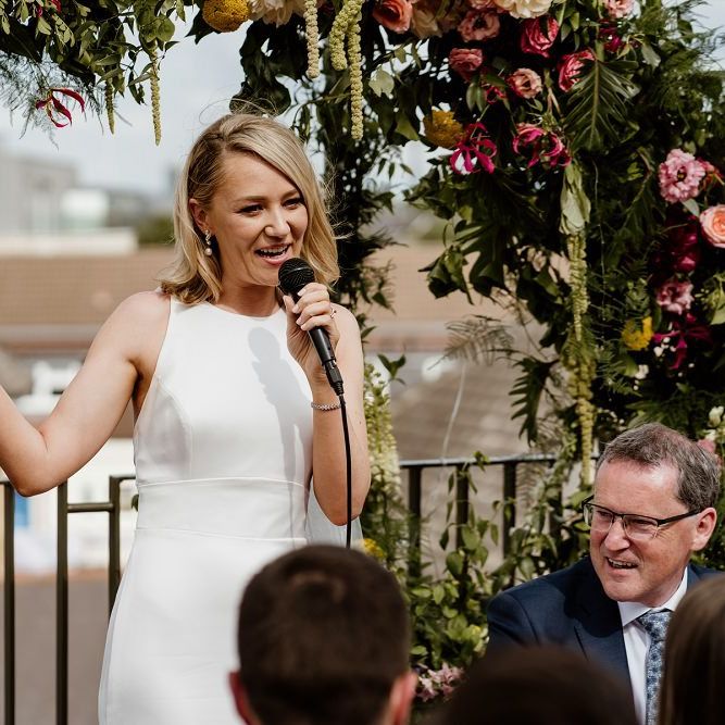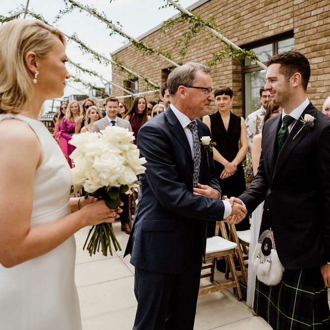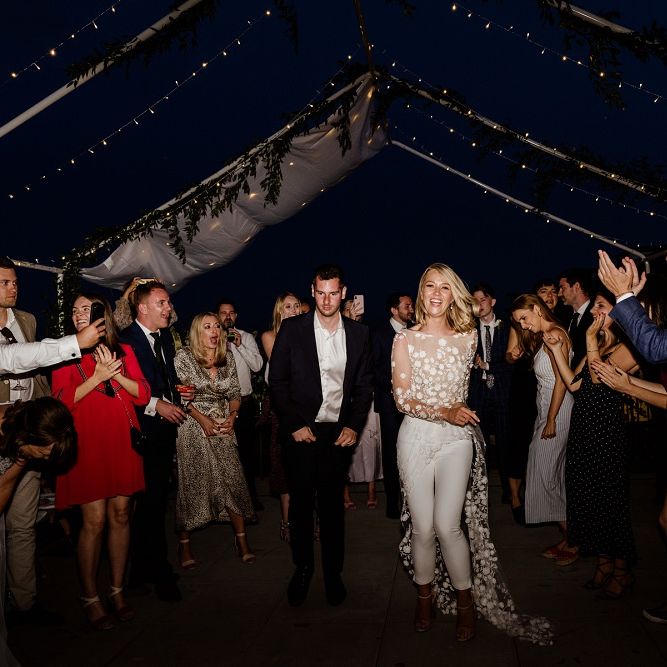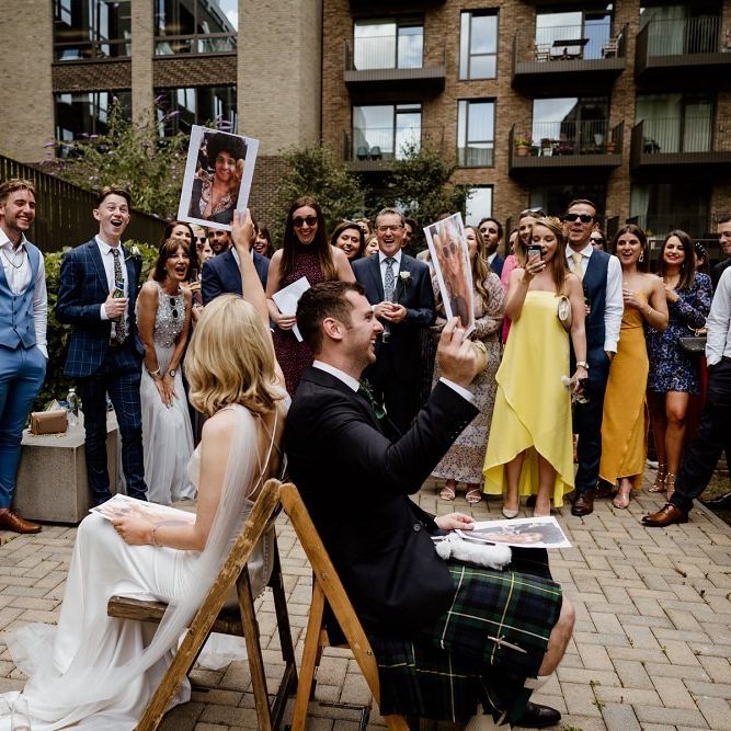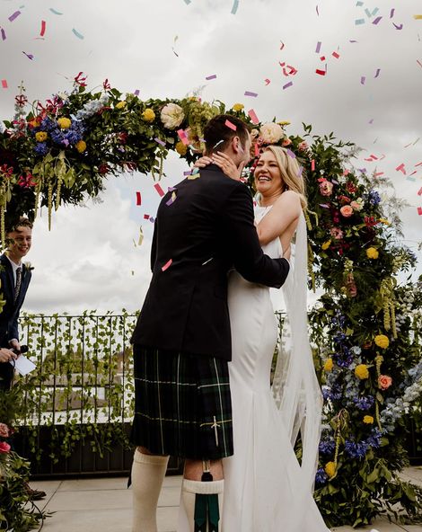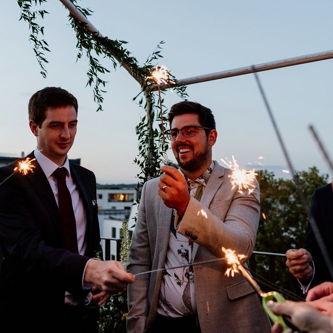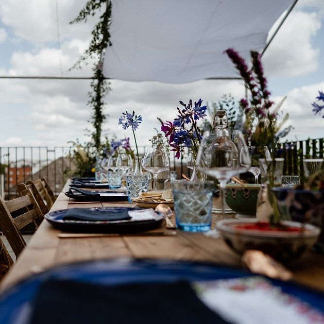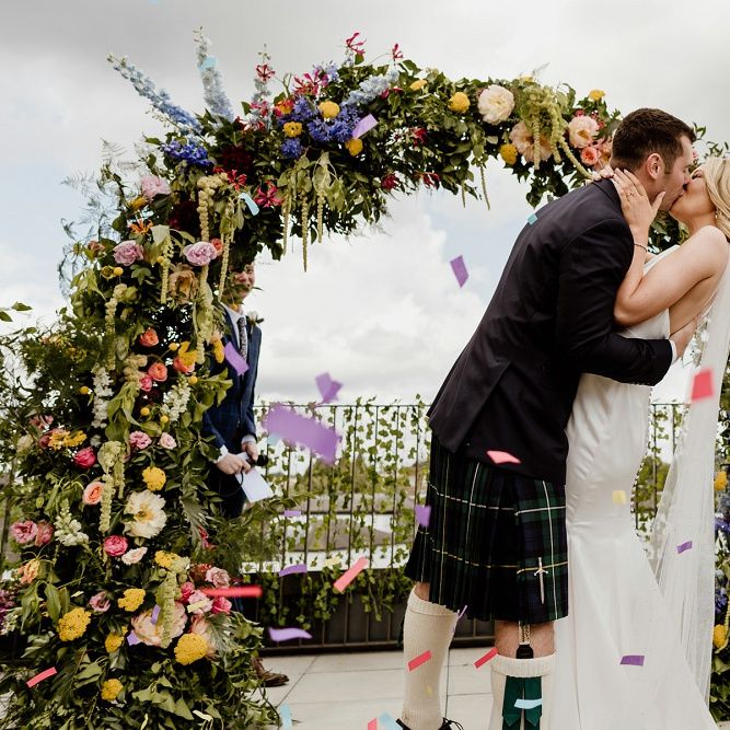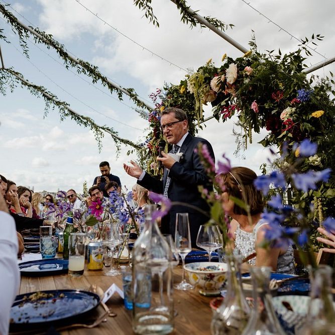 We hosted our wedding on our private rooftop terrace in West London which is pretty unusual! We managed to fit 60 guests (and 12 event staff) into our flat without it ever feeling too cramped. The day successfully moved from ceremony to reception, from fun games to four-course meal and, finally, from cocktail party to disco. We worked tirelessly but being able to plan and design every aspect of the day made it all worth it. Having our closest family and friends celebrate with us in our own home was incredibly special and unforgettable for both us and our guests. Malcolm and I weren’t really into the pressure of having a traditional first dance so we thought we’d surprise our guests with an Irish Dancing Flash-Mob. We came out strutting to Beyoncé and Jay-Z ‘Crazy in Love’. After 15 seconds the music stopped and two Irish dancers dressed as ‘event staff’ broke into the dance floor and started Irish dancing. They then got all our guests to take part in a Céilí which went down a storm. Sharon captured the reaction of our guests perfectly when the Irish Dancing started - they didn’t have a clue what was going on.