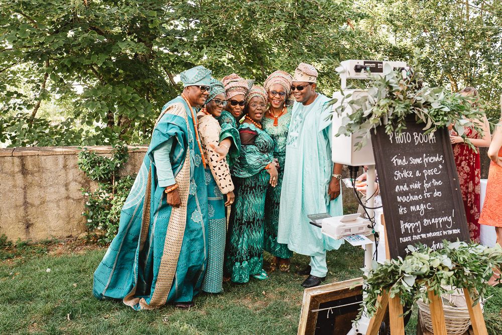 When planning our wedding we knew it was really important that our venue allowed us to have all of our family and friends together over a couple of days as we had guests travelling from the UK, US, Ghana and Nigeria. When we found Lartigolle, we fell in love, it was the only venue we visited and we knew it was perfect for us. A really special part of our wedding, was our welcome dinner on Friday night at Ferme de Labarthe, Anogie’s mother and aunts had prepared some traditional Nigerian dishes including Jollof rice which we had alongside some seasonal salads and chicken rotisserie – needless to say all of our guests loved it and it was all gone very quickly.