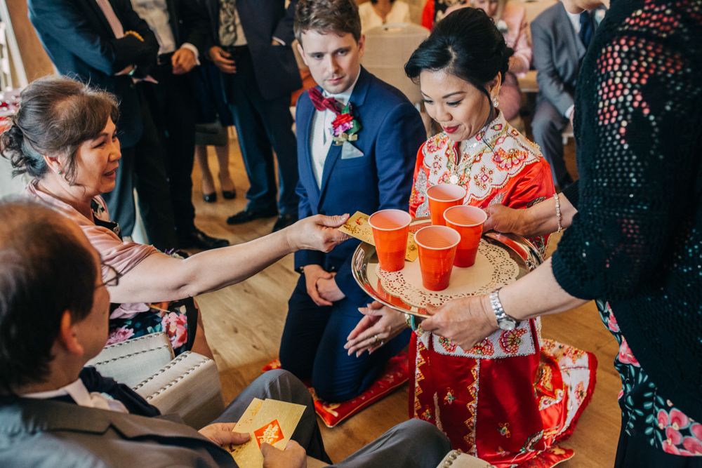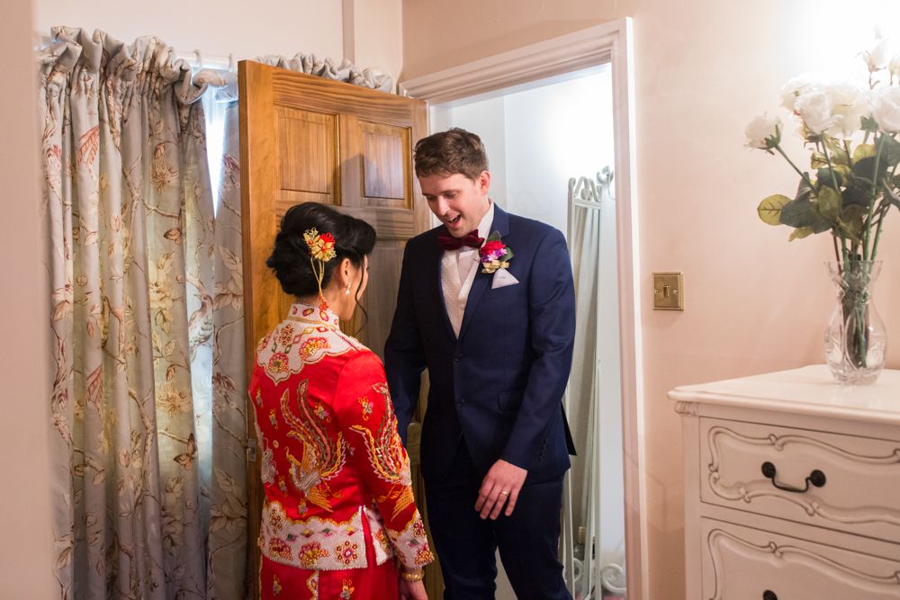 The day was unique as everything was organised from Australia. We had been carefully planning n organising everything for over a year and seeing it together was amazing. It was unique having our friends watch the Chinese wedding games and the tea ceremony as it brought my culture into an English wedding which they had not seen before. We visited the UK in February, 7 months before the wedding for two weeks and in that time frame, we had to make all wedding favours and decorations and also put the invites together. The wedding favours were salt dough thank you heart decorations that were individually handmade along with the origami decorations.