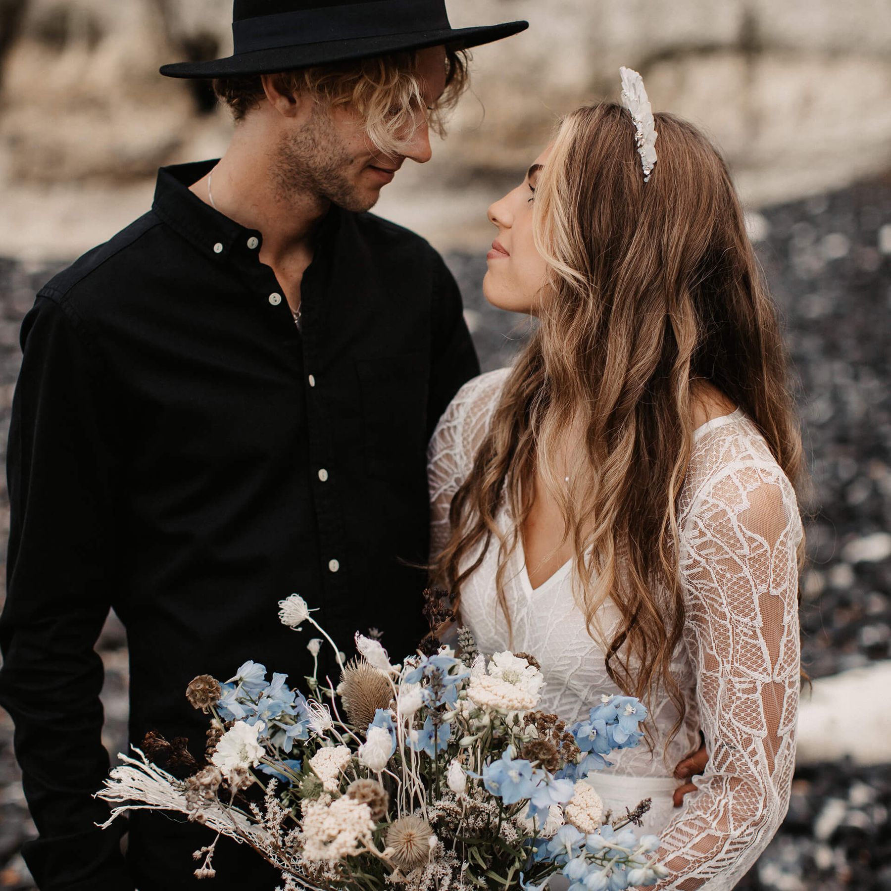 This Year has been quite a wild ride for the entire world and many wedding plans have been affected. With the coastal elopement shoot “You and Me by the Sea” we would like to inspire and show a better option of elopement which could be done here in the UK with so many beautiful spots to choose from. Elopement weddings are rather trendy these days, they can be incredibly personalised and so romantic.