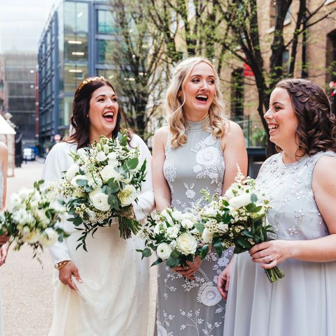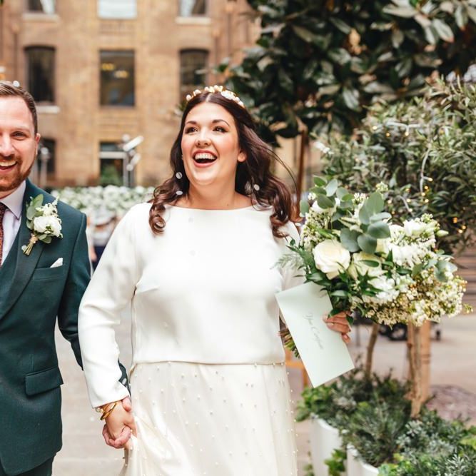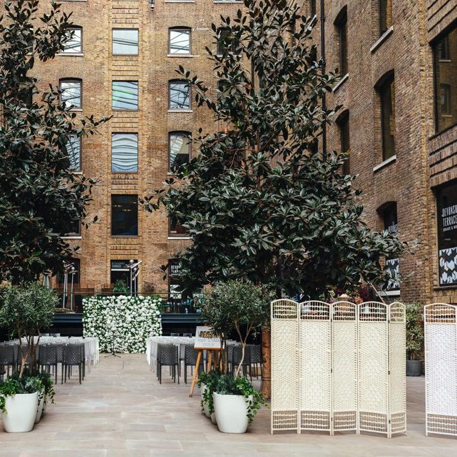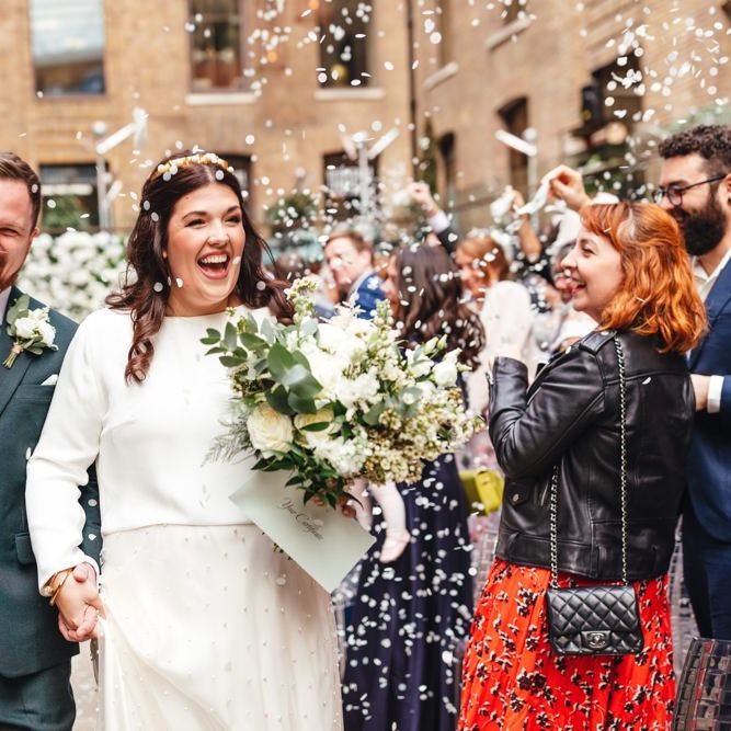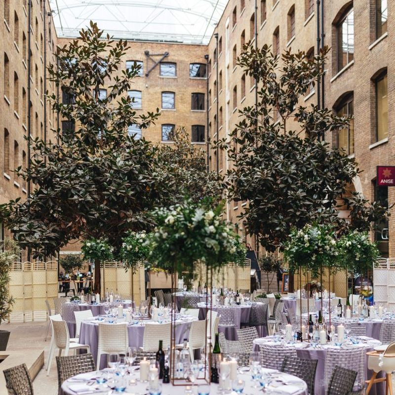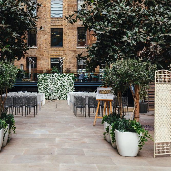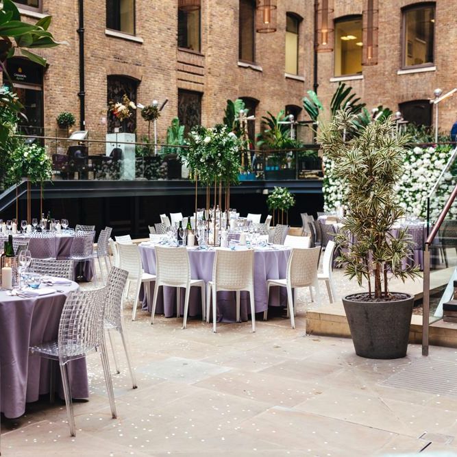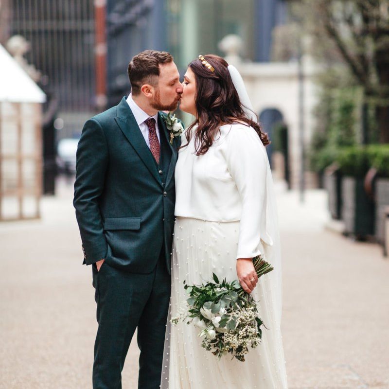 We love having friends and family over for parties and wanted our wedding to retain that same essence. We wanted people to feel that they were coming to an occasion but really relax, let go and enjoy themselves. Our inspiration was London, we love the architecture of the city and the pockets of greenery. The courtyard of the venue really captured this for us and to add softness we added lots of white flowers, foliage, candles and hues of soft greys.