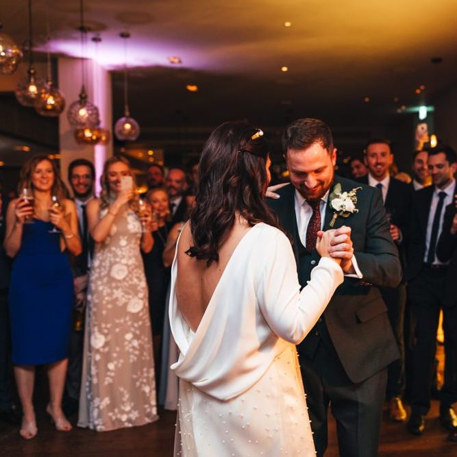 Having it in East London near to where we met and live was important and the Devonshire Terrace captured the essence of the city we fell in love in. Sadly, a couple of years ago my Dad passed away and rather than worrying about who was going to fill his shoes I decided to walk myself down the aisle and my amazing bridesmaids did a speech. We also made all of the wedding stationery, including individual place settings with menus, welcome sign and seating plan. Whilst taking our couple shots we sat on a bench at the opposite end of the venue. It gave us the best vantage point of our wedding and it was amazing to see all our friends and family celebrating our special day and also gave us a moment to take it all in. Another moment that stood out was the speeches, rather than have them read during dinner we moved it into the bar area to create a more intimate, relaxed atmosphere. The images Kirsty was able to capture of this moment are some of our favourite pictures of our loved ones from the day.