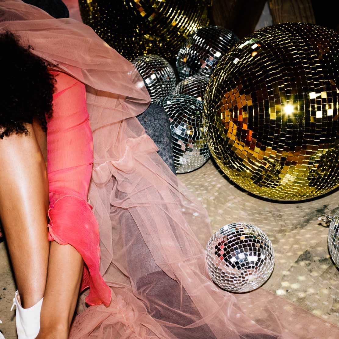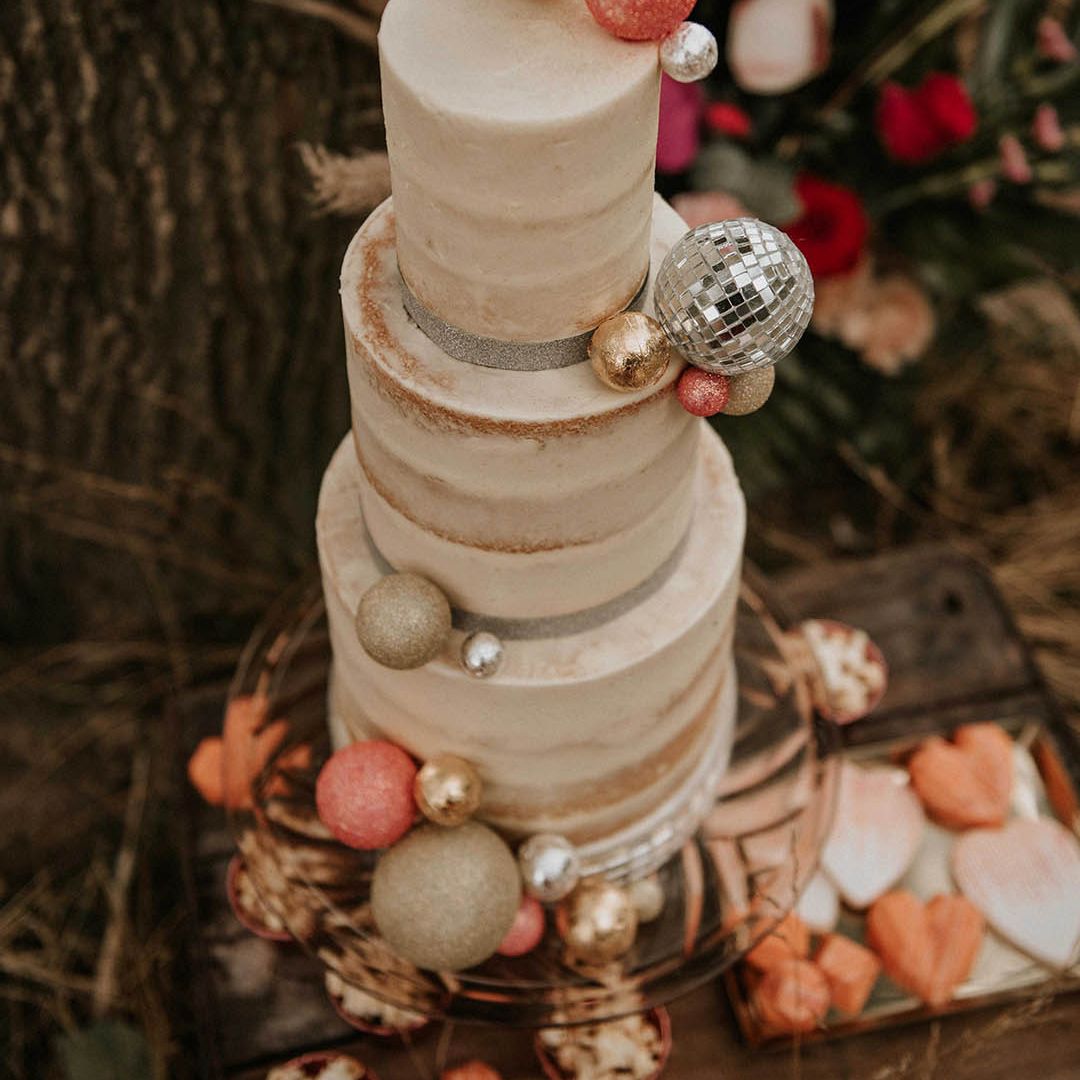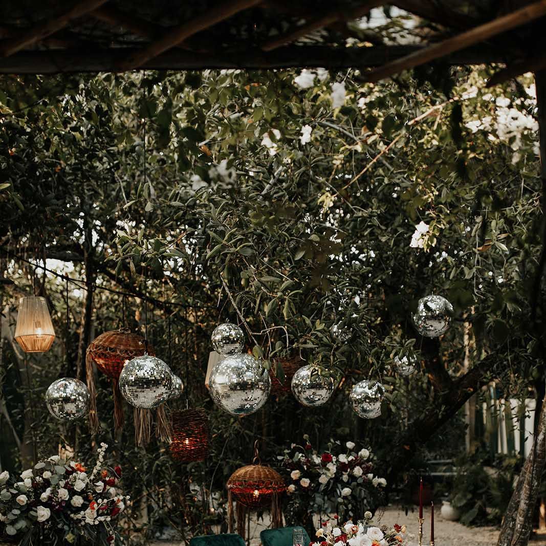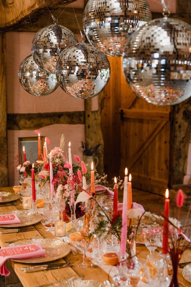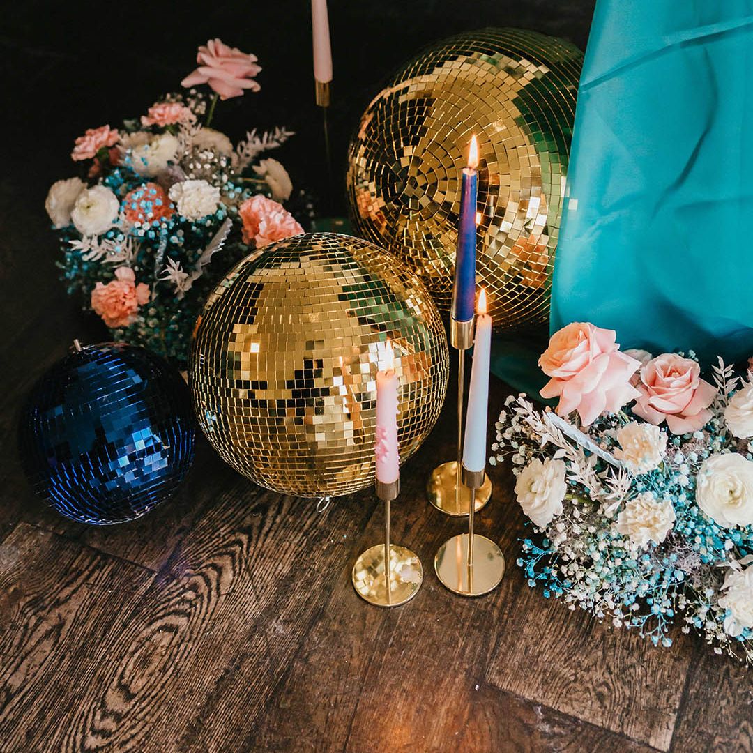 70s Disco Wedding Inspiration with Glitter Balls and Orange Flowers