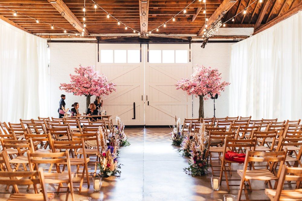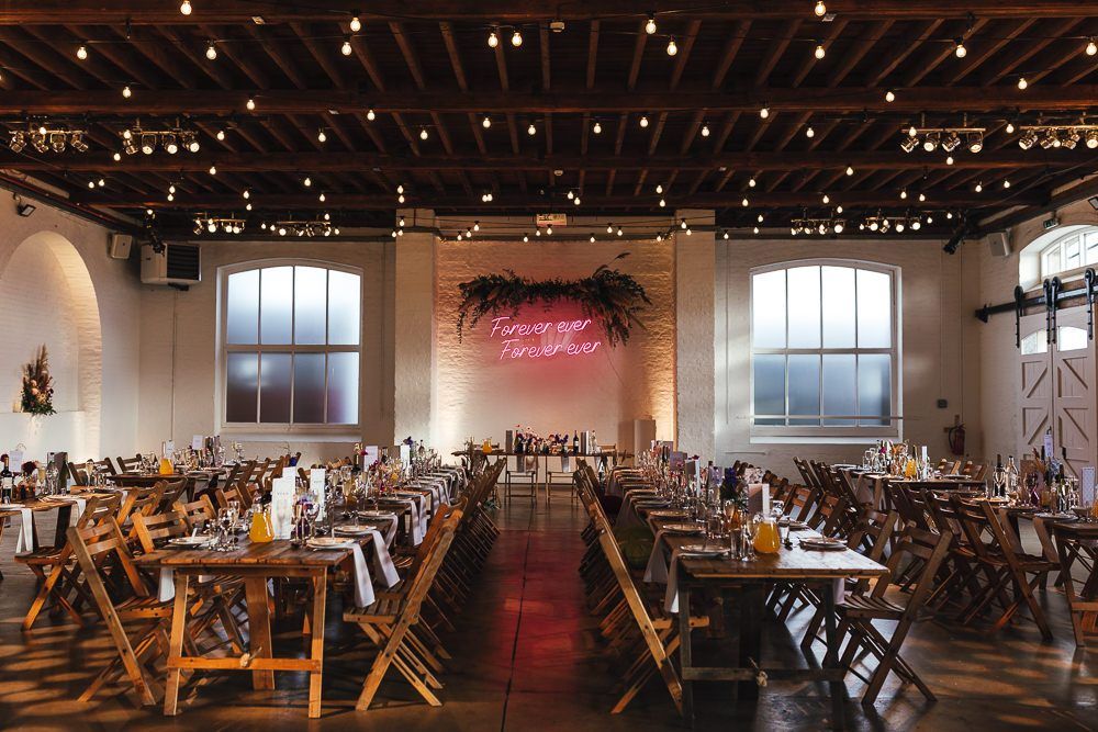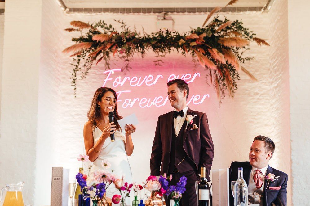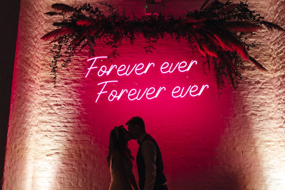 Nothing too formal, keep the ceremony short, let the good times roll. A friend's advice was that guests only care about three things - food, booze and entertainment - so we made sure we nailed those. People still rave about Flo Collective, who kept the dance floor going all night long, and say the curry from Veer was the best wedding food they’ve ever had. Our ace photographer Kirsty MacKenzie loves a pop of colour so she inspired us to incorporate as much as possible with a personalised neon sign(which is now mounted in our hallway), pink blossom trees and vibrant flowers. Night after night sat on the sofa with the laptop, scrolling through Rock My Wedding on Instagram, mainly stalking other people's weddings.