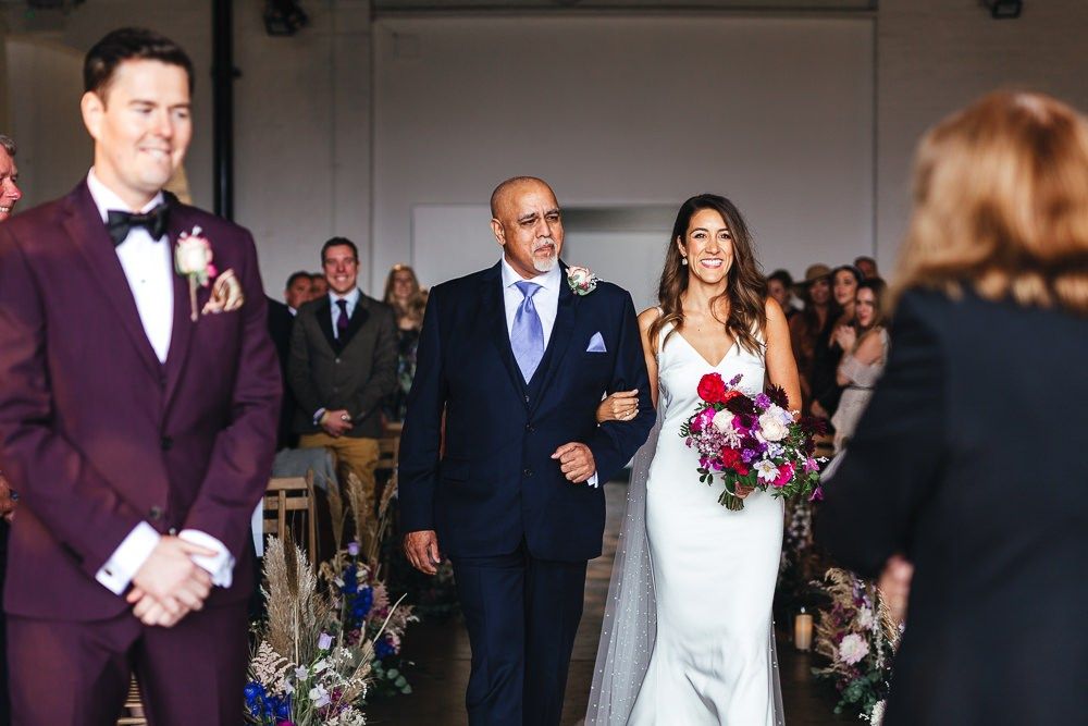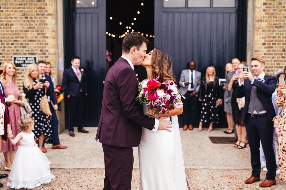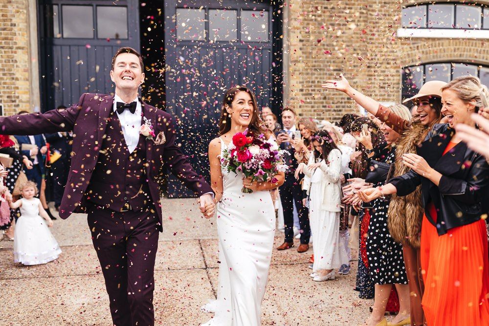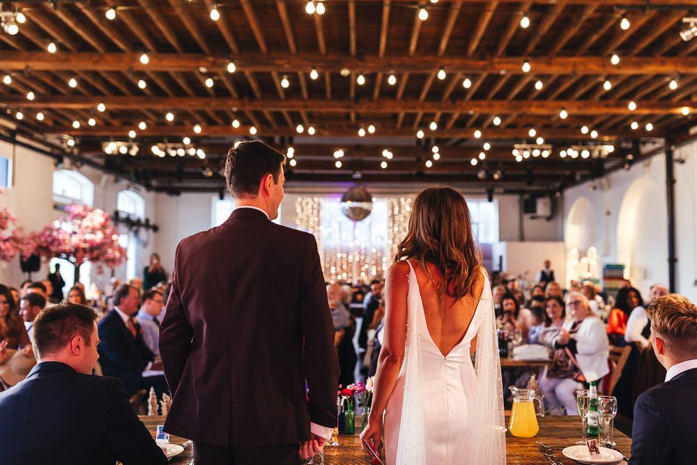 We're not traditional people so an off the shelf wedding was never going to be for us, which is why Trinity Buoy Wharf was the perfect location. Each detail was personal and hand-selected by us. It was incredibly time-consuming and probably more expensive but, with the help of our amazing wedding planners at Occasion Queens and the incredible Sachin at Veer, it resulted in something that was truly ours. On the fourth trip to Hobbycraft in a week, you wonder if you should’ve handed it all off to someone else, but when it all came together, it was worth it. Our favourite moments of the day were just after the first dance, from that point on I could truly relax and let my hair down. Everything had gone to plan so it was time for dancing and drinks with all my favourite people in the world. For Ben, it was Stealing a glimpse as I came down the aisle. It was all real then. We were actually gonna do this.
