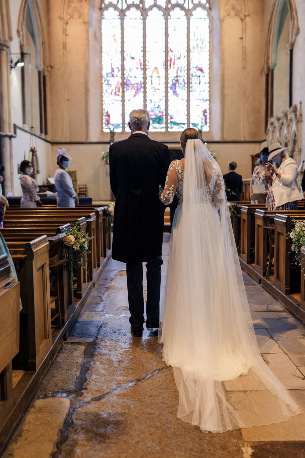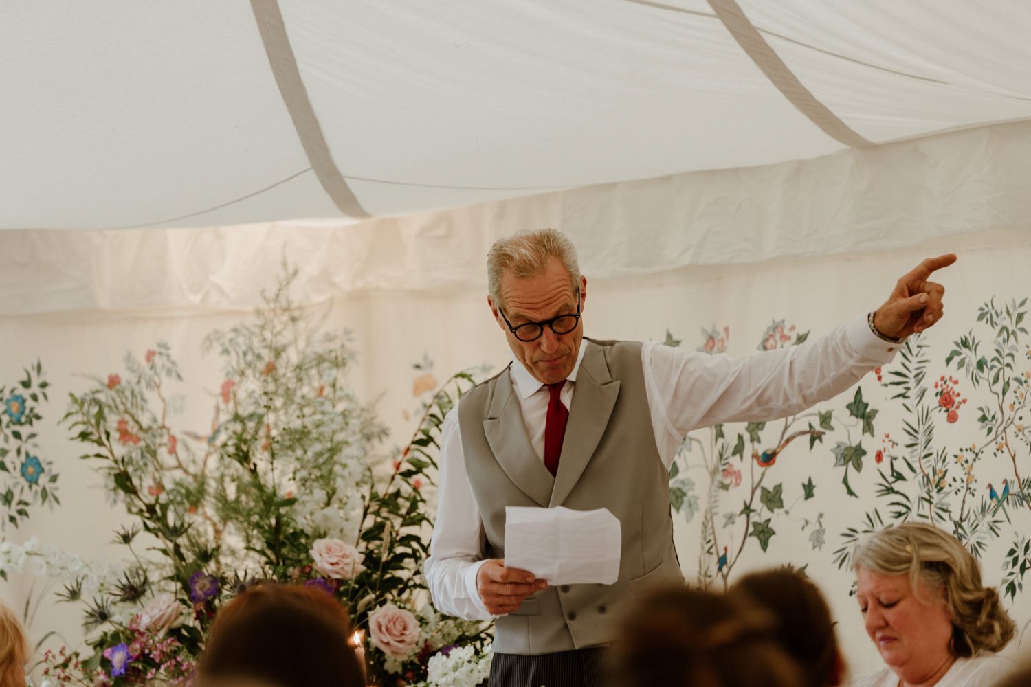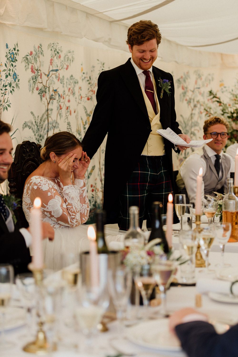 We really just tried to complement the location of Catherine’s family home. The chinoiserie lining of the LPM Bohemia marquee was a great aesthetic starting point that we fleshed out with flower arrangements made by Catherine’s godmother. Childhood friends at Okehurst Design provided some finishing touches in the marquee and bar area with a few key pieces of furniture.