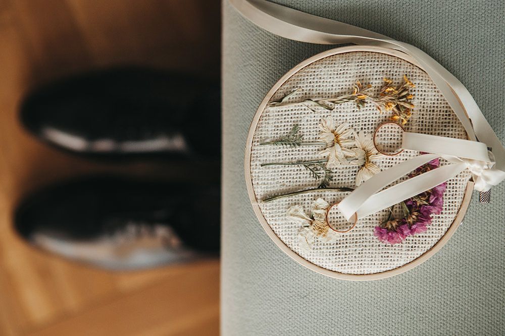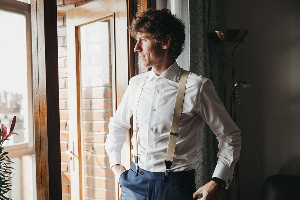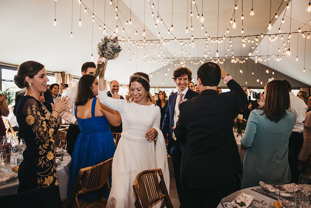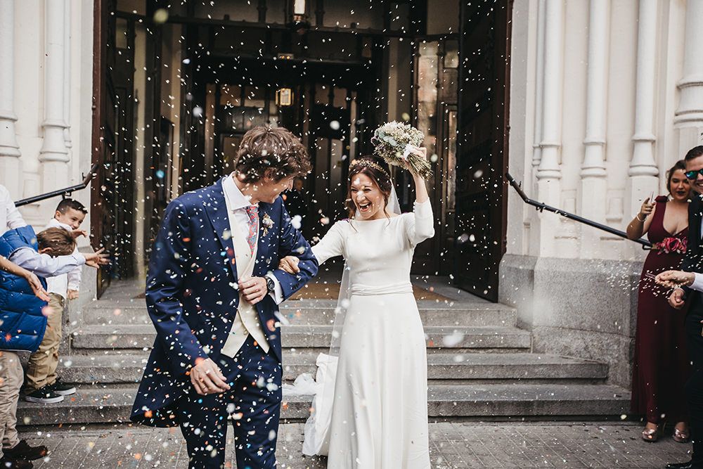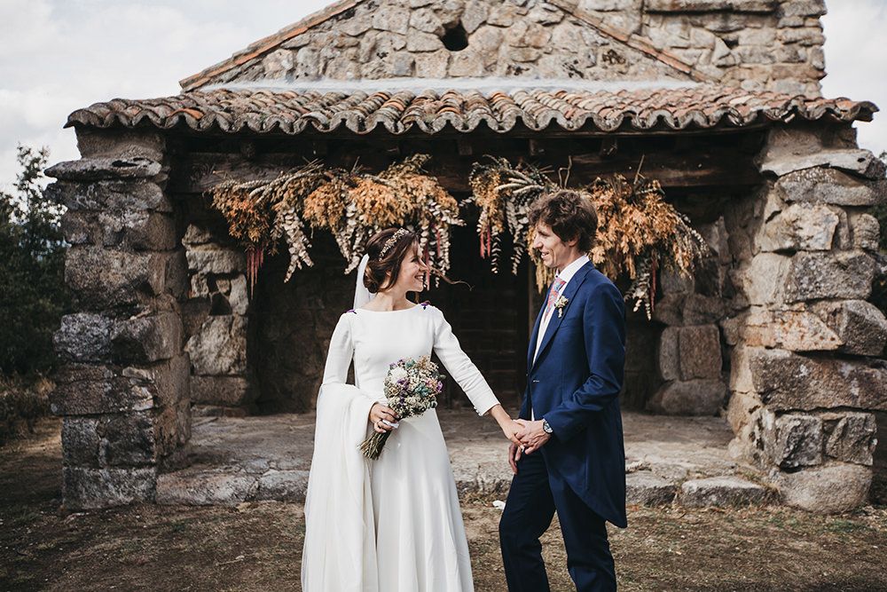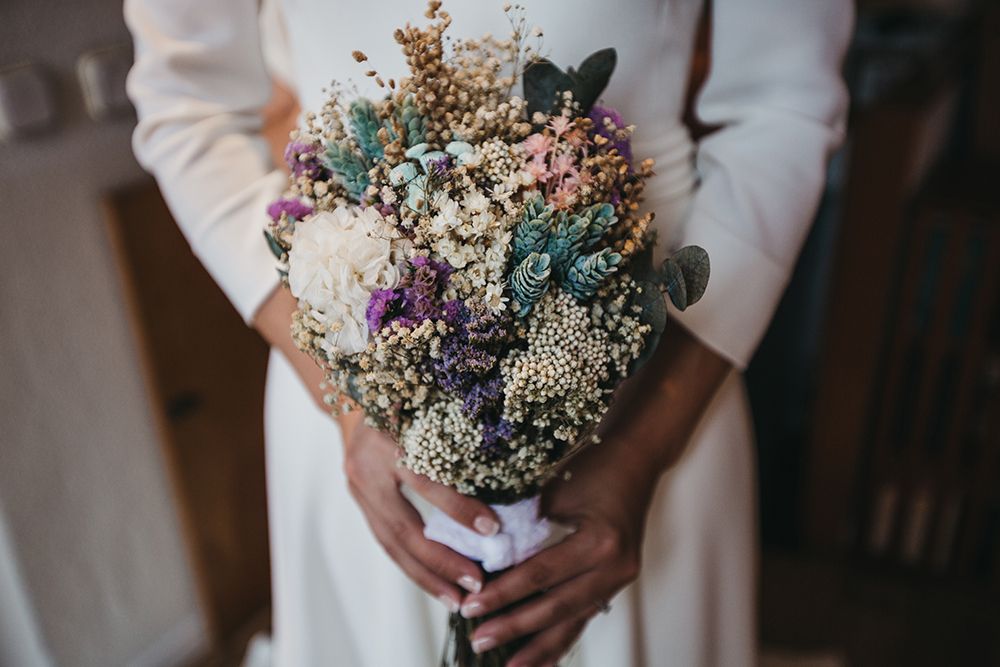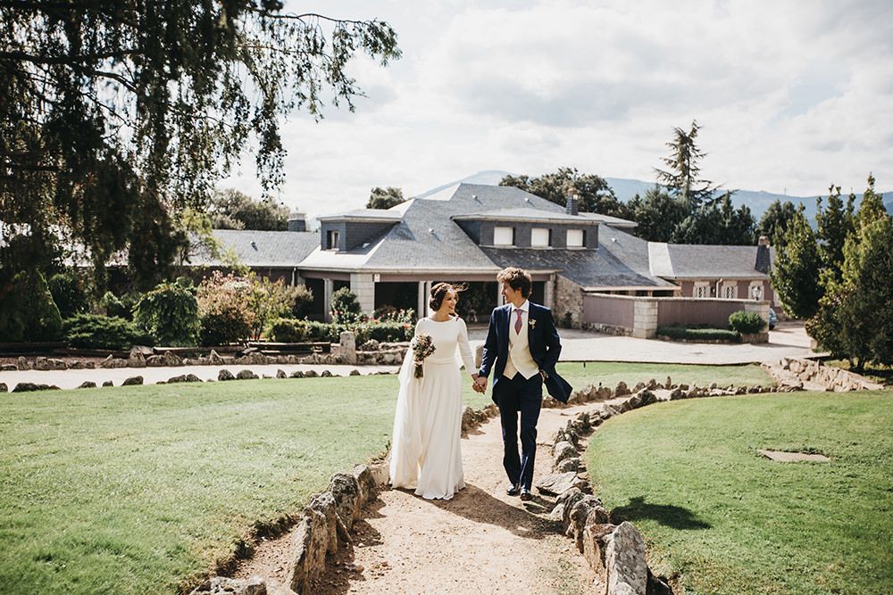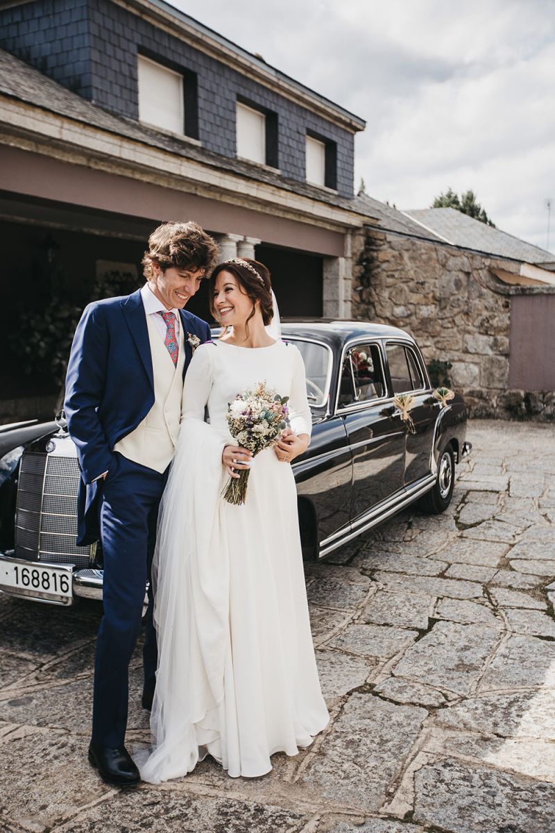 First time I went to Navascues I was fascinated, they were so nice with me and the service was perfect! Their advice, their fabrics, and the embroideries they show me were the key to making such an important decision. I knew what I wanted and I knew that was the place to do it. Since then, the fittings and seeing how the dress was designed … was a dream! The dress was made in a white Crepe Georgette, with a French sleeve, and a V-neckline, surrounded by embroidery with a French knot of violet flowers and green leaves.
