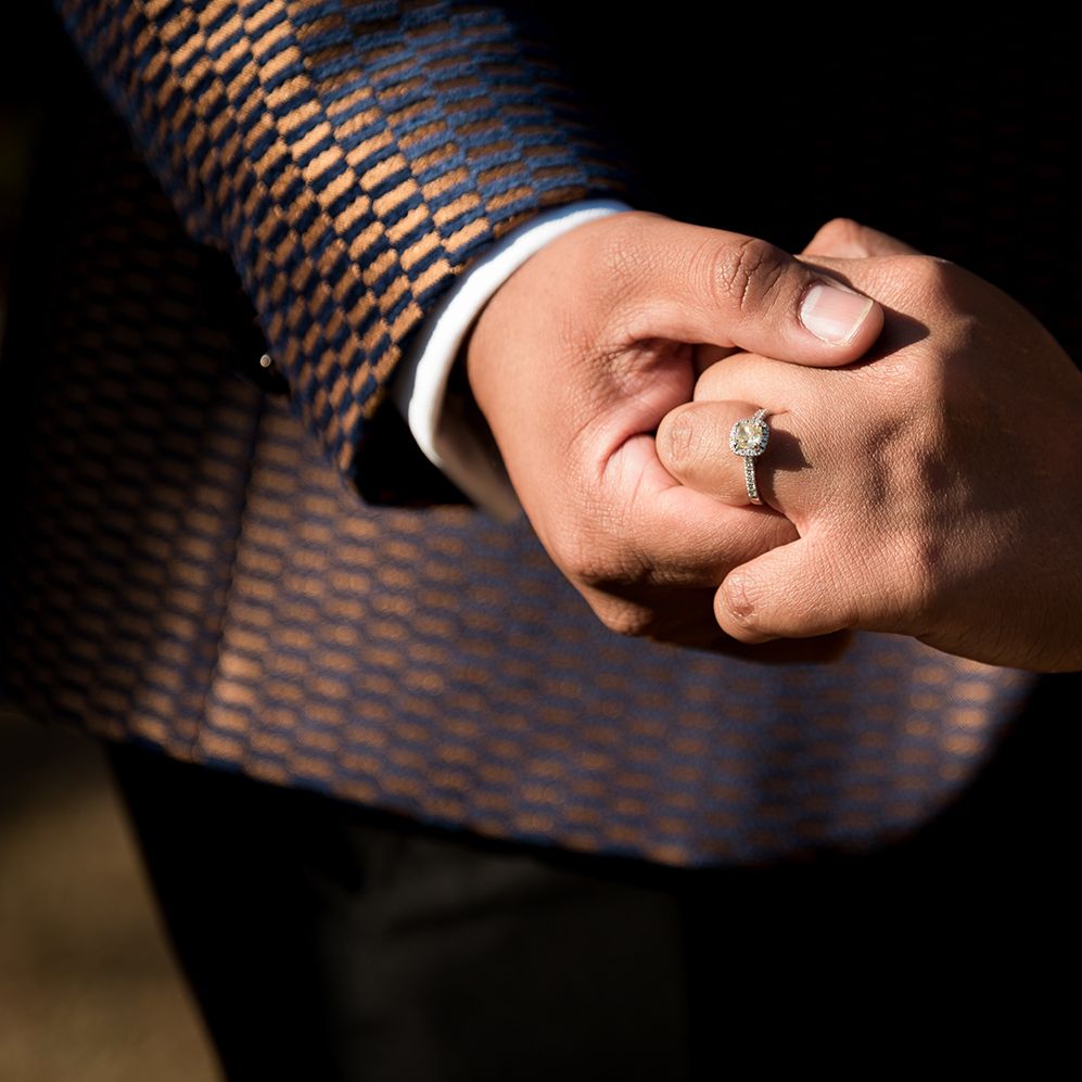 It had just been snowing and Karl made me come back home for a special dinner to celebrate being in our new home for 6months. When I had arrived home, Karl made me enter through the side entrance, which I thought was strange as we never use that door but when I opened the door I was led to the garden by a candle lit pathway under a canopy of fairy lights. It was so magical! As I walked down the candle lit pathway there were roses laid on the ground and I heard Jagged Edge's song 'let's get married', my heart stopped and I froze! I looked up to see Karl standing in the middle of the garden and telling me to walk over to him because I was in so much shock and froze still. I somehow managed to walk over to him with my heels getting stuck in the grass and then Karl told me how much he loved me and would always be there for me and then went down on one knee! I remember panicking and asking him whether he had asked my parents first which he already had! So instantly, I obviously said yes! But there's another layer to this wonderful night, after being amazed by the new rock on my finger... That is fancy yellow by the way, I was led into our conservatory, which Karl had decorated with red rose petals on the floor, candle lit dinner, and a chandelier of balloons which had monumental pictures from our relationship hanging off. It was incredibly decorated and there was just so much attention to detail, with a fairy light back drop, hard rock café cocktail glasses from our first ever Valentine's lunch--Karl even made the exact same dinner we had from the Hard Rock Café. After dinner we went into the living room and Karl had created another layer to his magical night there were candles all across the floor under the tv and Karl had created a video montage of our best bits of our relationship so far! It truly was the best night of my life. It was so special and truly magical!