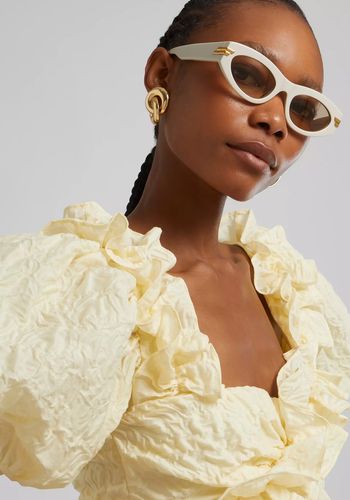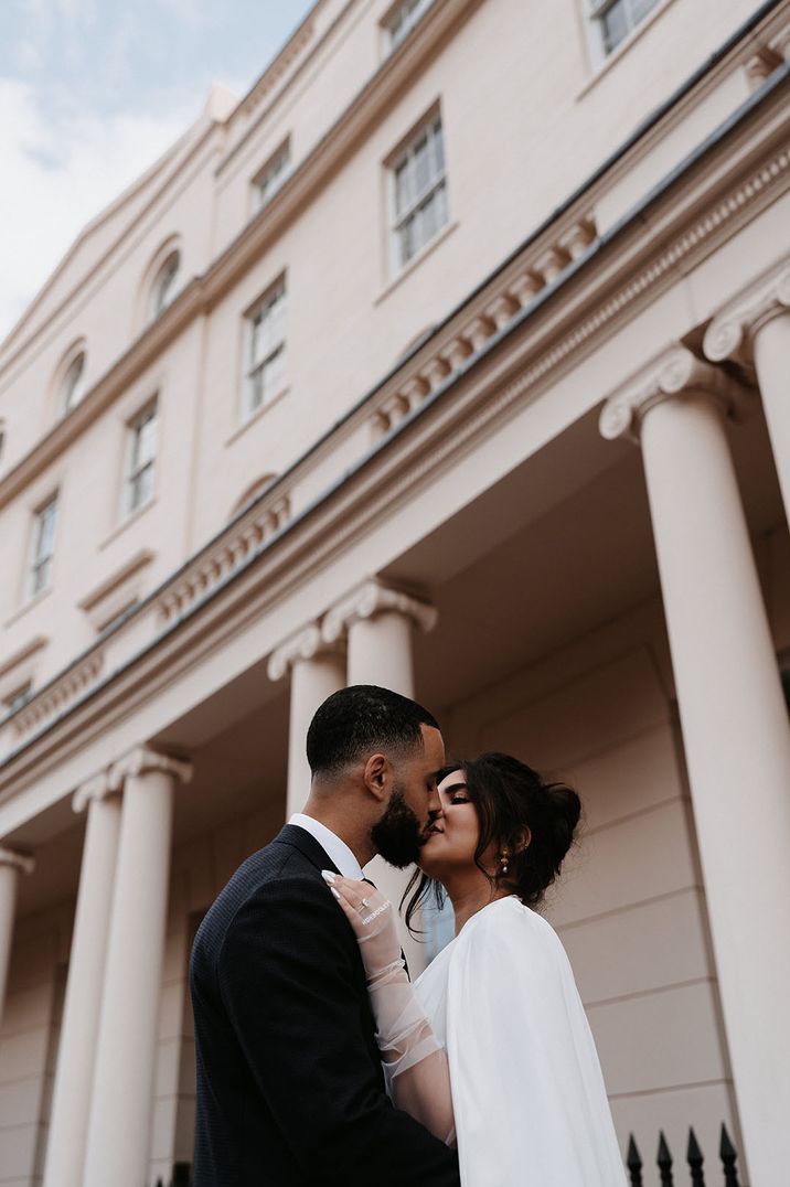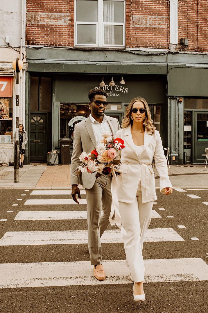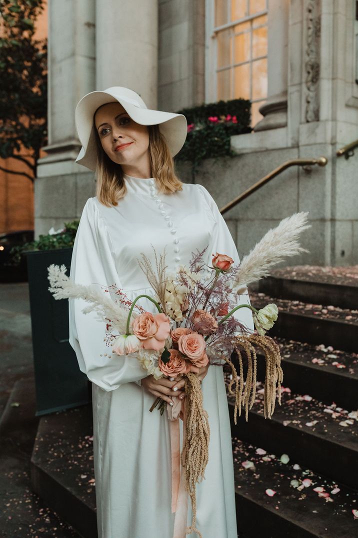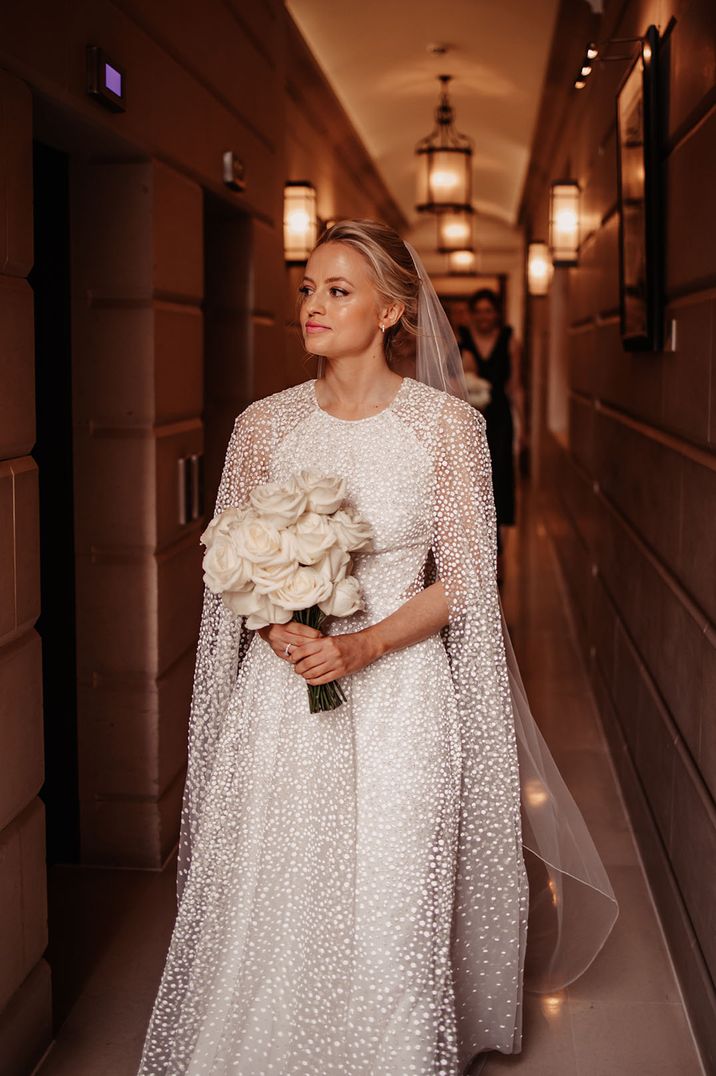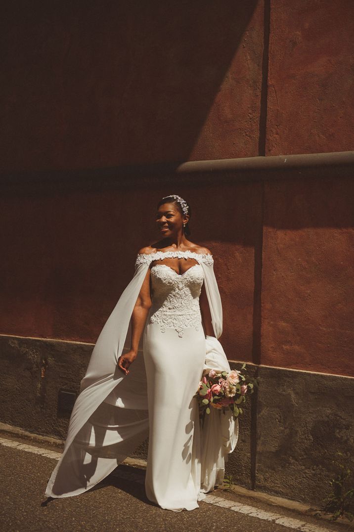 Bride wearing pearl bridal sunglasses for Parisian elopement wedding