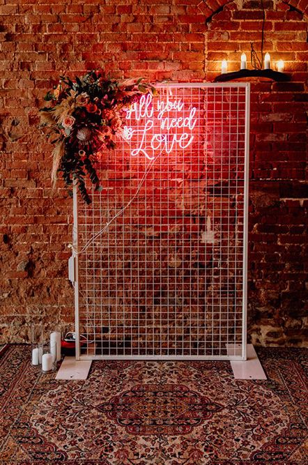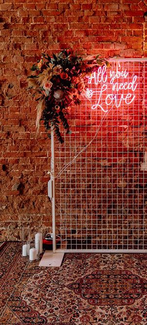 Customised Neon Sign With Bridal Cape For Industrial Wedding