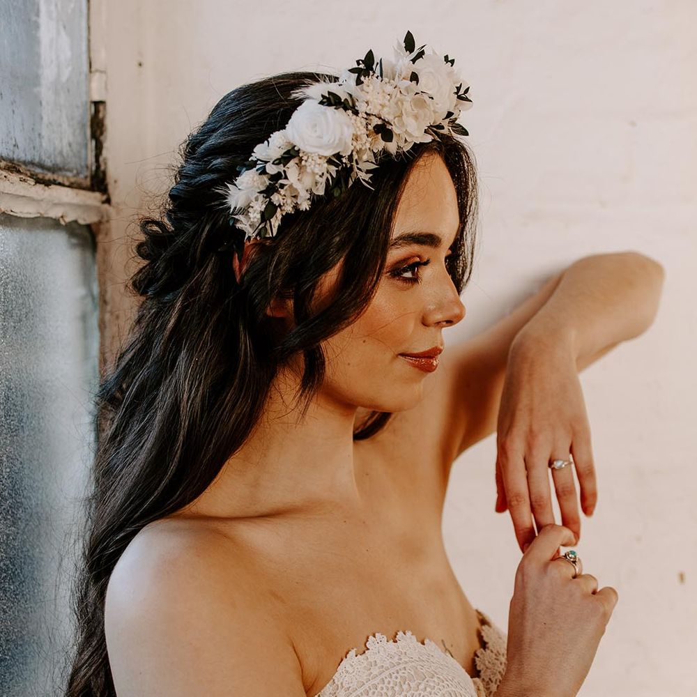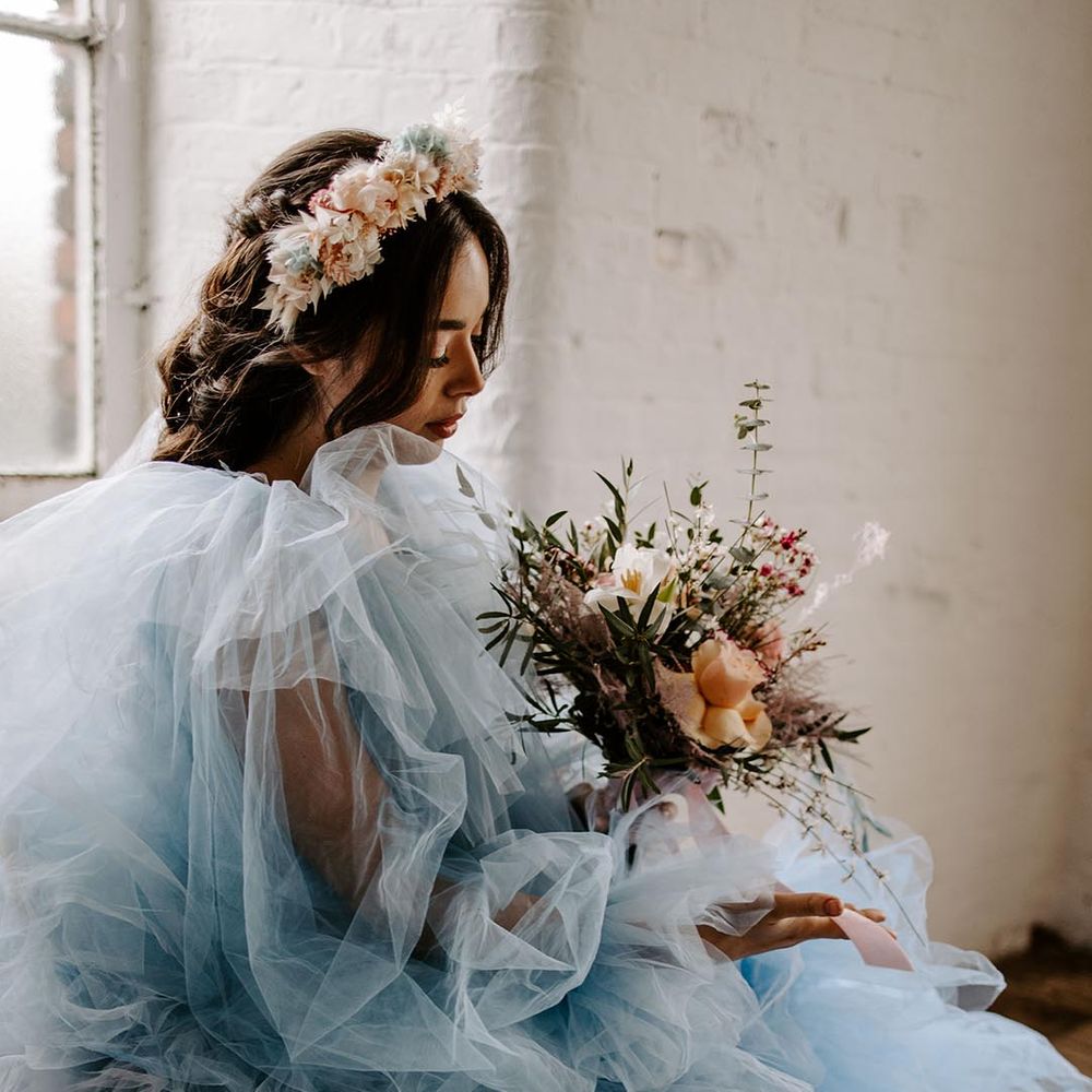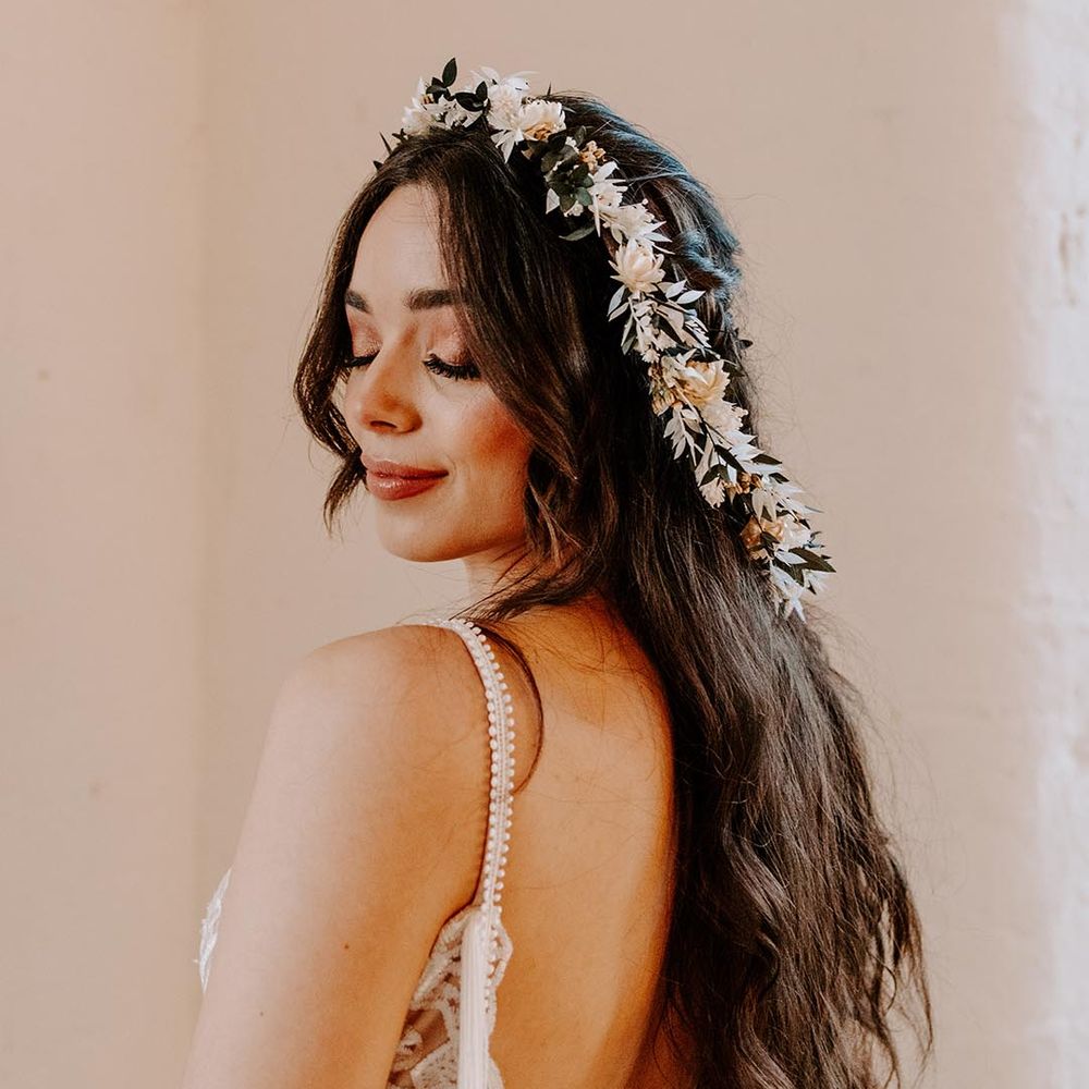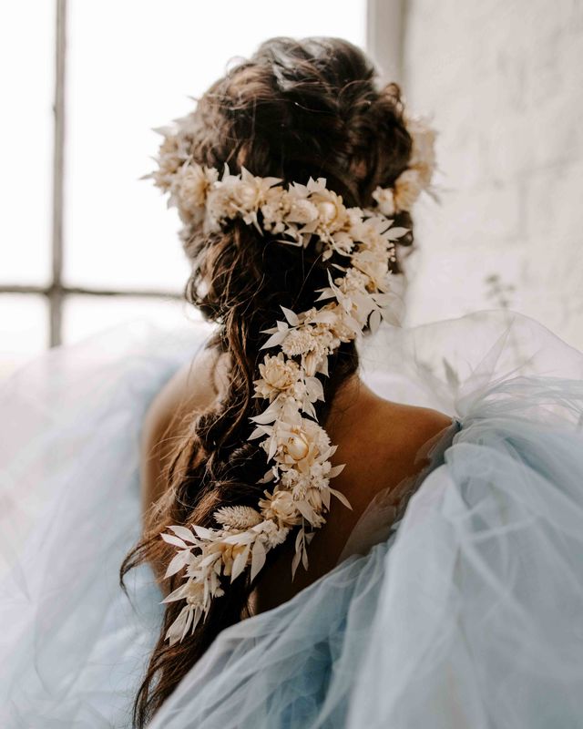 I wanted to create a beautiful boho minmalist inspiration shoot to introduce my new Luna and Wild 2022 bridal collection. The shoot took place at Hallam Mill in Stockport. Allowing the natural daylight to flood through the windows and highlight the bridal accessories.