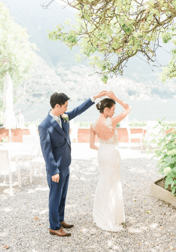 Chinese Tea Ceremony Wedding with Floral Arch in Lake Como
