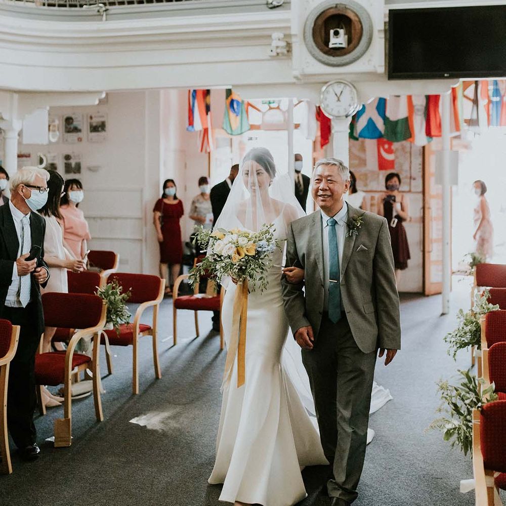 We decided to go with the colour scheme of yellow and blue as the groom's surname is ‘Huang' which means 'yellow' in mandarin. His first name is ‘Yang', which means 'ocean' hence the blue.