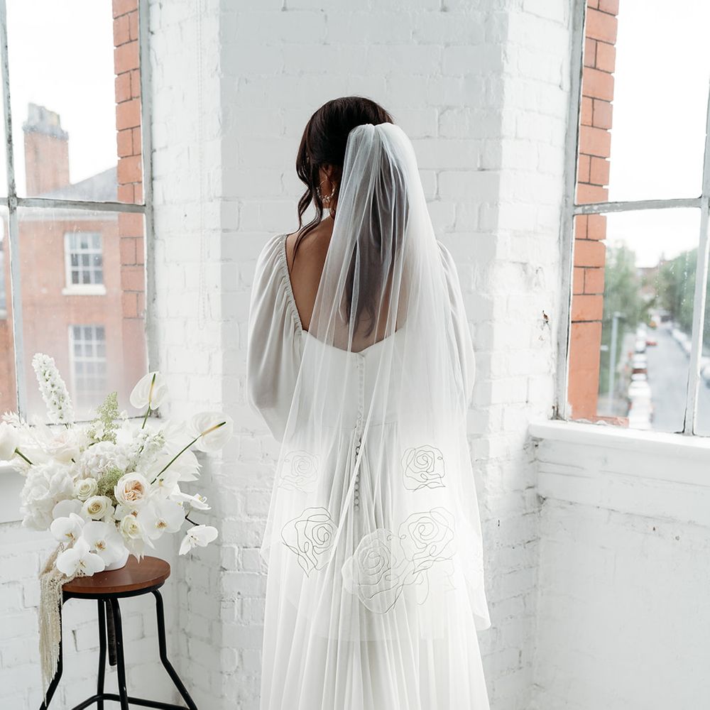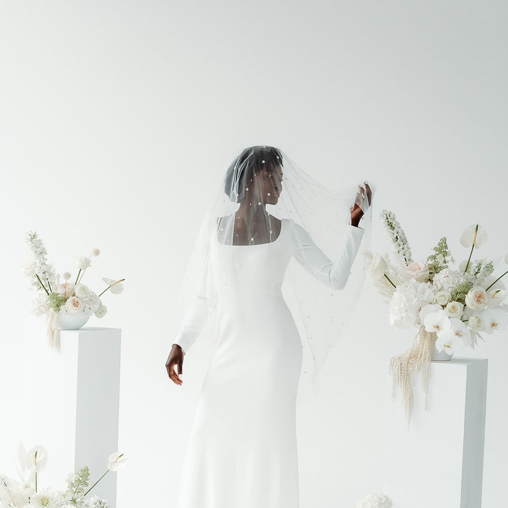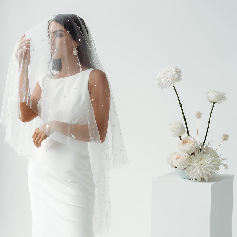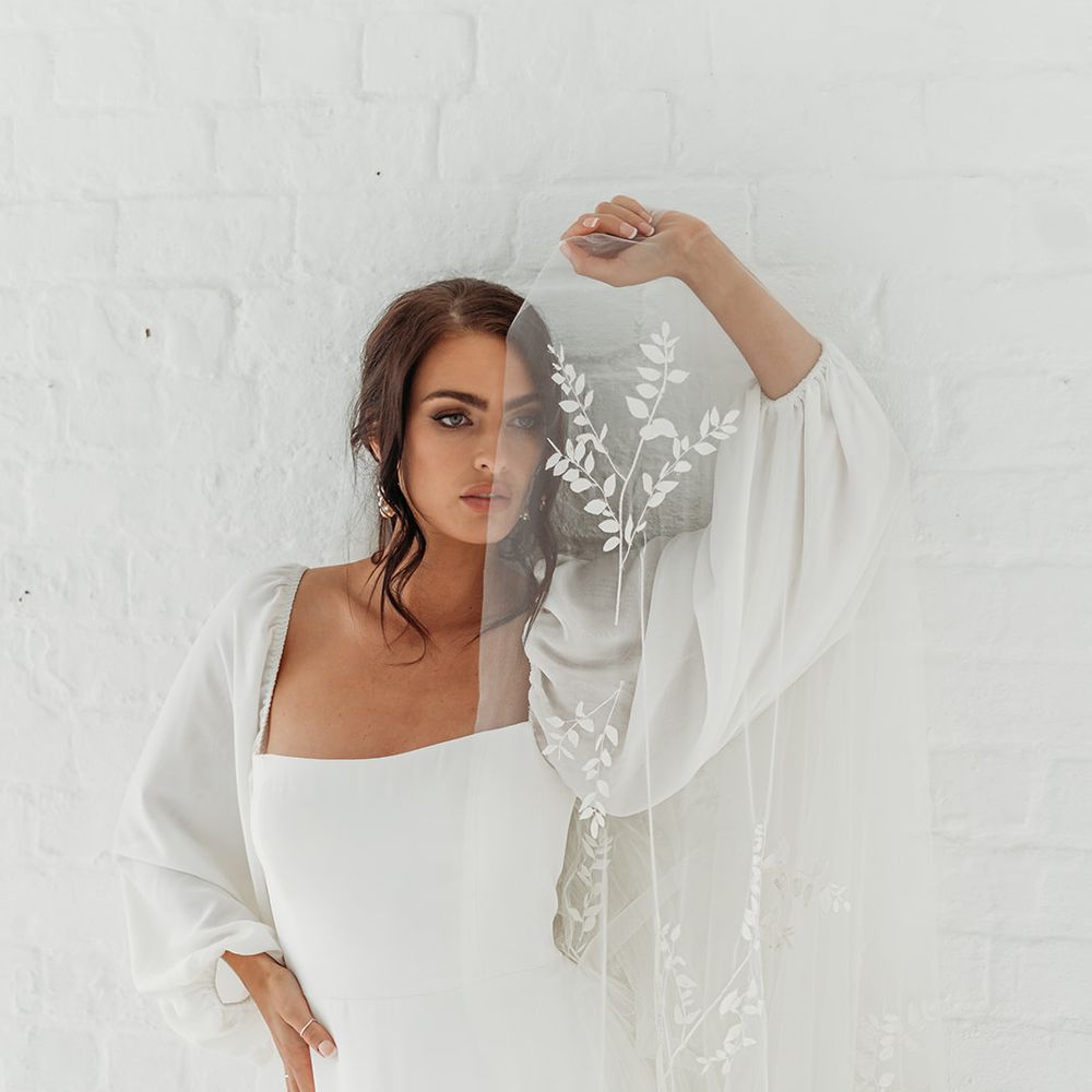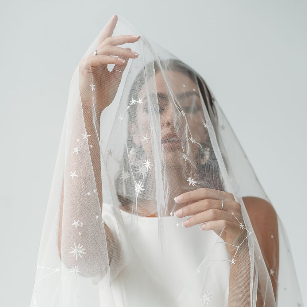 Aspirational photoshoot for Rebecca Anne's rebrand with an editorial aesthetic - elevating revolutionary embroidered veils with a feminine yet minimal, modern narrative