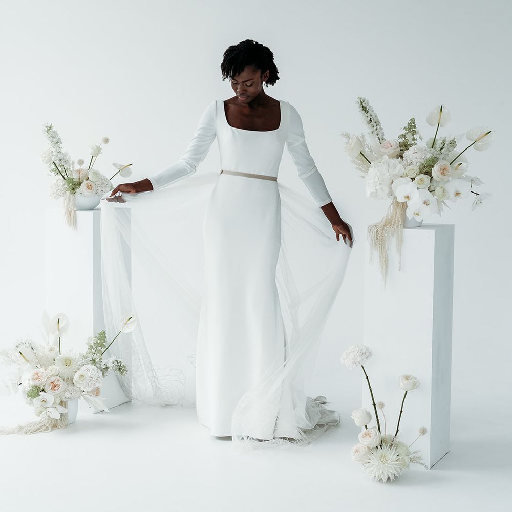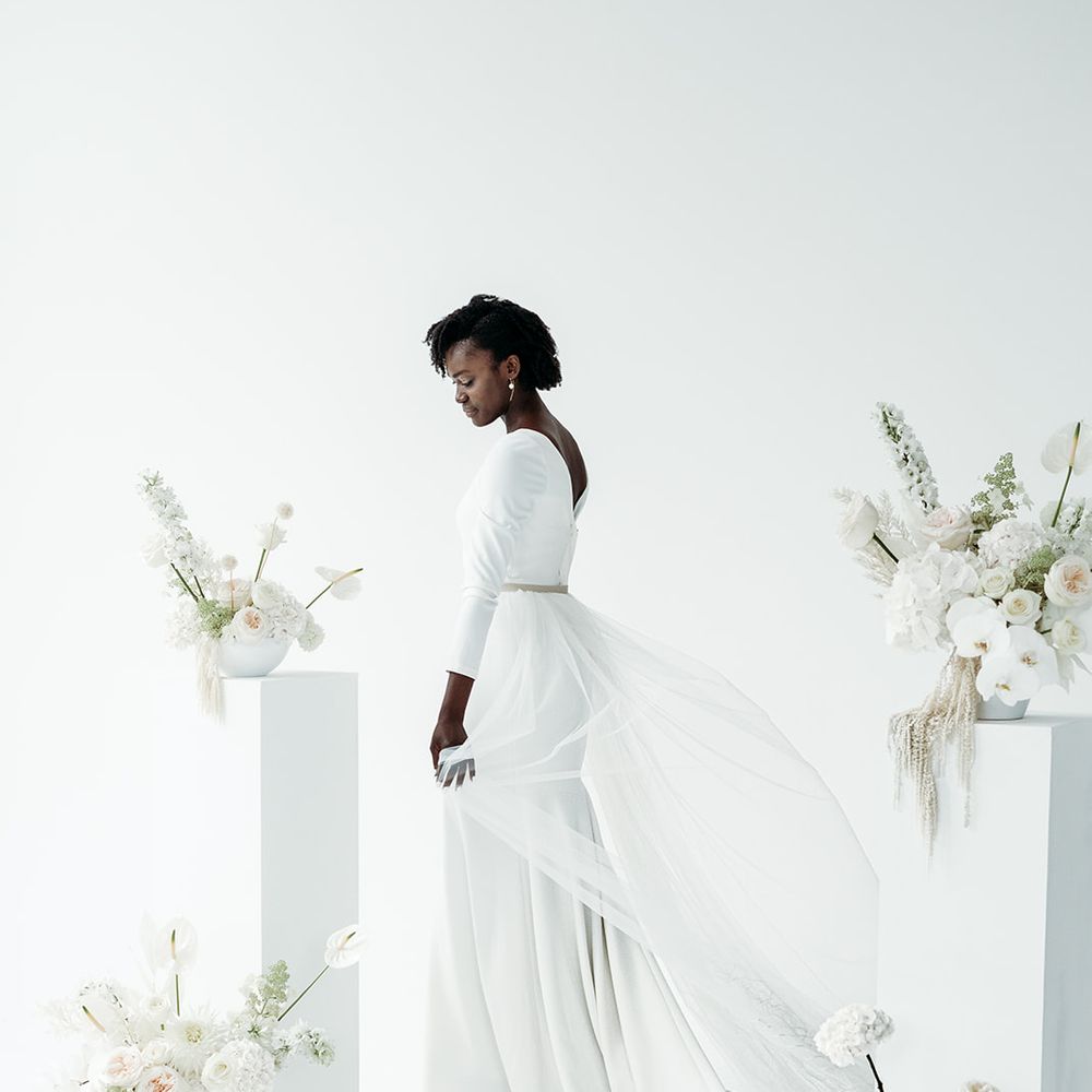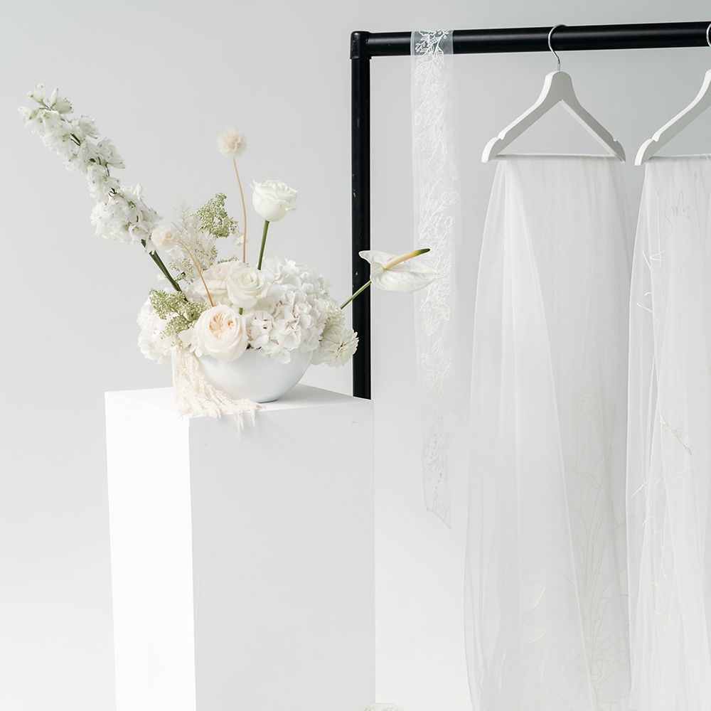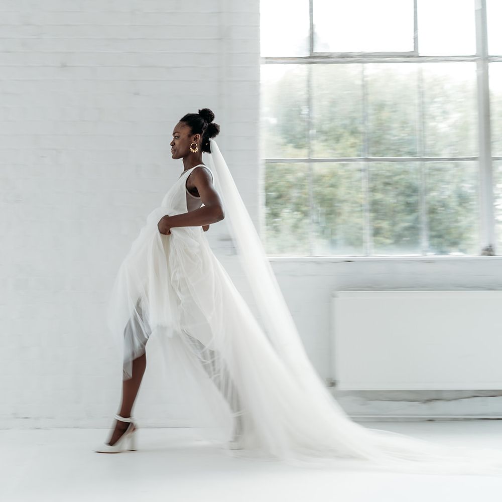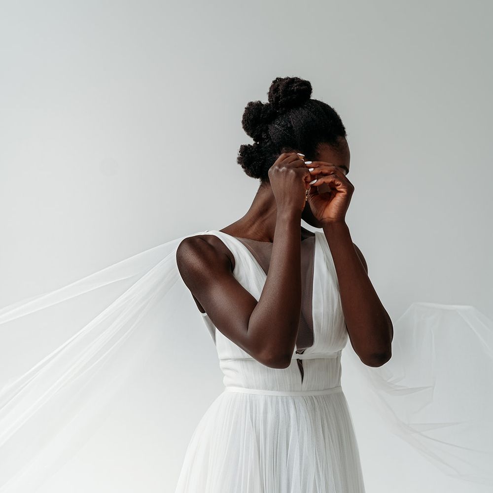 Aspirational photoshoot for Rebecca Anne's rebrand with an editorial aesthetic - elevating revolutionary embroidered veils with a feminine yet minimal, modern narrative