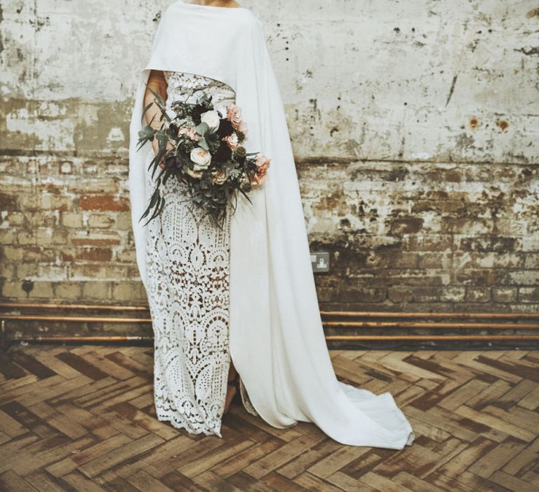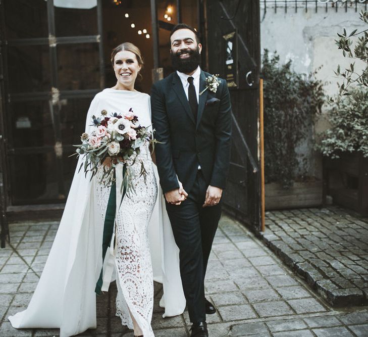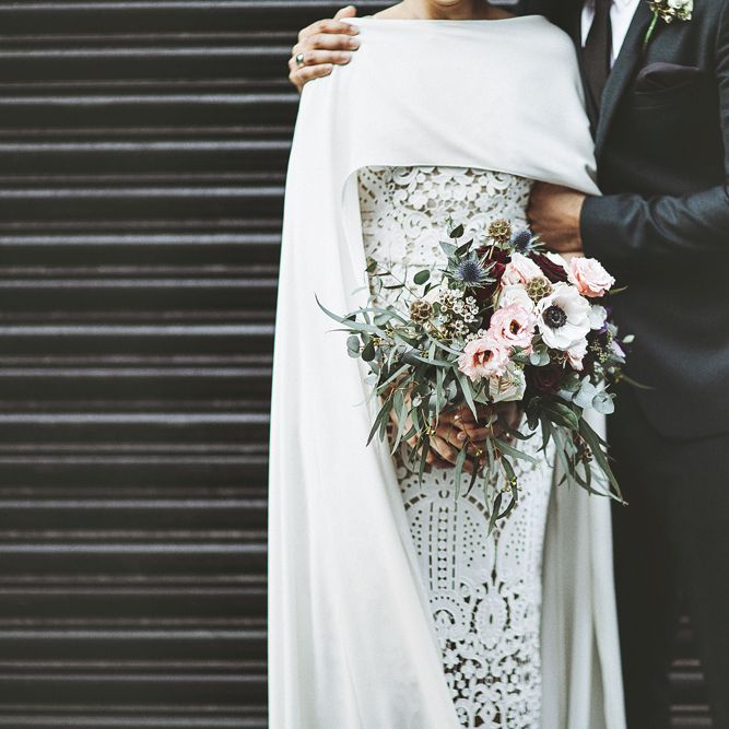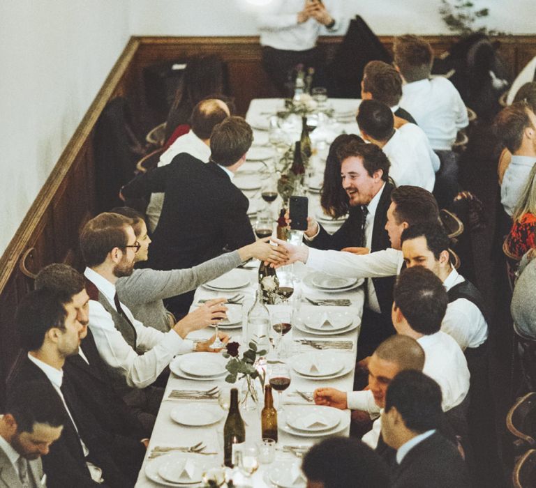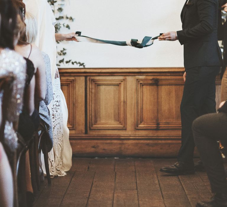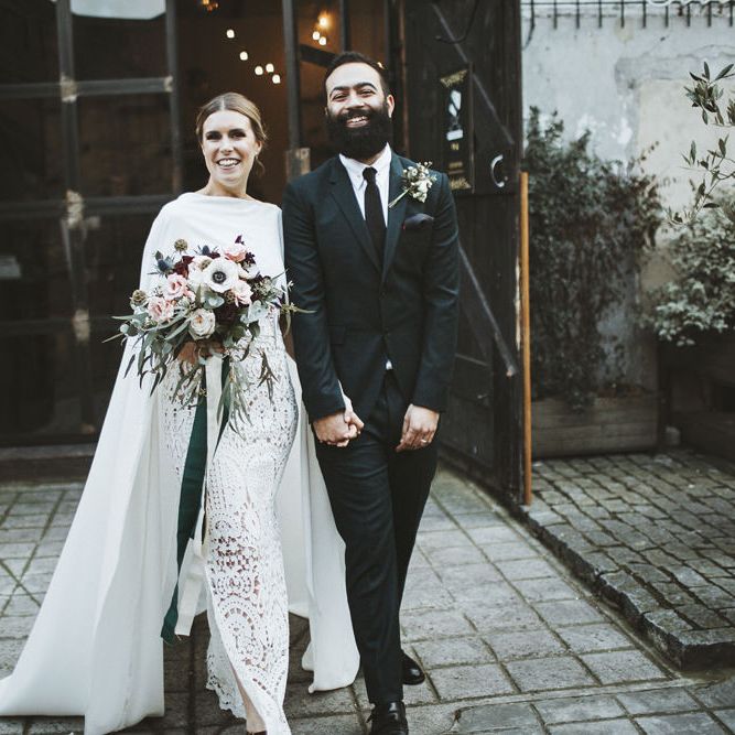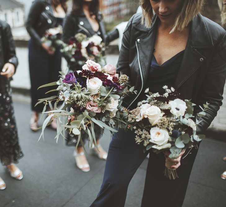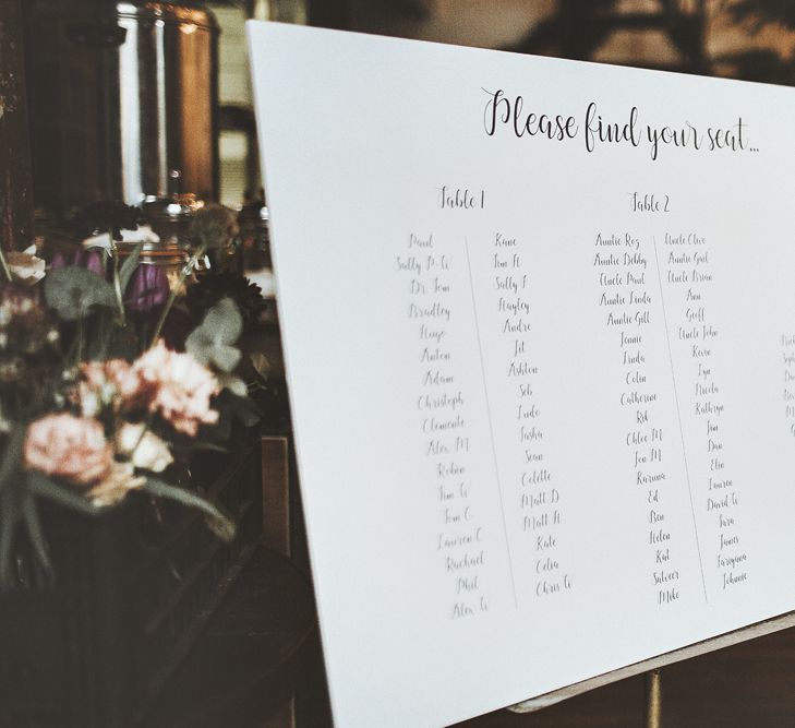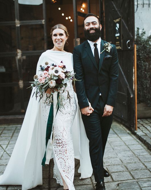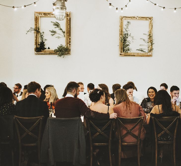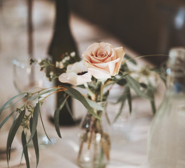 We wanted our day to be cosy, relaxed and super intimate. The venue has so much character that we just went from there. As it was a December wedding, we went for deep jewel colours with a bit of sparkle, and the rest of the styling just fell together from that. We both knew that we wanted lots of greenery and warm lighting. We suggested an asymmetrical arch where we were having our ceremony and Lizzie ran with the idea, creating an incredible eucalyptus arch which really set the scene.