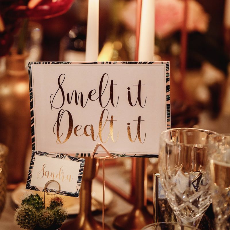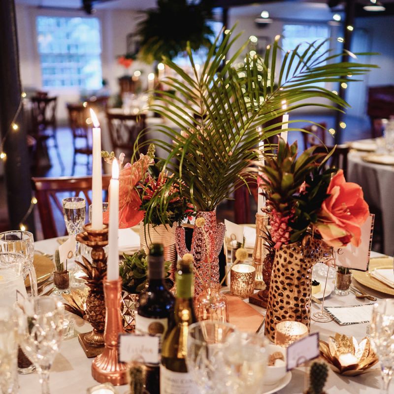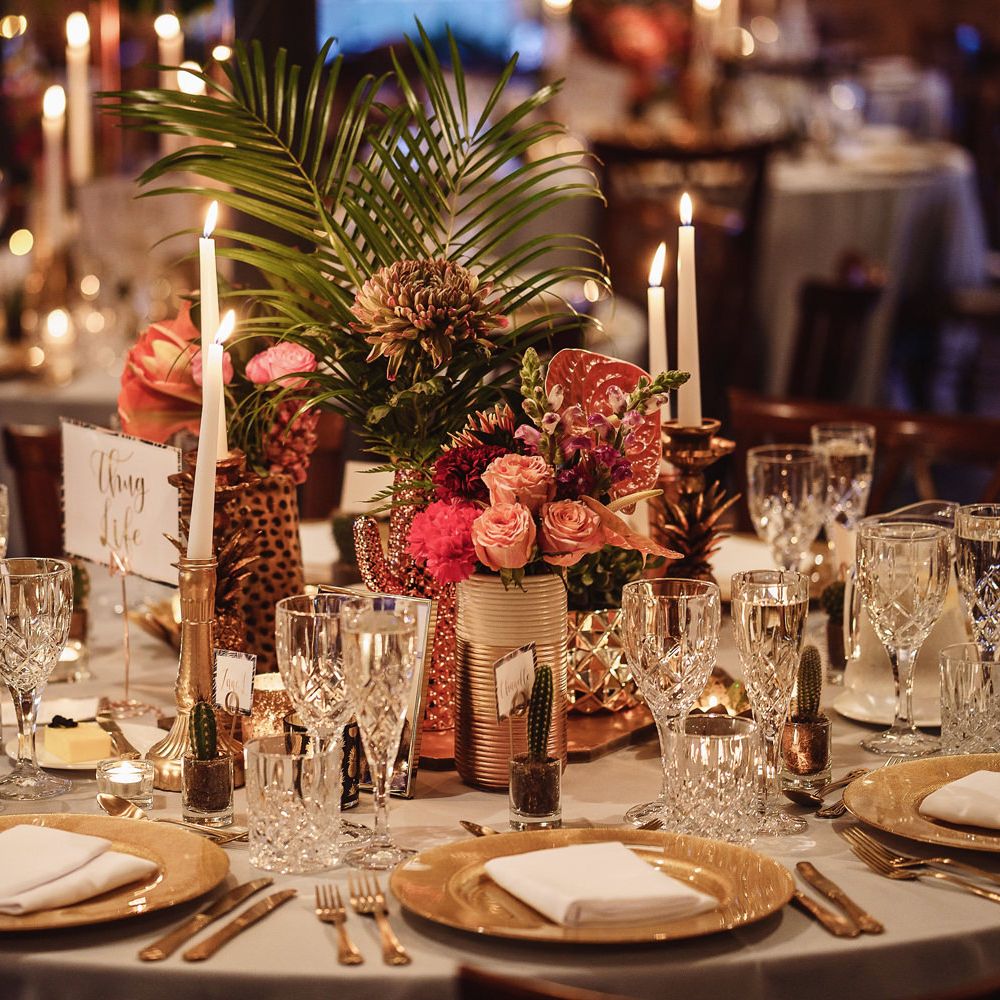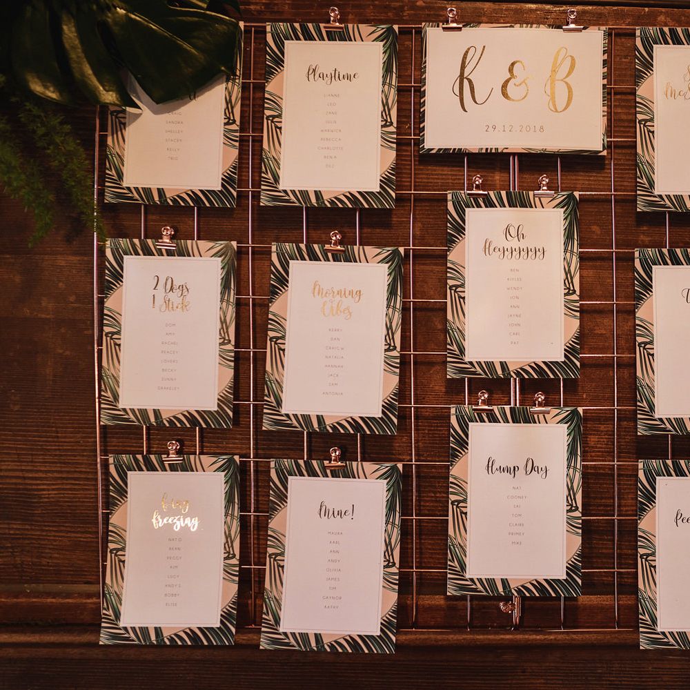 The vibe was relaxed but..... "GET READY FOR THE PARTY"! Our friends know us for our "eclectic" sense of style and our love for a good party so we felt it was important our wedding reflected that. Kiylee and I have a quirky sense of style and we wanted the wedding to resemble our house which is full of huge plants, cactus's, succulents and miss matching ornaments in golds, brass, copper. Essentially we both like different things that are equally random but once you throw everything together it kind of works.