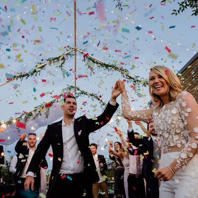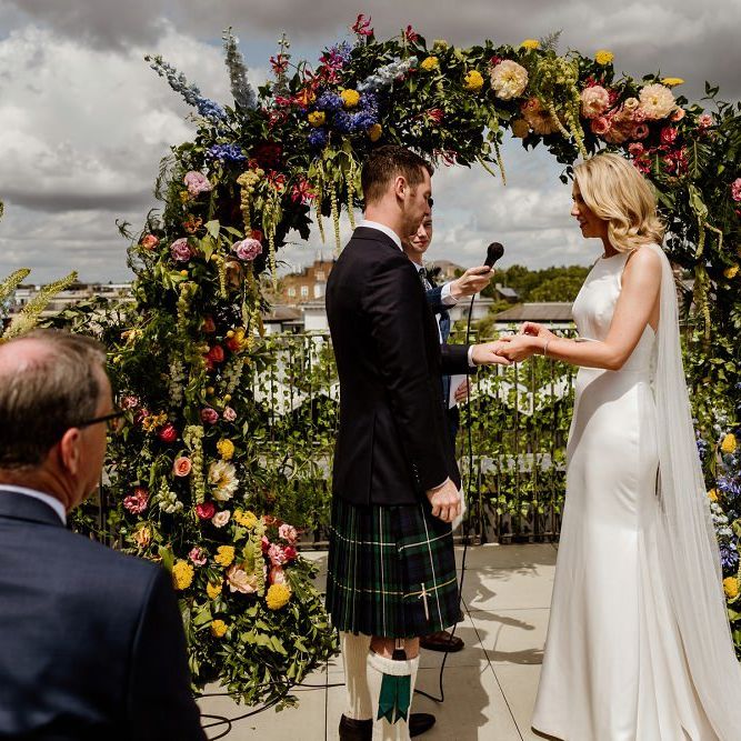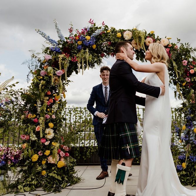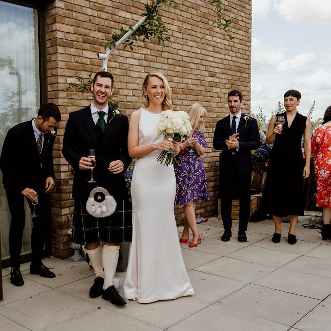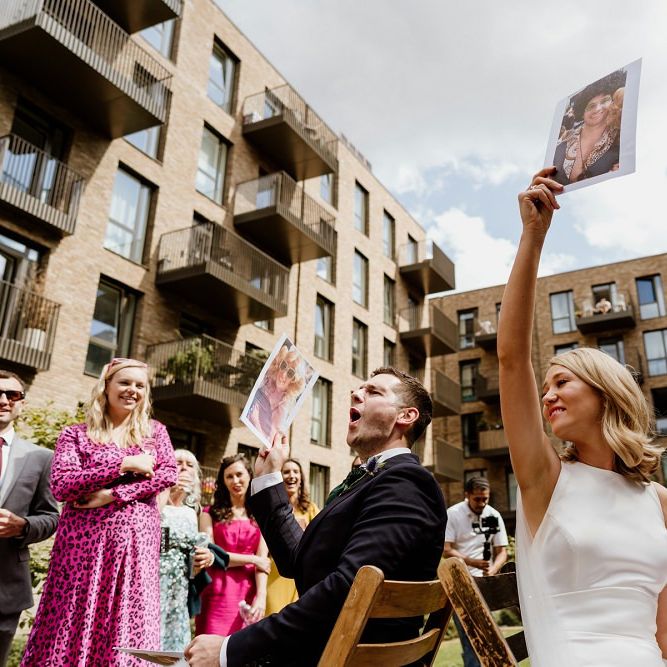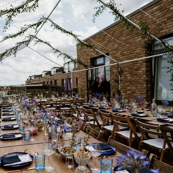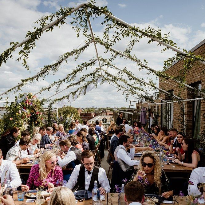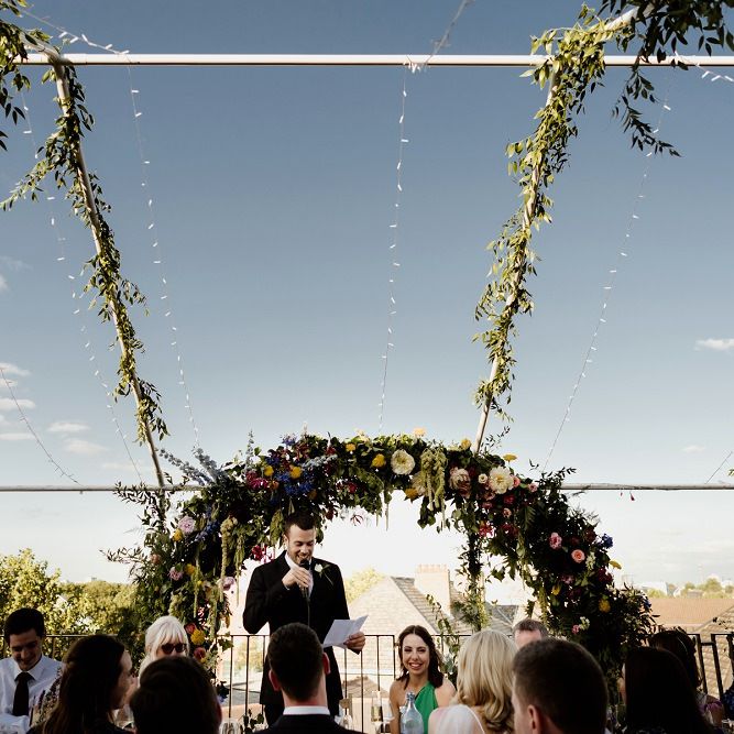 We hosted our wedding on our private rooftop terrace in West London which is pretty unusual! We managed to fit 60 guests (and 12 event staff) into our flat without it ever feeling too cramped. The day successfully moved from ceremony to reception, from fun games to four-course meal and, finally, from cocktail party to disco. We worked tirelessly but being able to plan and design every aspect of the day made it all worth it. Having our closest family and friends celebrate with us in our own home was incredibly special and unforgettable for both us and our guests. Malcolm and I weren’t really into the pressure of having a traditional first dance so we thought we’d surprise our guests with an Irish Dancing Flash-Mob. We came out strutting to Beyoncé and Jay-Z ‘Crazy in Love’. After 15 seconds the music stopped and two Irish dancers dressed as ‘event staff’ broke into the dance floor and started Irish dancing. They then got all our guests to take part in a Céilí which went down a storm. Sharon captured the reaction of our guests perfectly when the Irish Dancing started - they didn’t have a clue what was going on.