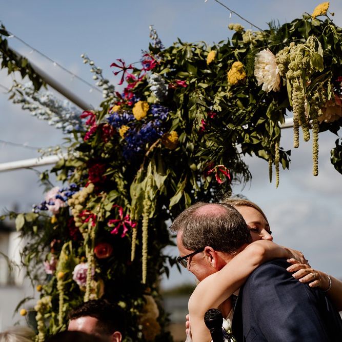 In one word? Floral-chic-whimsical-fabulous-rave. We wanted to completely transform our apartment to make it feel like a venue, but above all, we wanted the day to be personal to us. That’s why my younger brother was the celebrant, we had readings from family, songs and poems from friends and a bride and groom speech. As we only had our closest friends and family present, it was incredibly emotional and the personal vibe was maintained throughout the day. We also wanted it to be fun, relaxed and boozy too – we love a good party so unlimited shots was a must!