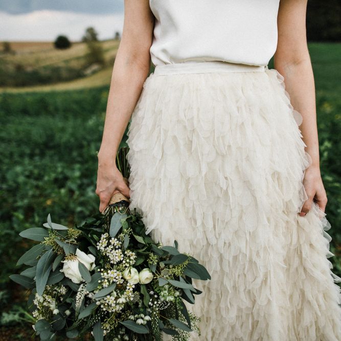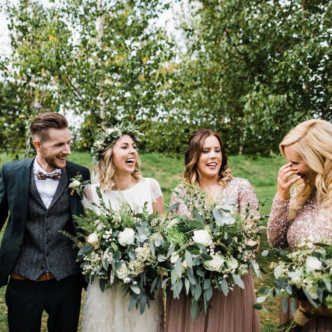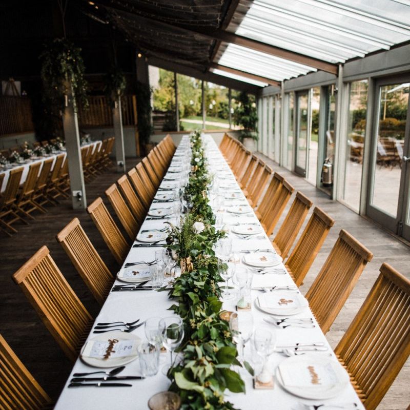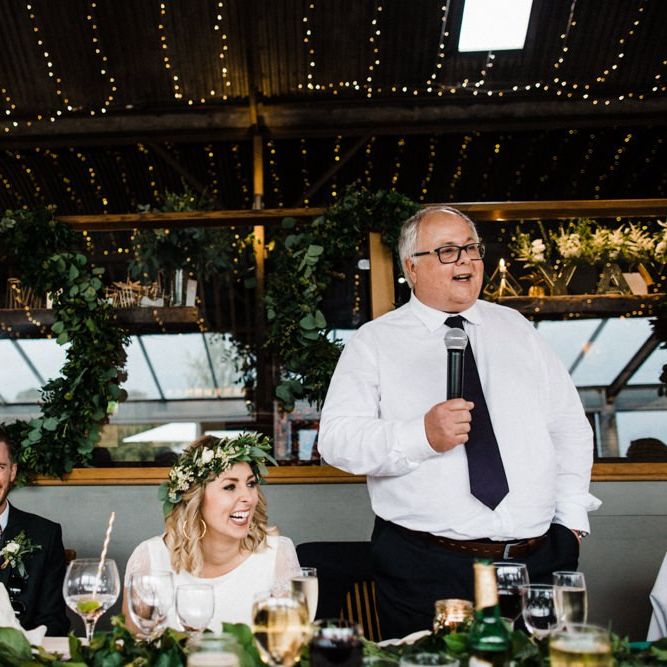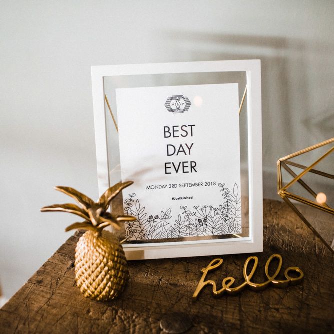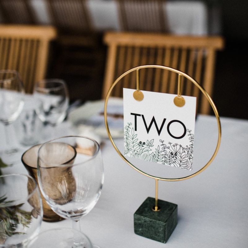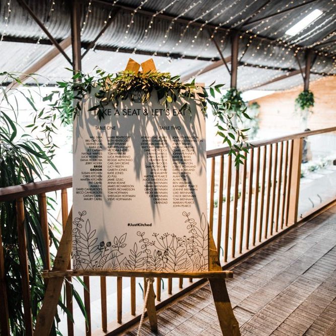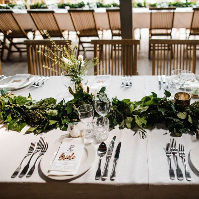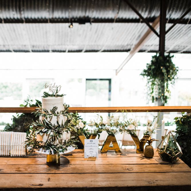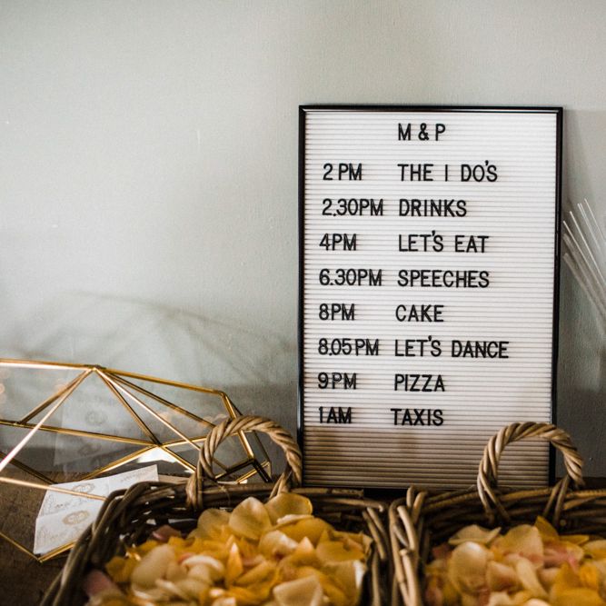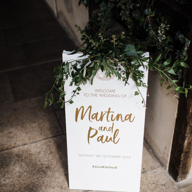The vibe was super chilled and laid back - Paul has a big family and we didn't want the wedding to be too formal. As for the styling - the colour scheme was green, white and gold with quirky touches such as pineapple plant stands and cactus vases, a handmade A-Board sign built by Paul's very hands, a sweet table and marshmallows and sparklers for the fire pits after dark. For the flowers, we kept it simple with mainly eucalyptus and wax flowers. All of the stationery and design bits were all done by Martina as she is a graphic designer and runs a stationery business.