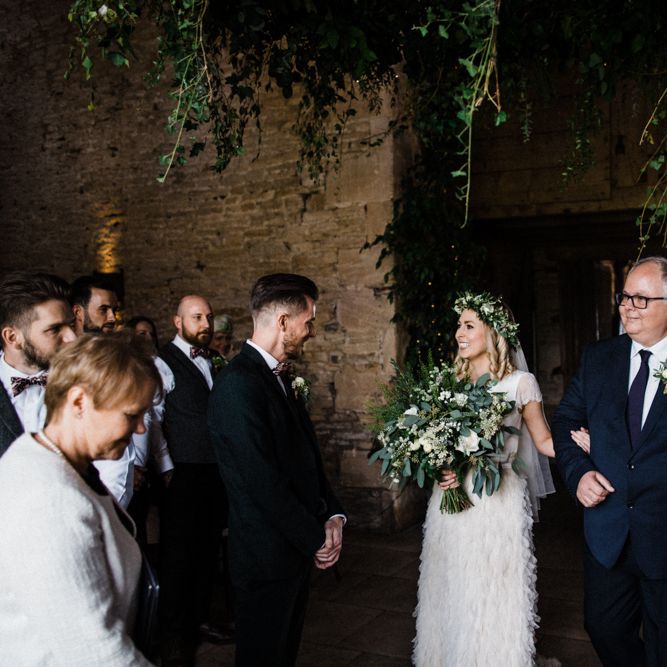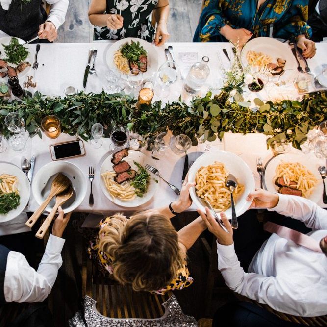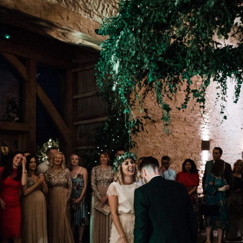Cripps Stone Barn as a venue suited the vibe we wanted for our wedding perfectly, whilst also meaning we could have the ceremony and reception all in one place. The industrial style of the Dutch barn really matched with the laid back atmosphere we wanted for the day. We kept it simple with steak and chips cooked on the biggest indoor BBQ in the UK, which was a hit with the guests. We had a lot of personal design touches made by Martina throughout the venue – it was an expression of our personality and creativity.