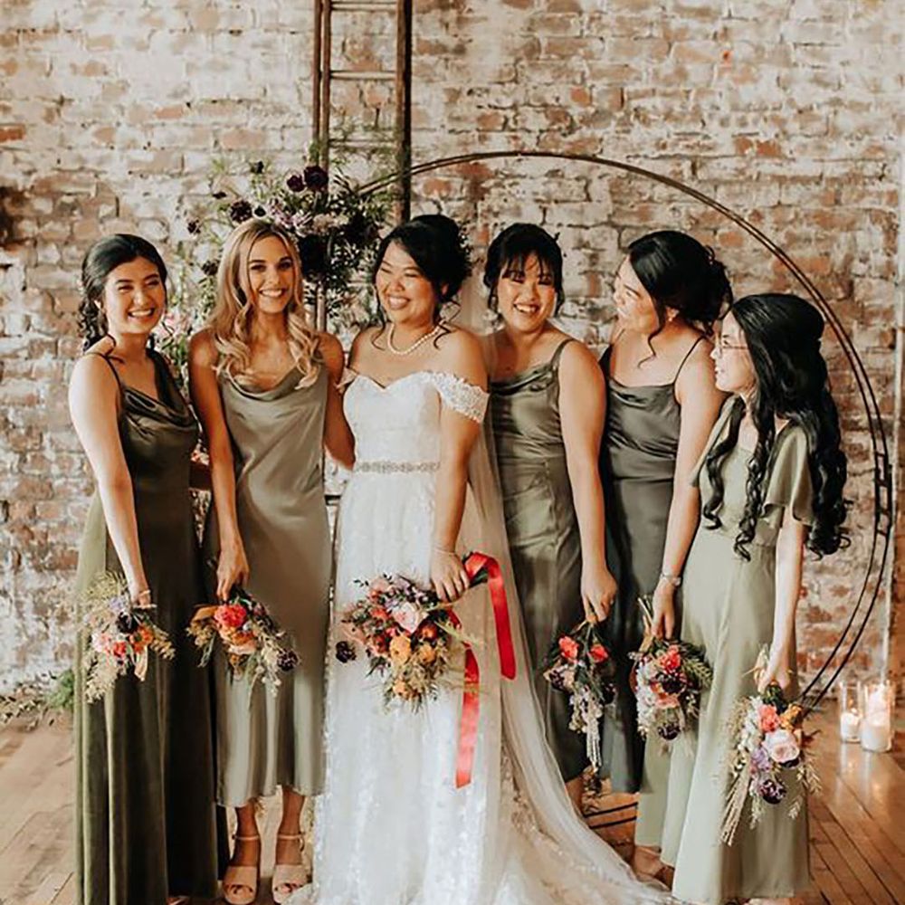 Blush & Sage Bridesmaid Dresses: