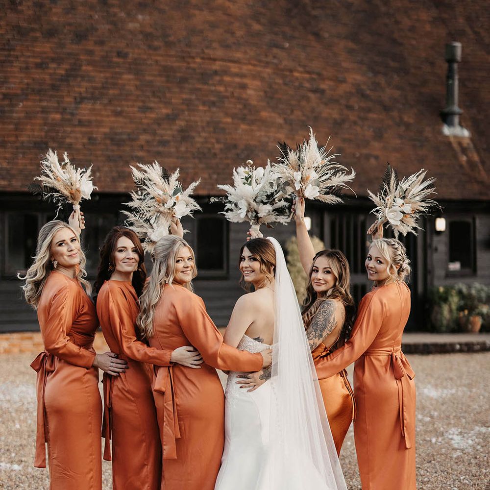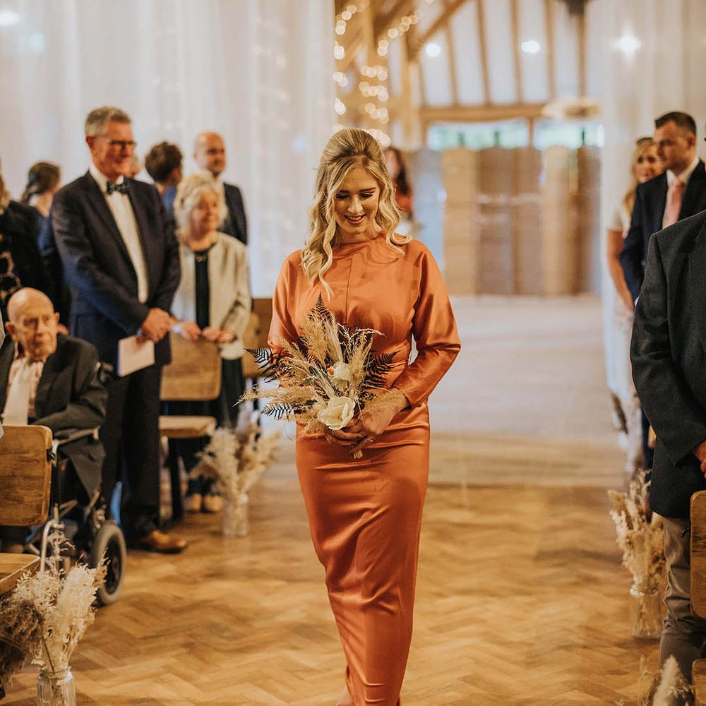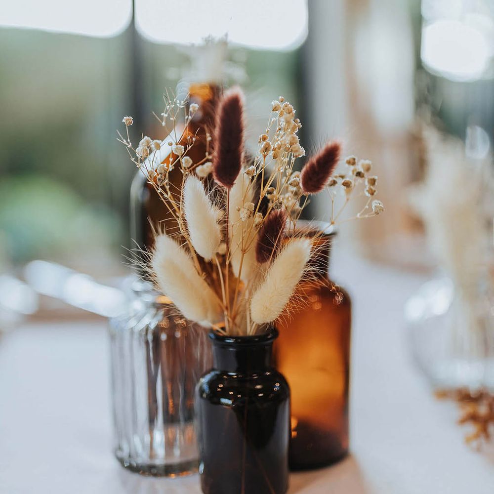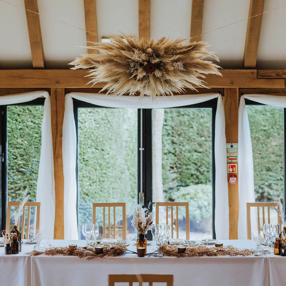 The vibe was easy and relaxed. The most important part was marrying each other, surrounded by our loved ones. We wanted the day to be memorable, of course, so we went with warm colours to warm up the colder November day! The dried flower displays meant friends were able to take the centrepieces home with them as a keepsake. We things simple and classic with a modern twist.