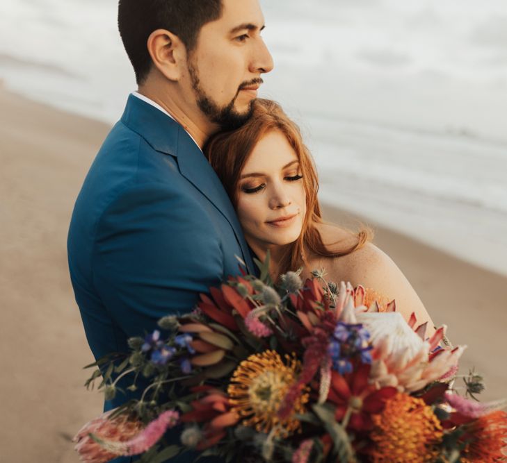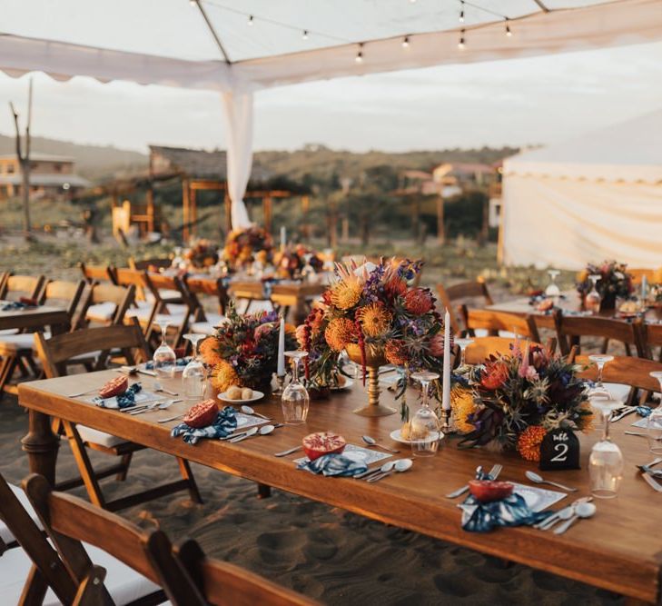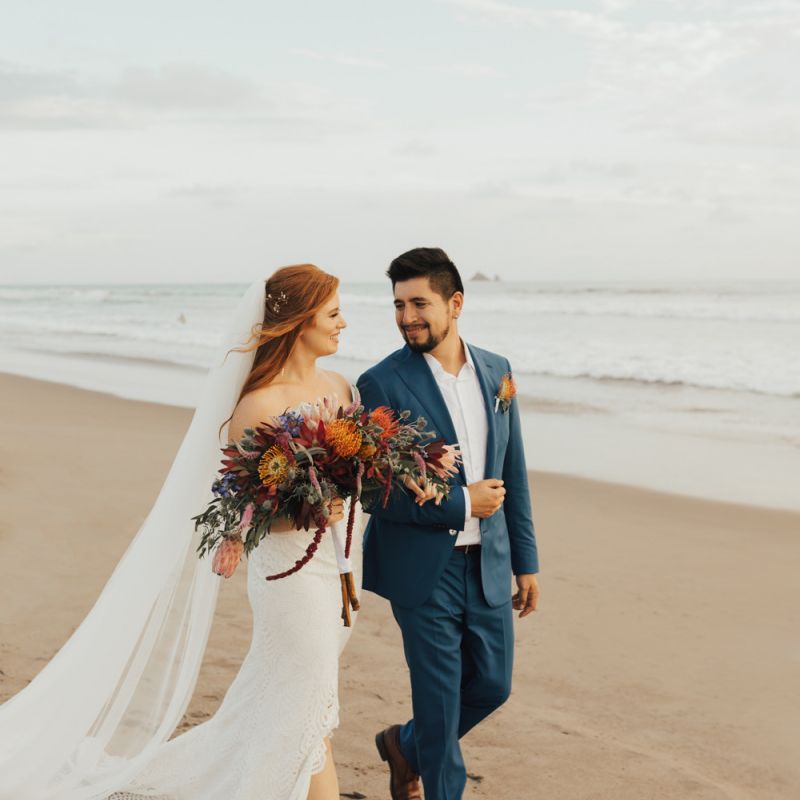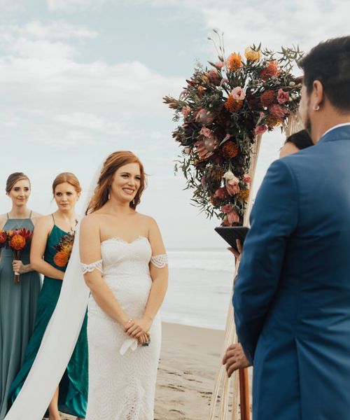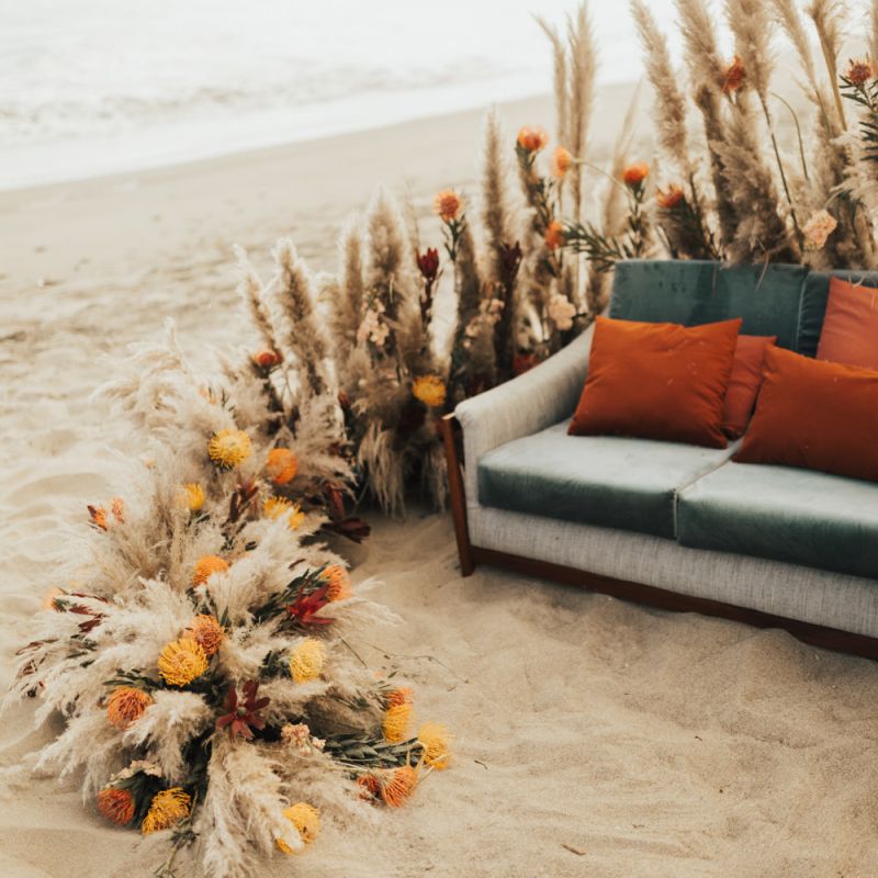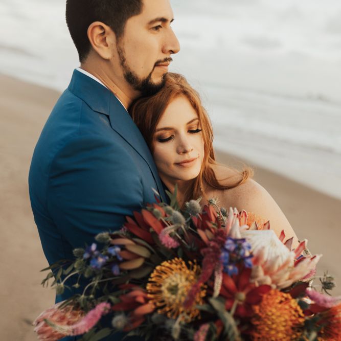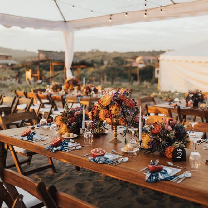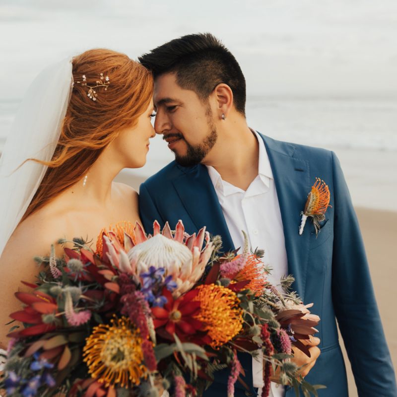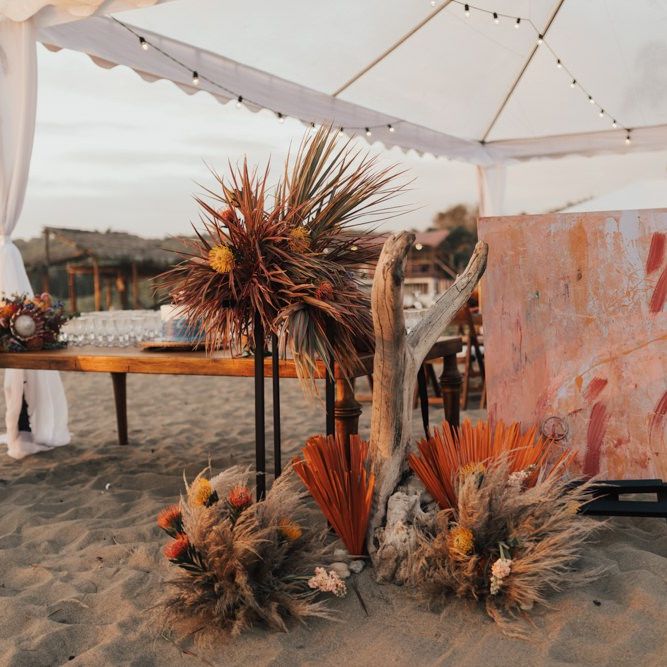 The vibe was romantic and artistic with a focus on colorful, unique floral arrangements and diy touches to complement the natural colors of the ocean and sunset. We also emphasized multicultural music and dancing which we are both passionate about.