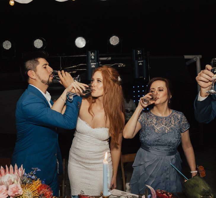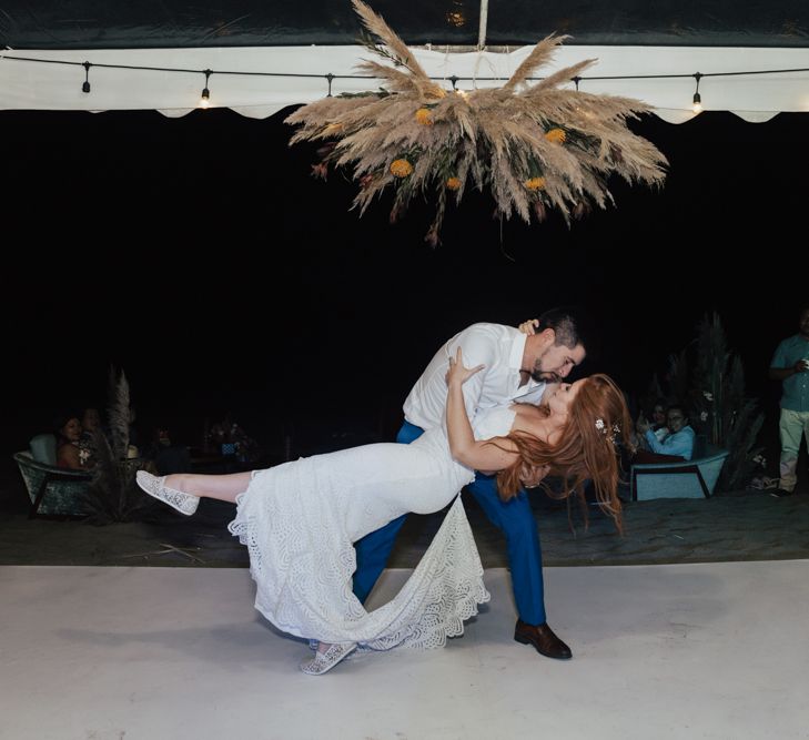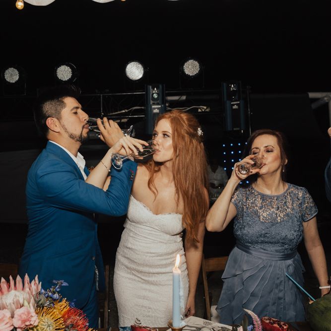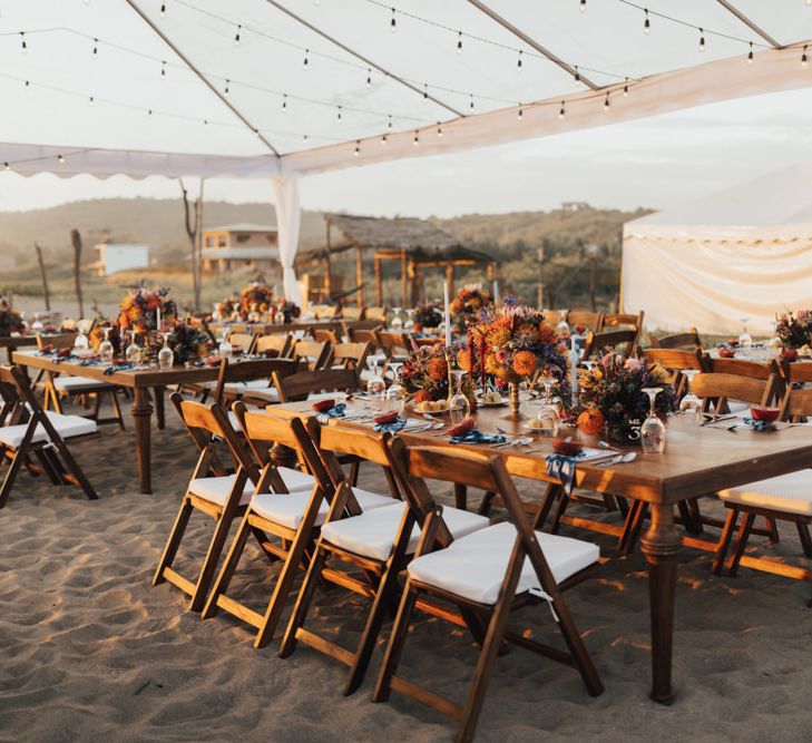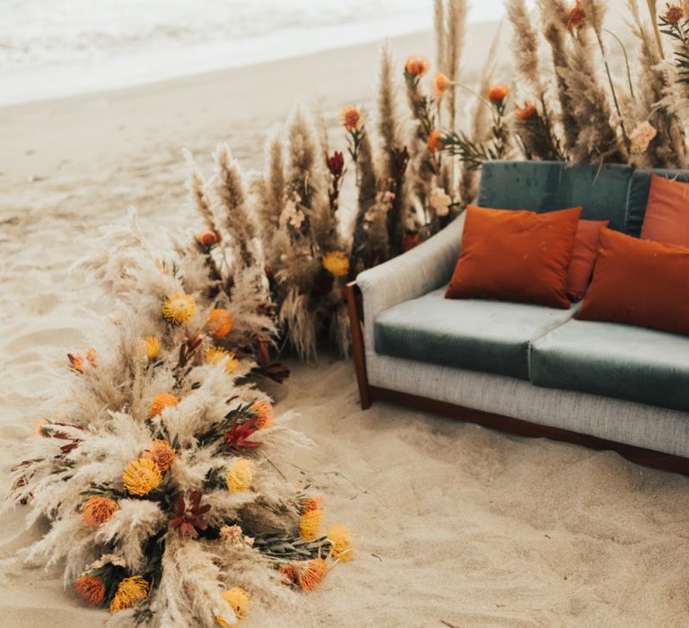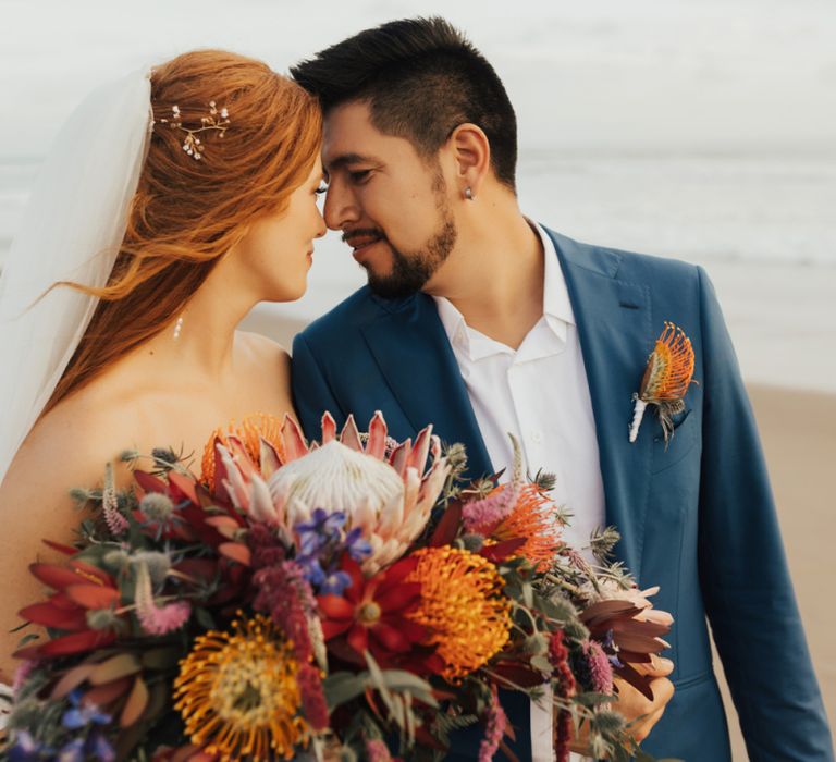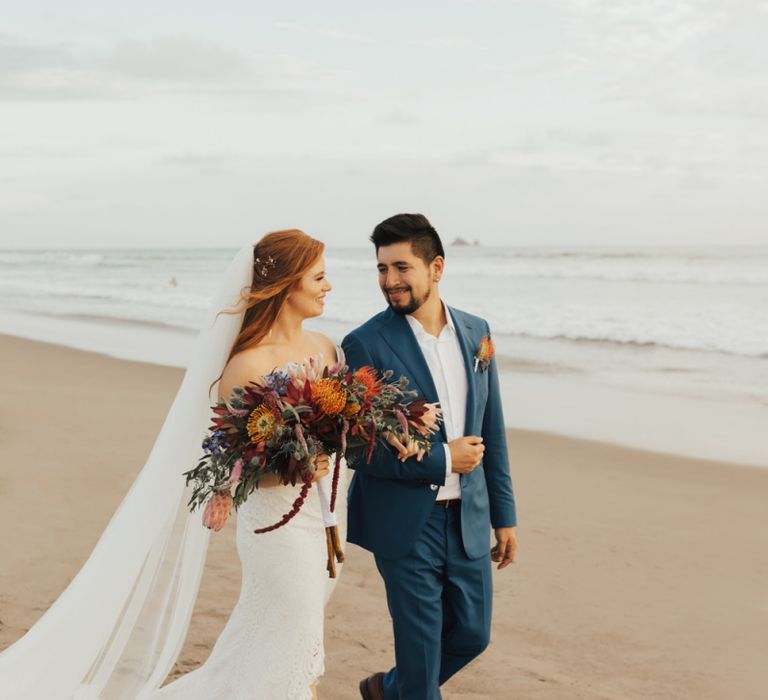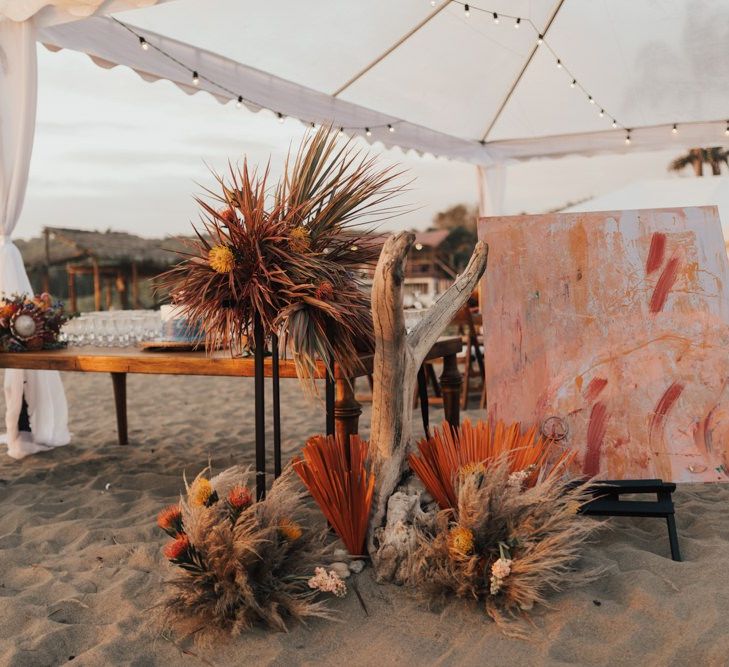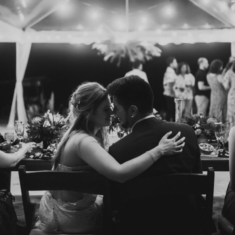 The vibe was romantic and artistic with a focus on colorful, unique floral arrangements and diy touches to complement the natural colors of the ocean and sunset. We also emphasized multicultural music and dancing which we are both passionate about.