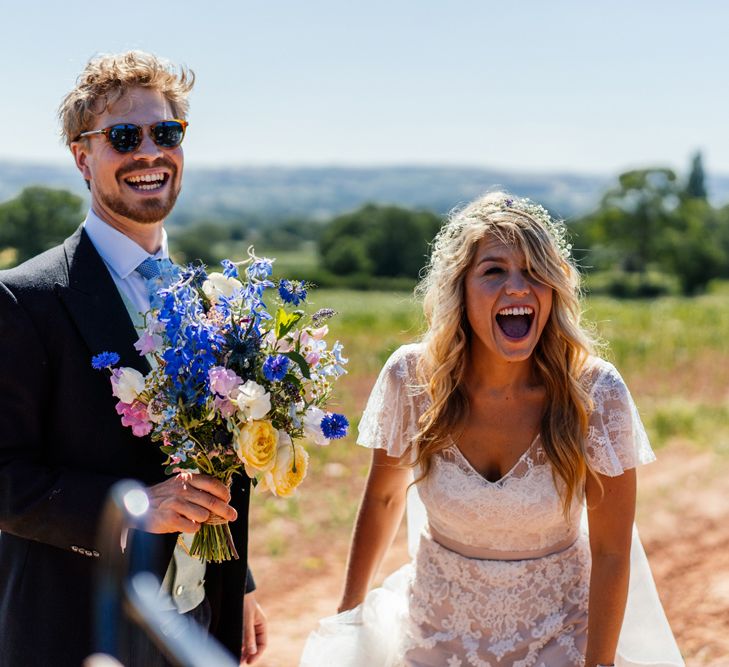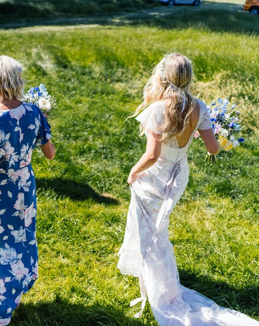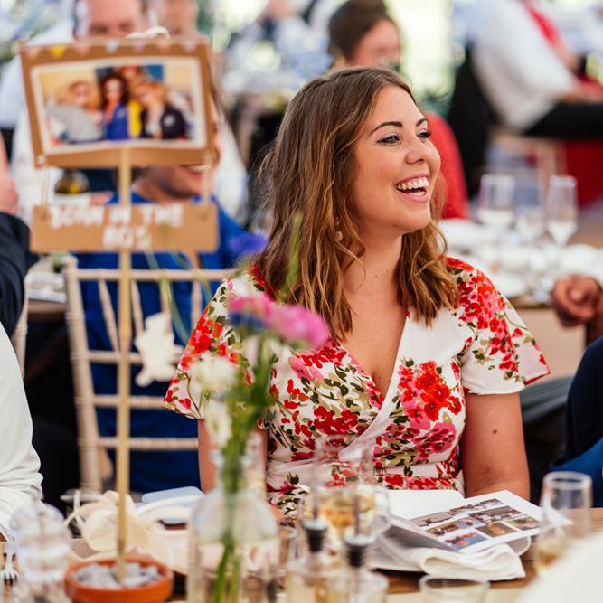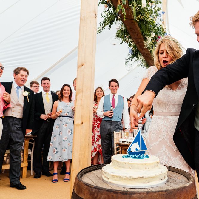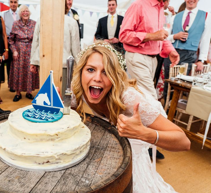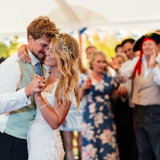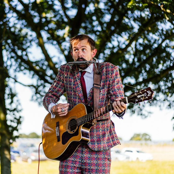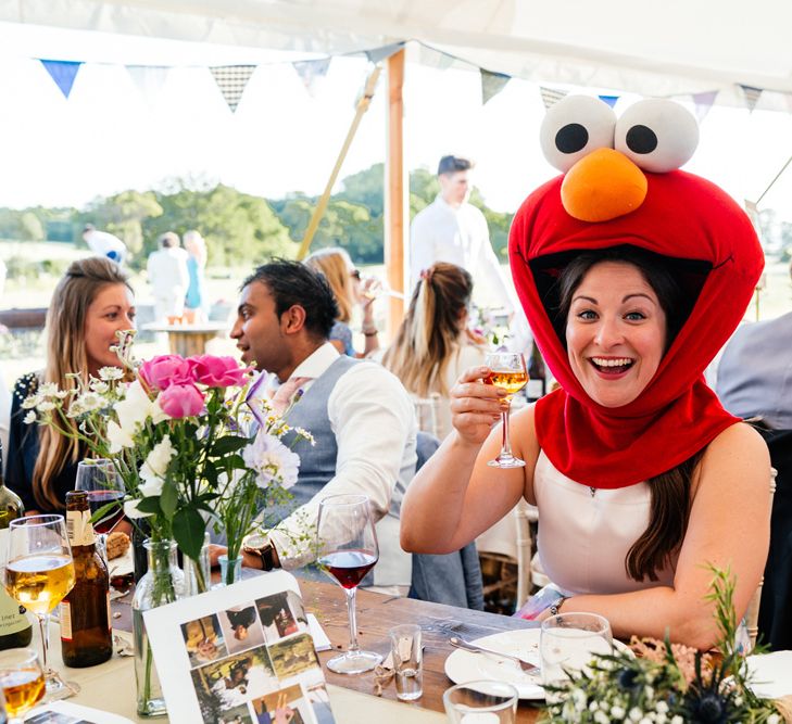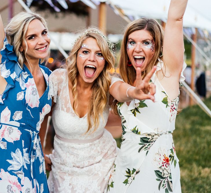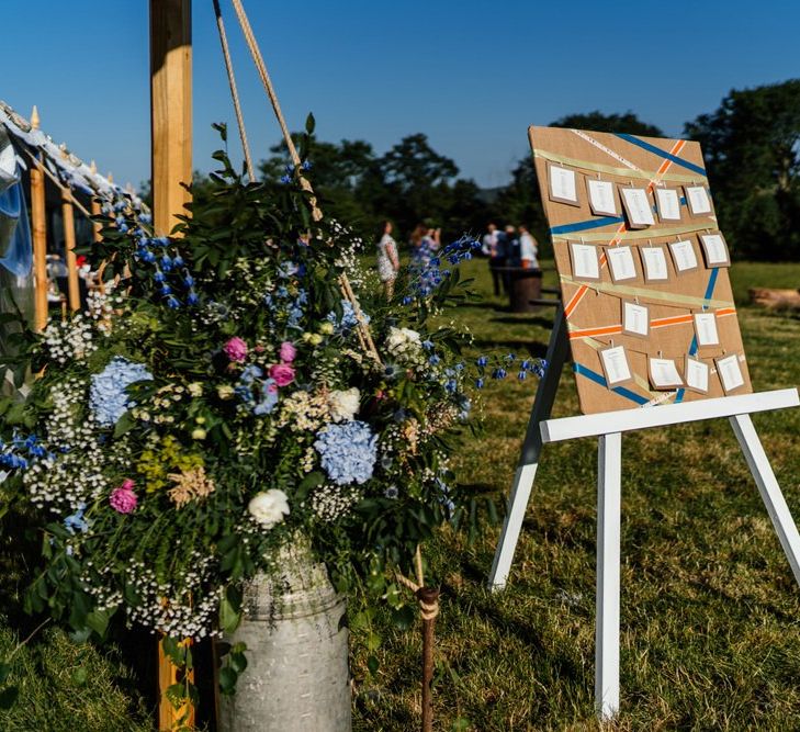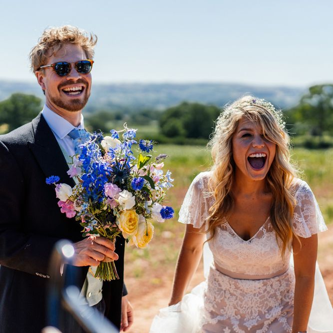 Our wedding planning started with a doodle of a little horse in a boat. Alex's family love sailing and the sea, and Lottie grew up at Berriewood, a riding stables in landlocked Shropshire! As well as being good procrastination this picture illustrated the coming together of our two worlds, and that turned into our little emblem! To continue the boat theme we would describe the vibe as “flotsam and jetsam” because we floated all of our ideas out there to consider… and then just decided to keep them all instead of having a specific theme. So it was a big old mix of horses, boats, fancy dress, wildflowers, delicious food, loads of booze, great music, glitter and a pair of shot skis for good measure!