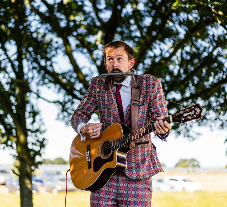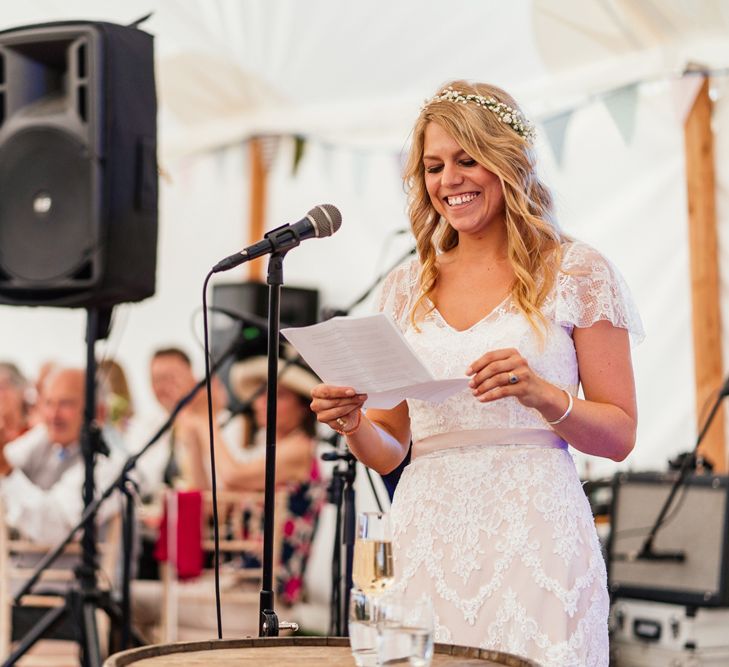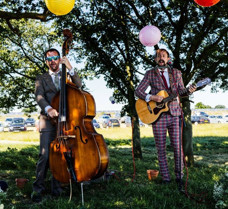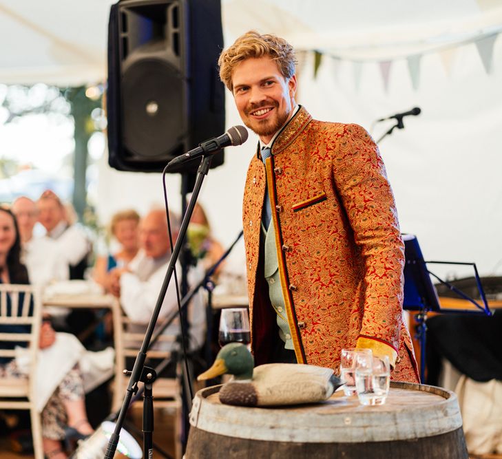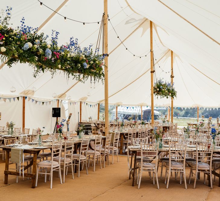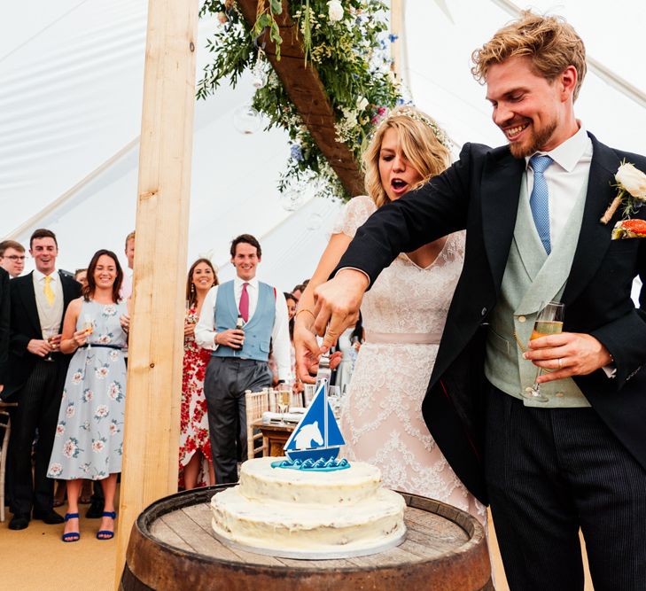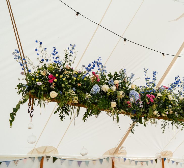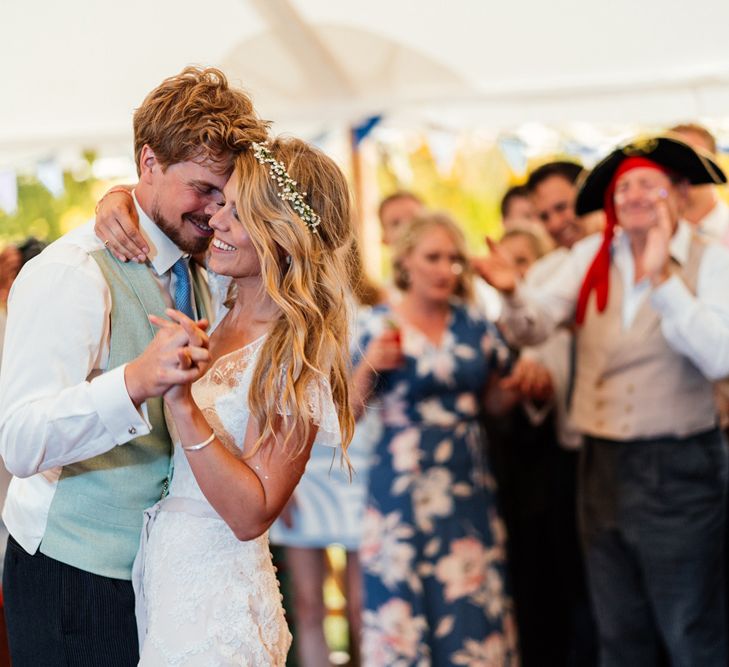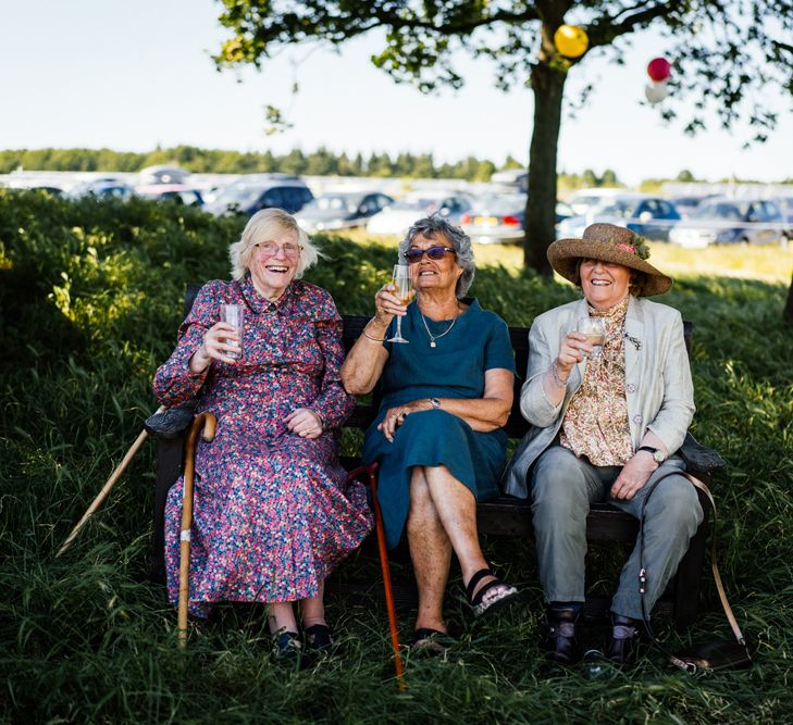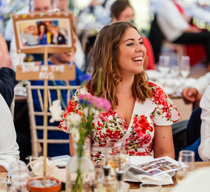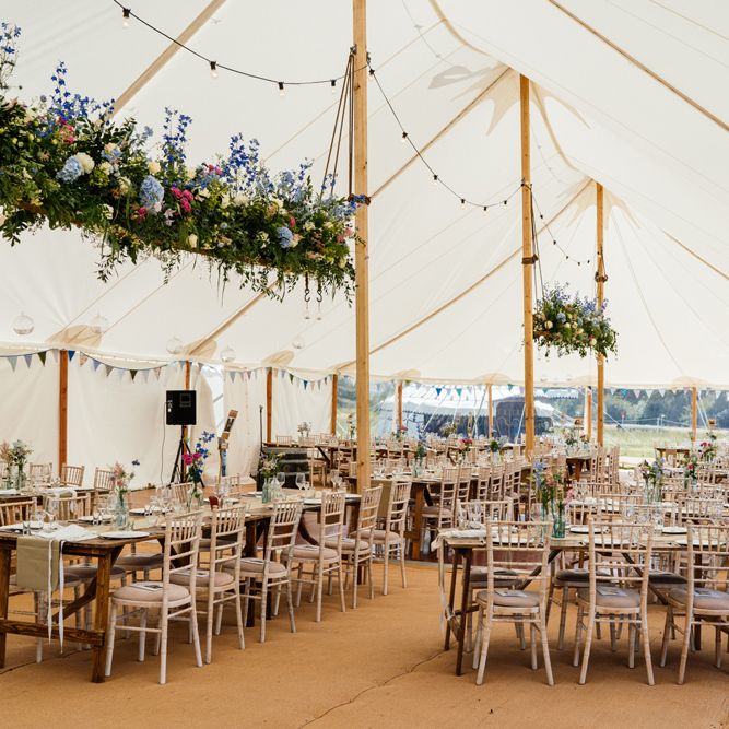 Our wedding planning started with a doodle of a little horse in a boat. Alex's family love sailing and the sea, and Lottie grew up at Berriewood, a riding stables in landlocked Shropshire! As well as being good procrastination this picture illustrated the coming together of our two worlds, and that turned into our little emblem! To continue the boat theme we would describe the vibe as “flotsam and jetsam” because we floated all of our ideas out there to consider… and then just decided to keep them all instead of having a specific theme. So it was a big old mix of horses, boats, fancy dress, wildflowers, delicious food, loads of booze, great music, glitter and a pair of shot skis for good measure!