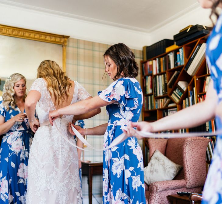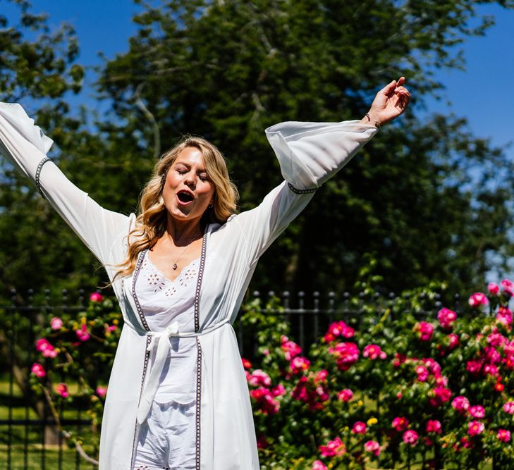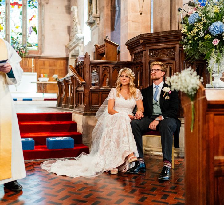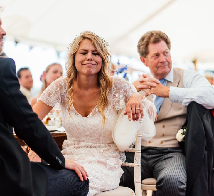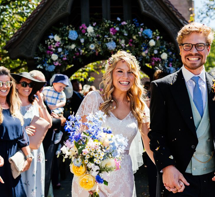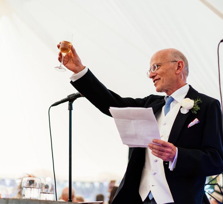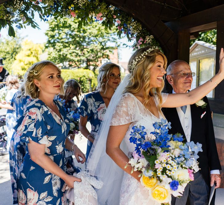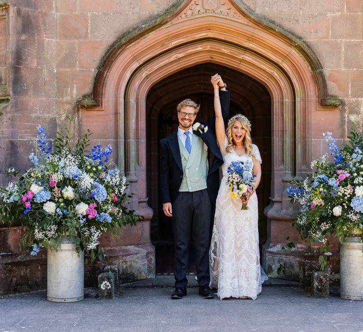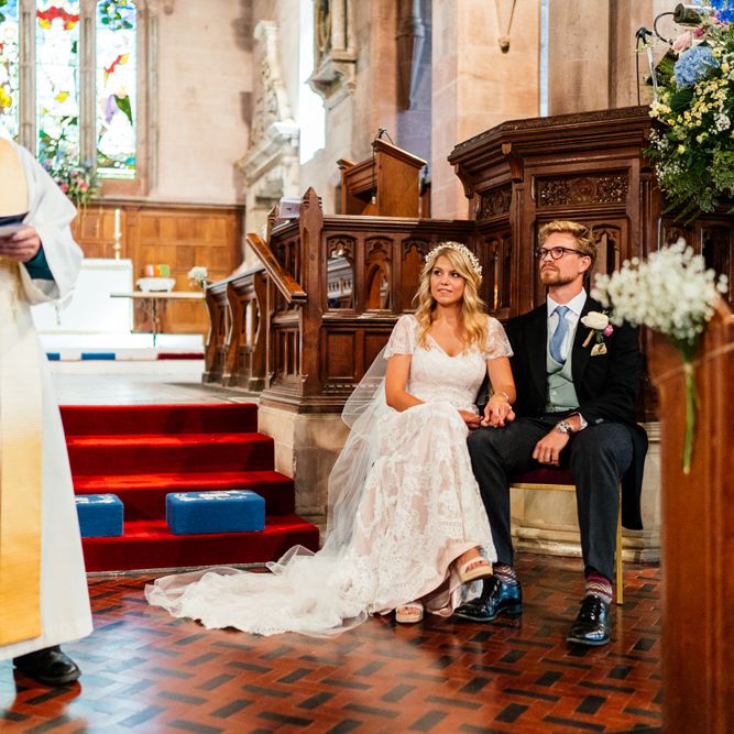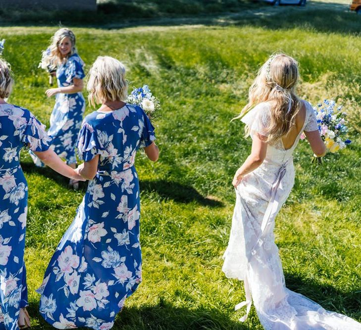 Our wedding planning started with a doodle of a little horse in a boat. Alex's family love sailing and the sea, and Lottie grew up at Berriewood, a riding stables in landlocked Shropshire! As well as being good procrastination this picture illustrated the coming together of our two worlds, and that turned into our little emblem! To continue the boat theme we would describe the vibe as “flotsam and jetsam” because we floated all of our ideas out there to consider… and then just decided to keep them all instead of having a specific theme. So it was a big old mix of horses, boats, fancy dress, wildflowers, delicious food, loads of booze, great music, glitter and a pair of shot skis for good measure!