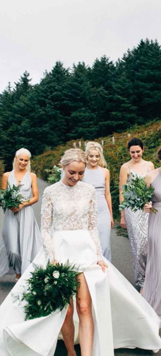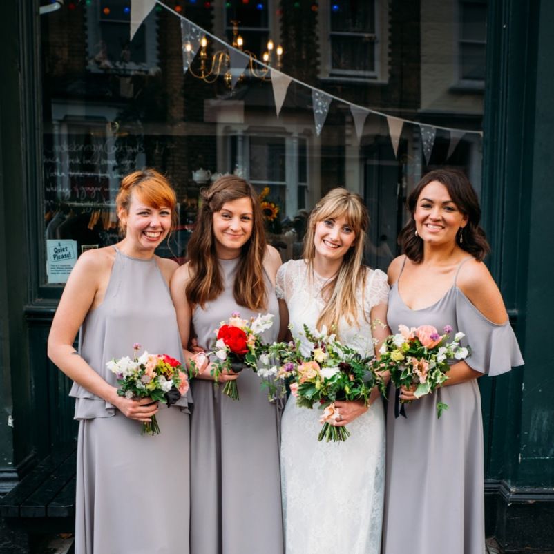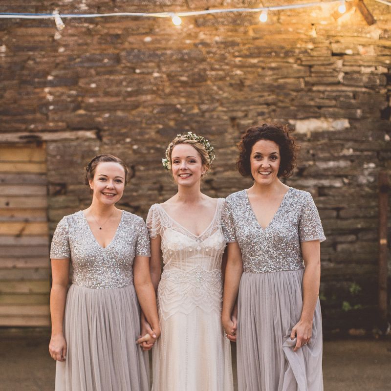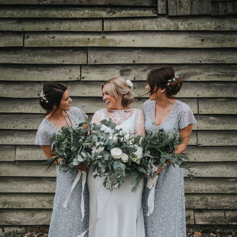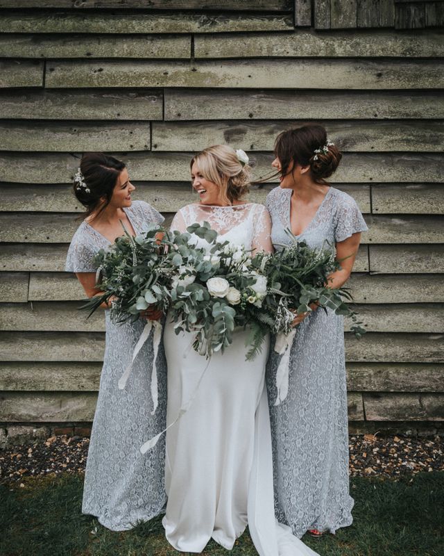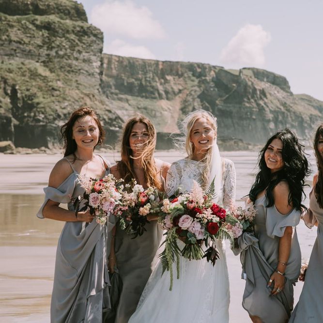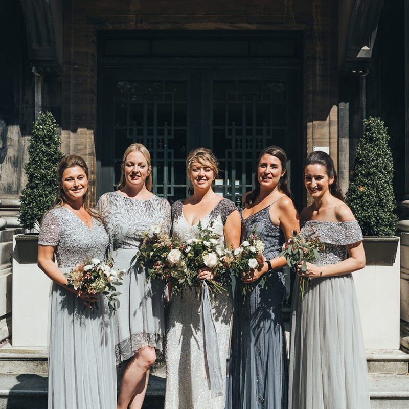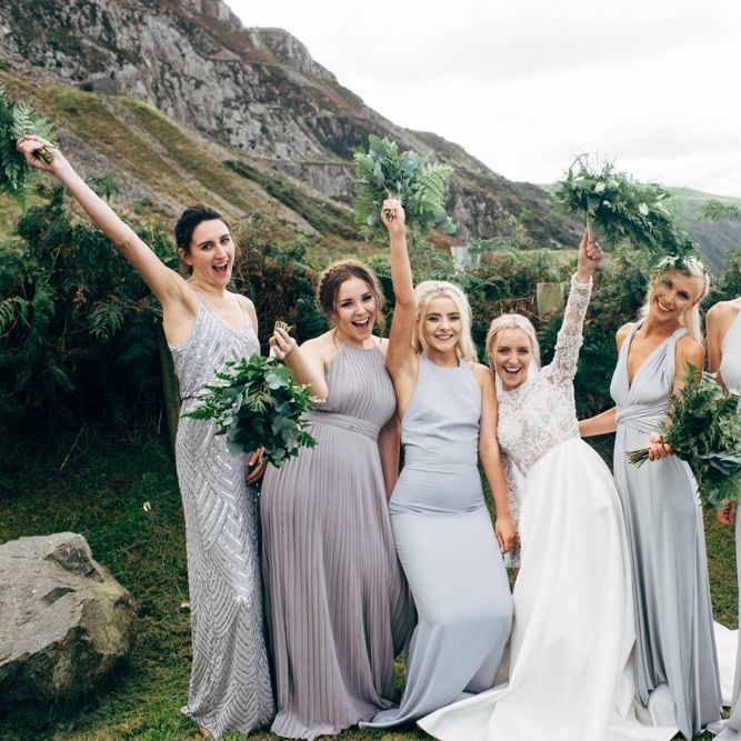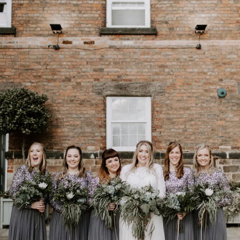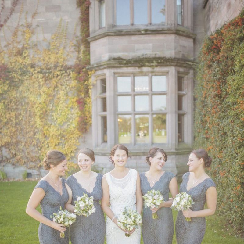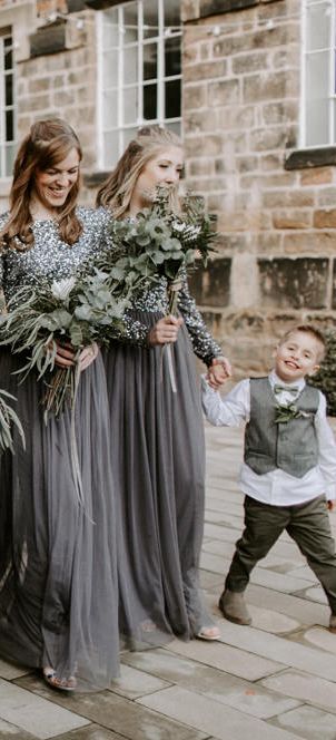 Bridesmaids In Charcoal Grey For A Foliage Filled Winter Wedding